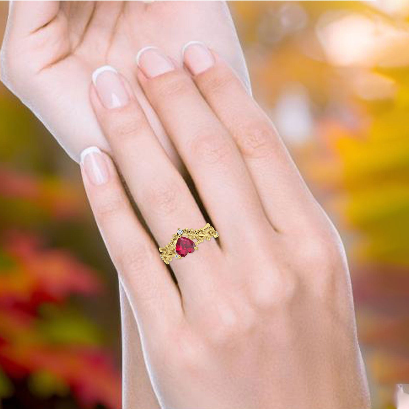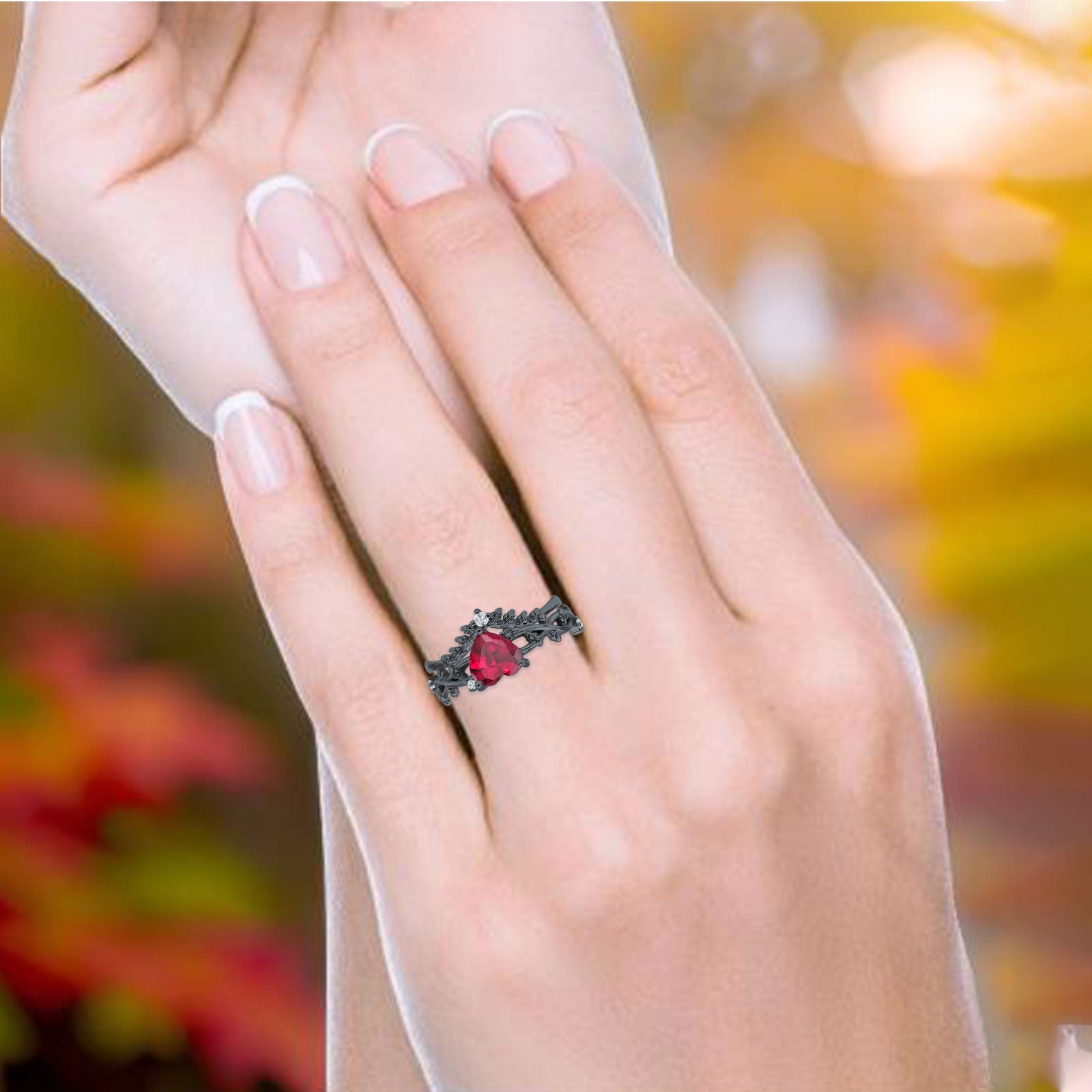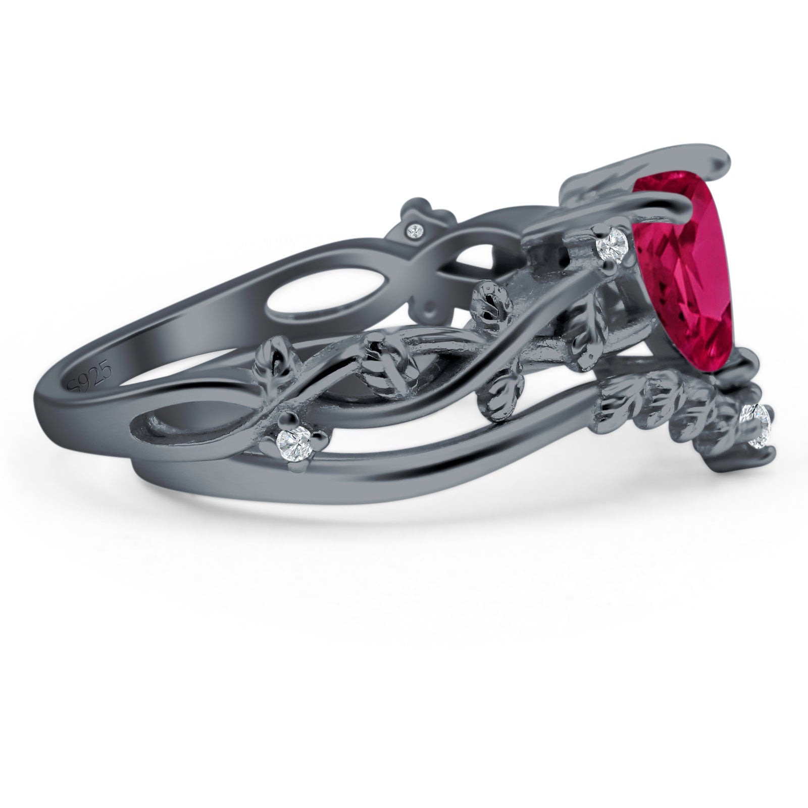Two Piece Heart Ruby CZ Leaf Style Chevron Rings 925 Sterling Silver