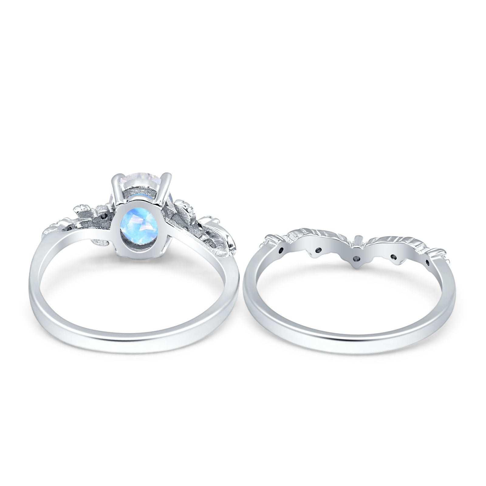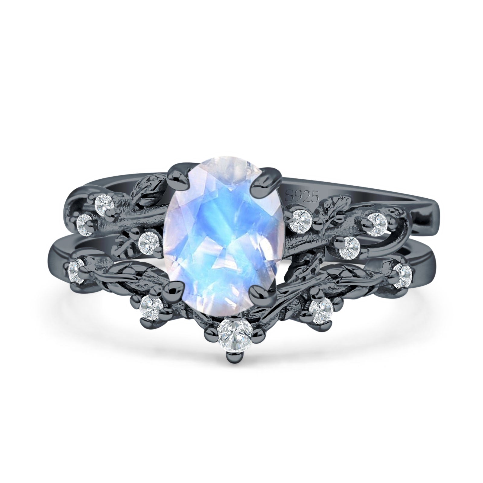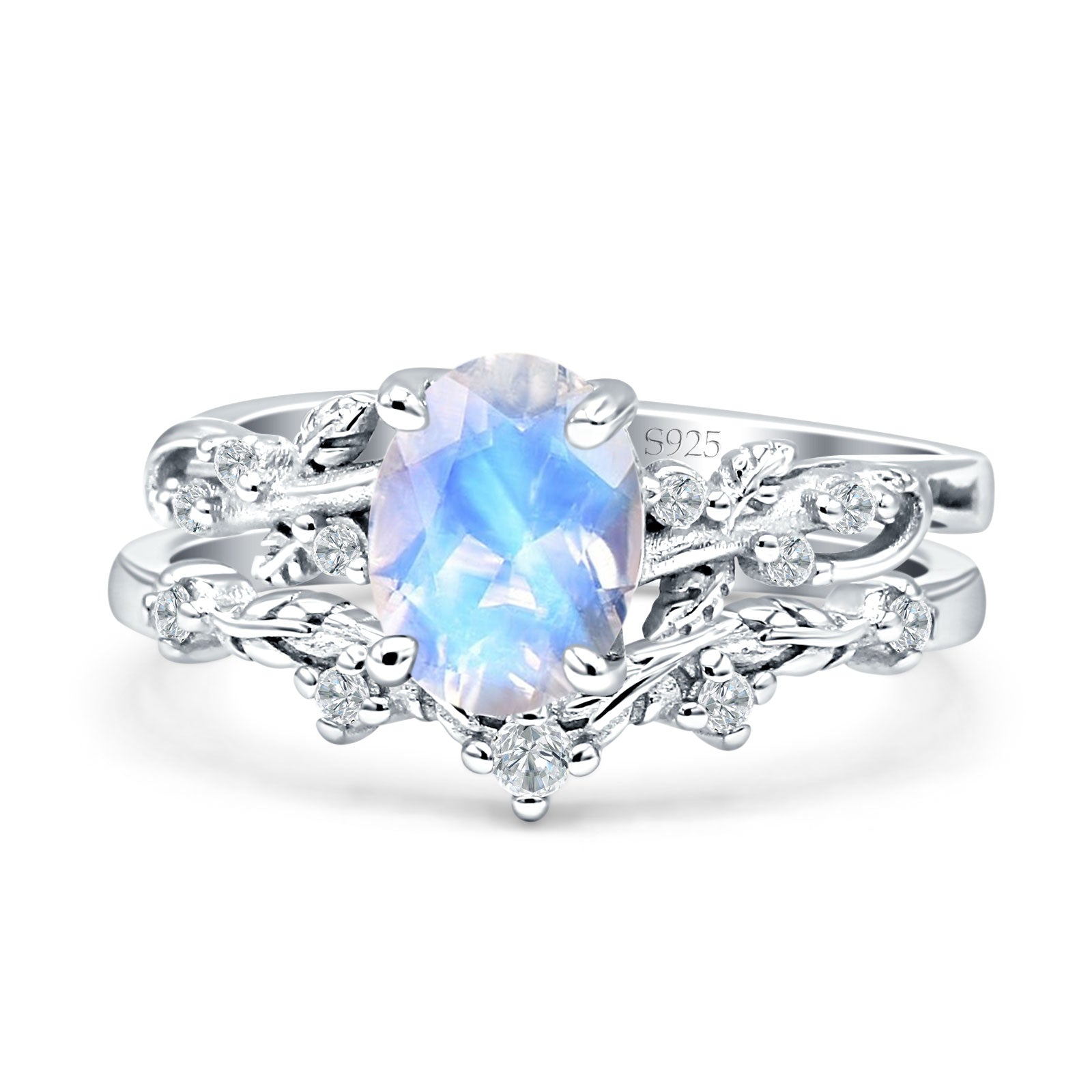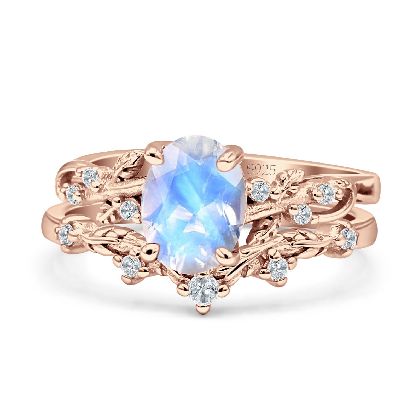 Two Piece Oval Natural Moonstone Leaf Style Chevron Rings 925 Sterling Silver