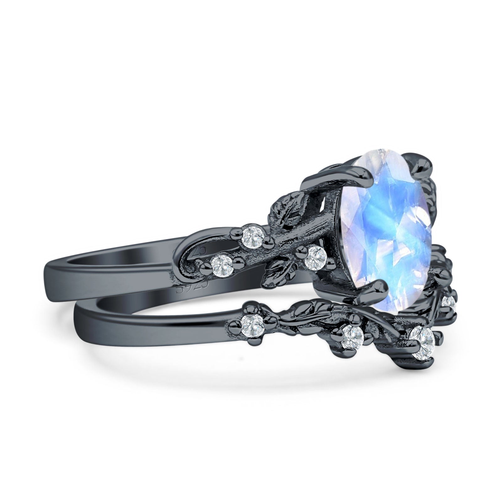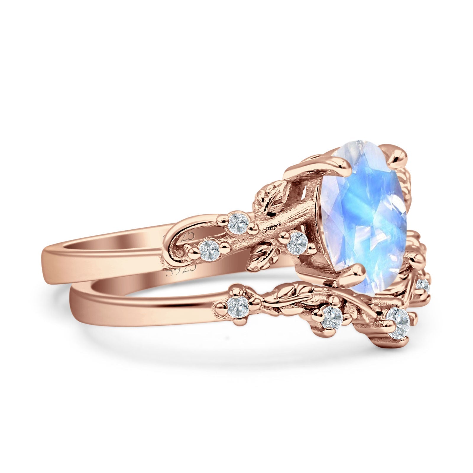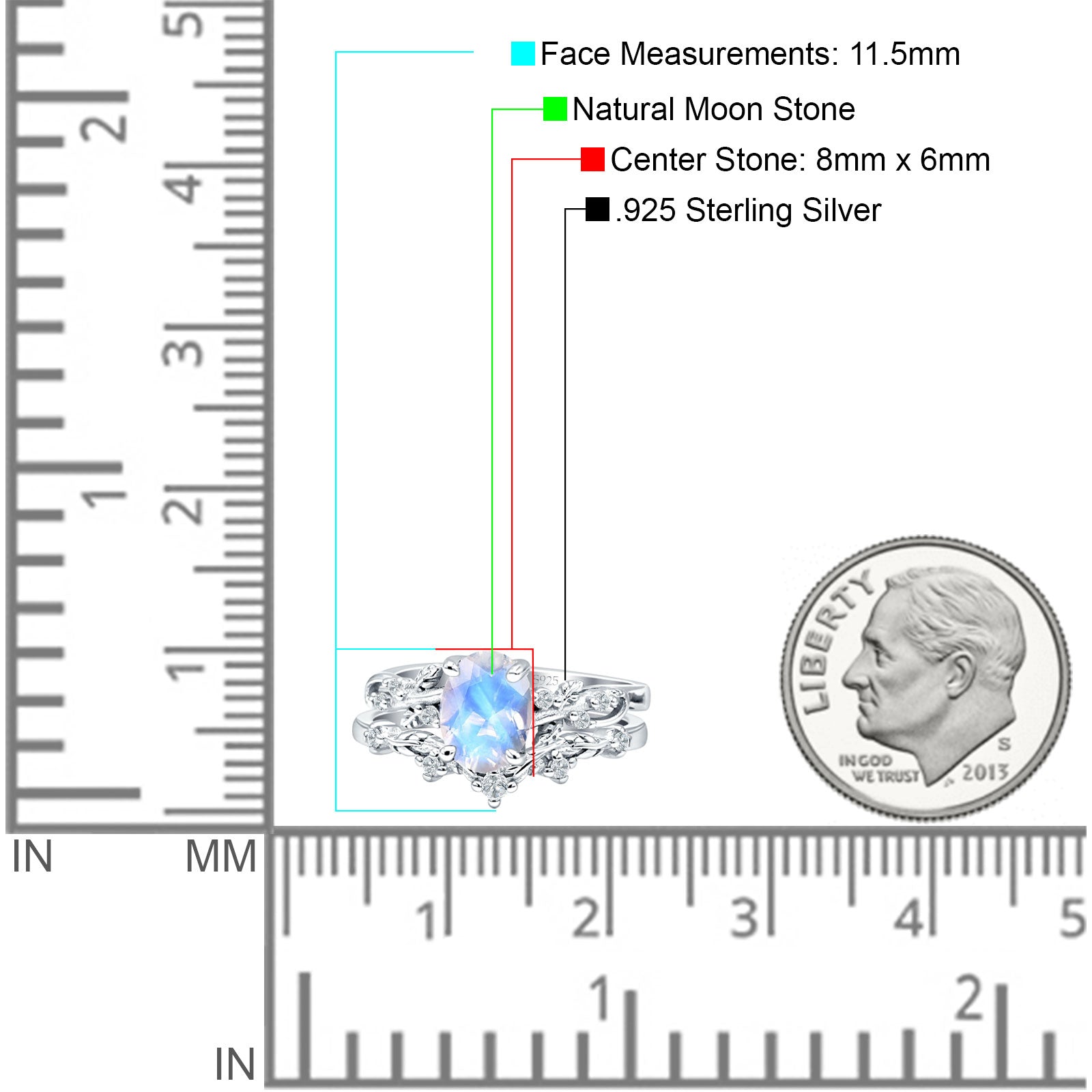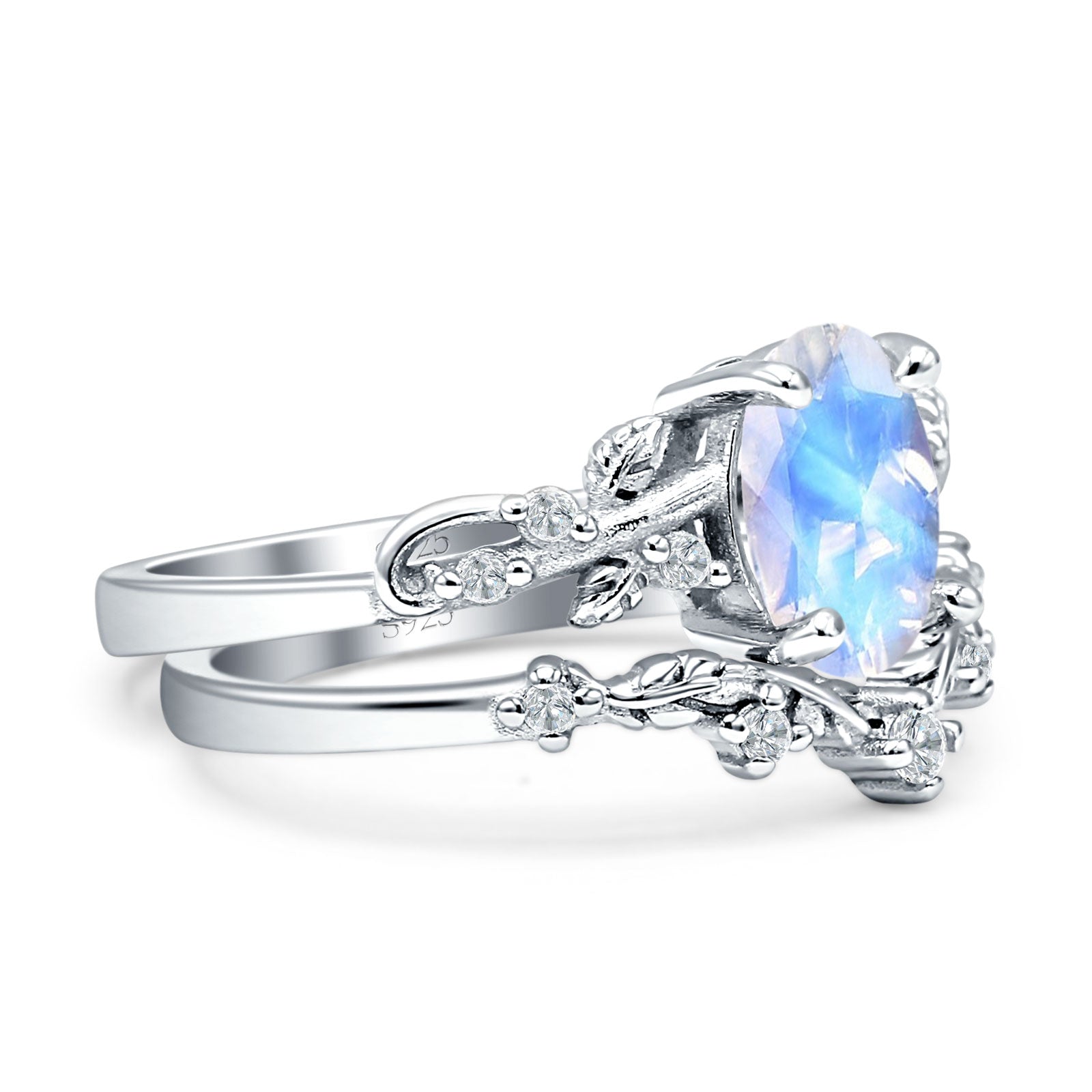 Two Piece Oval Natural Moonstone Leaf Style Chevron Rings 925 Sterling Silver