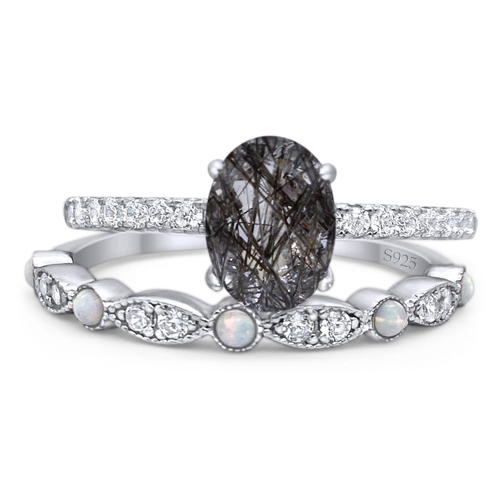 -Oval Natural Rutilated Quartz Gemstone.