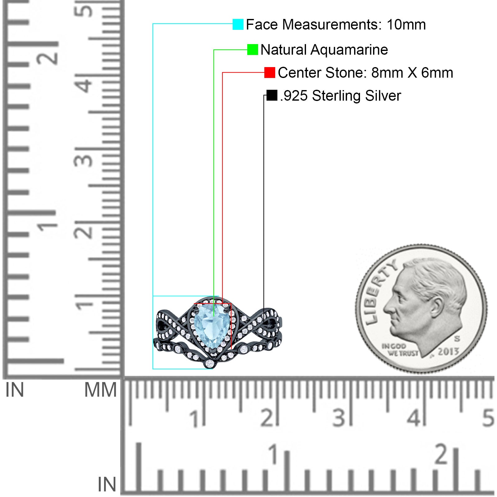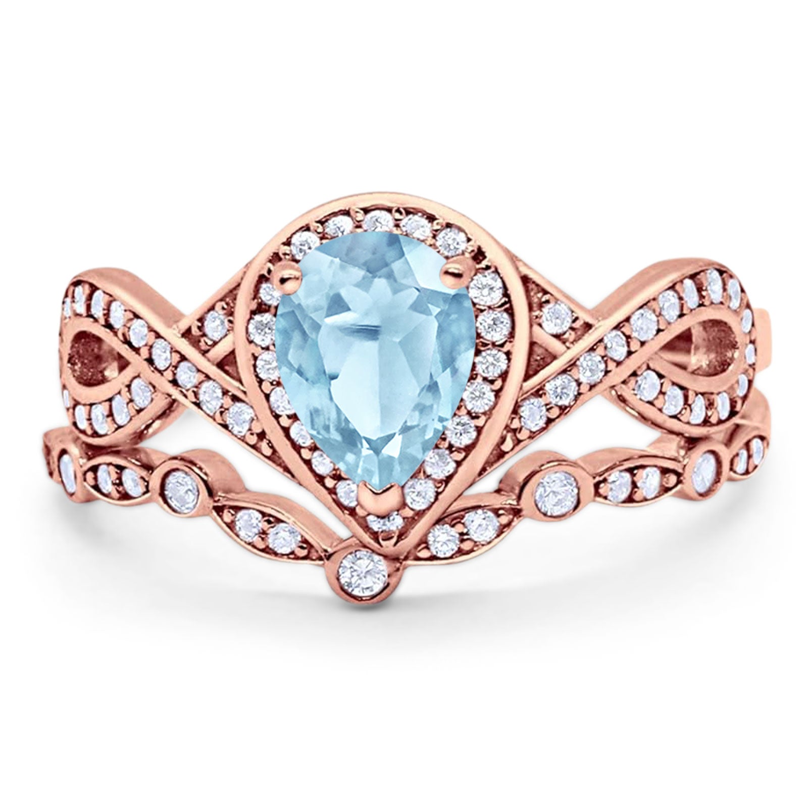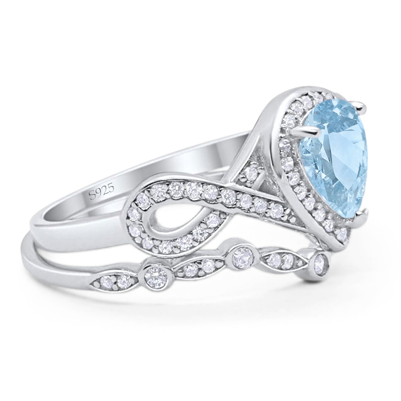 Two Piece Pear Teardrop Natural Aquamarine Infinity Twisted Bridal Ring 925 Sterling Silver