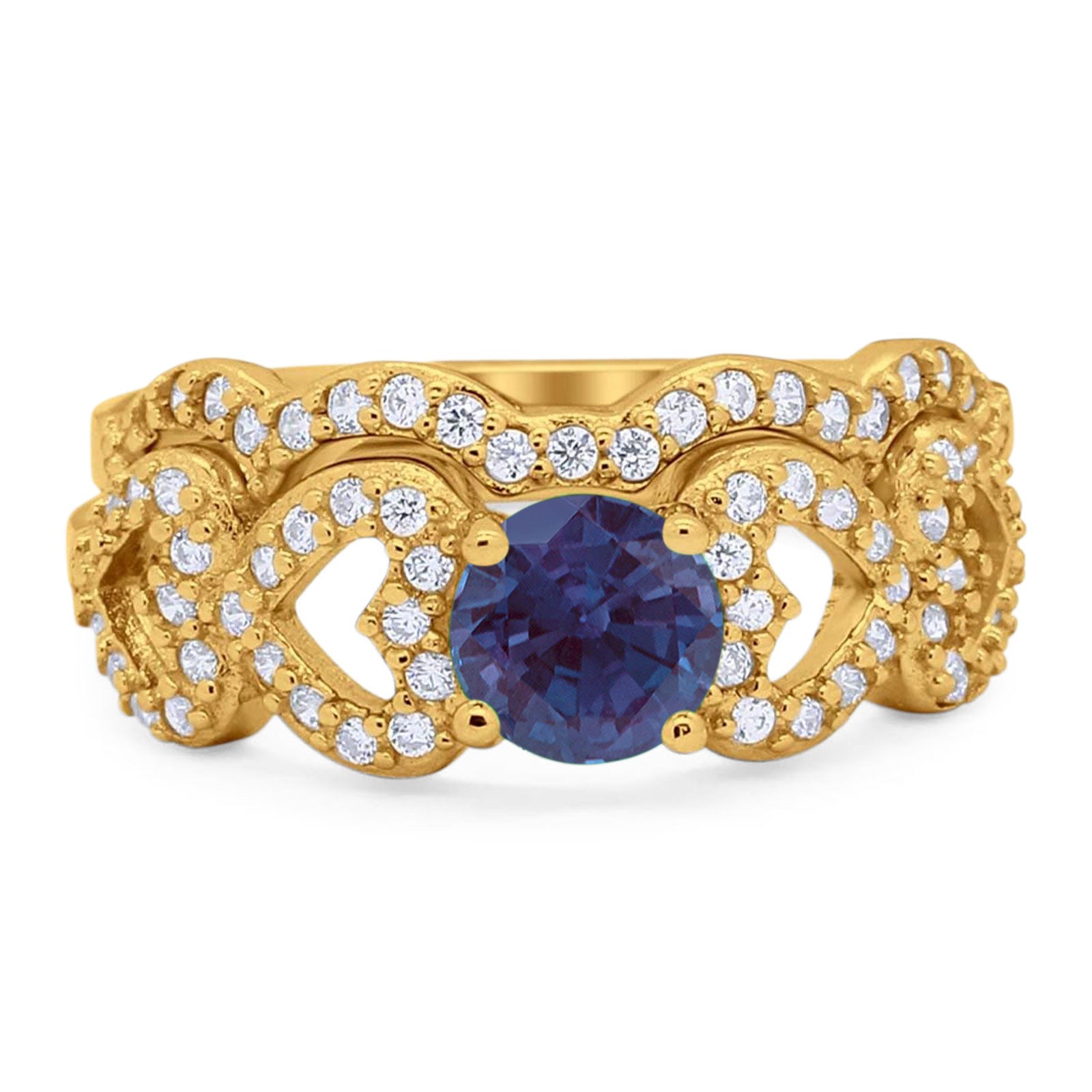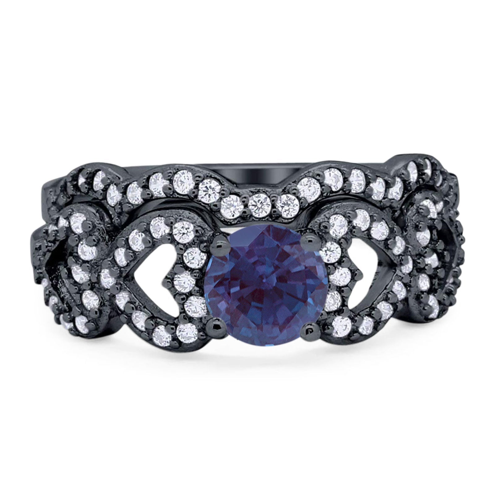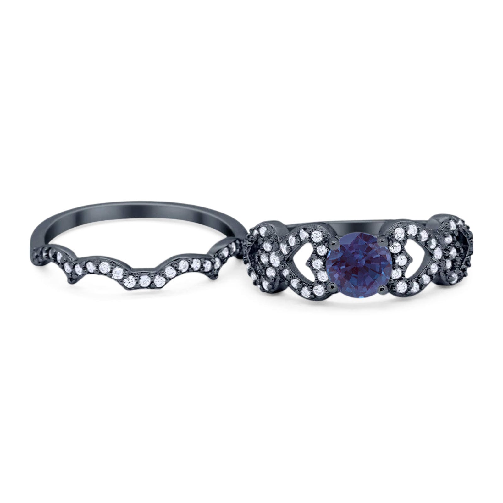 Two Piece Round Lab Alexandrite Art Deco Ring 925 Sterling Silver