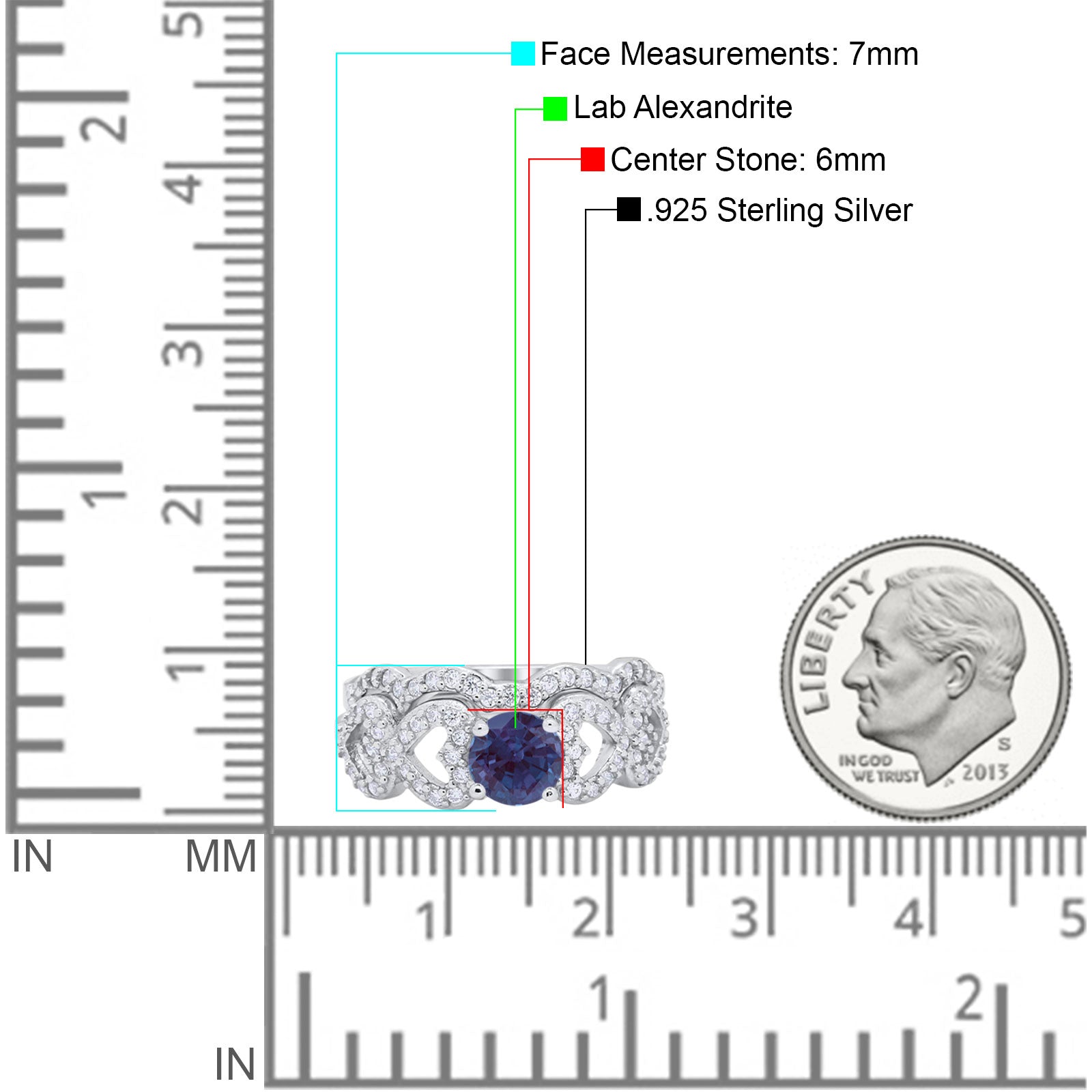 Side Stone: Cubic Zirconia (CZ).