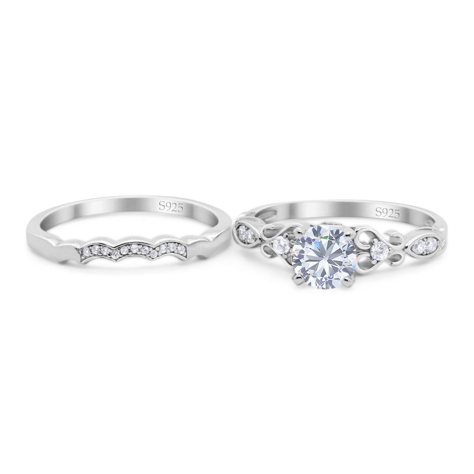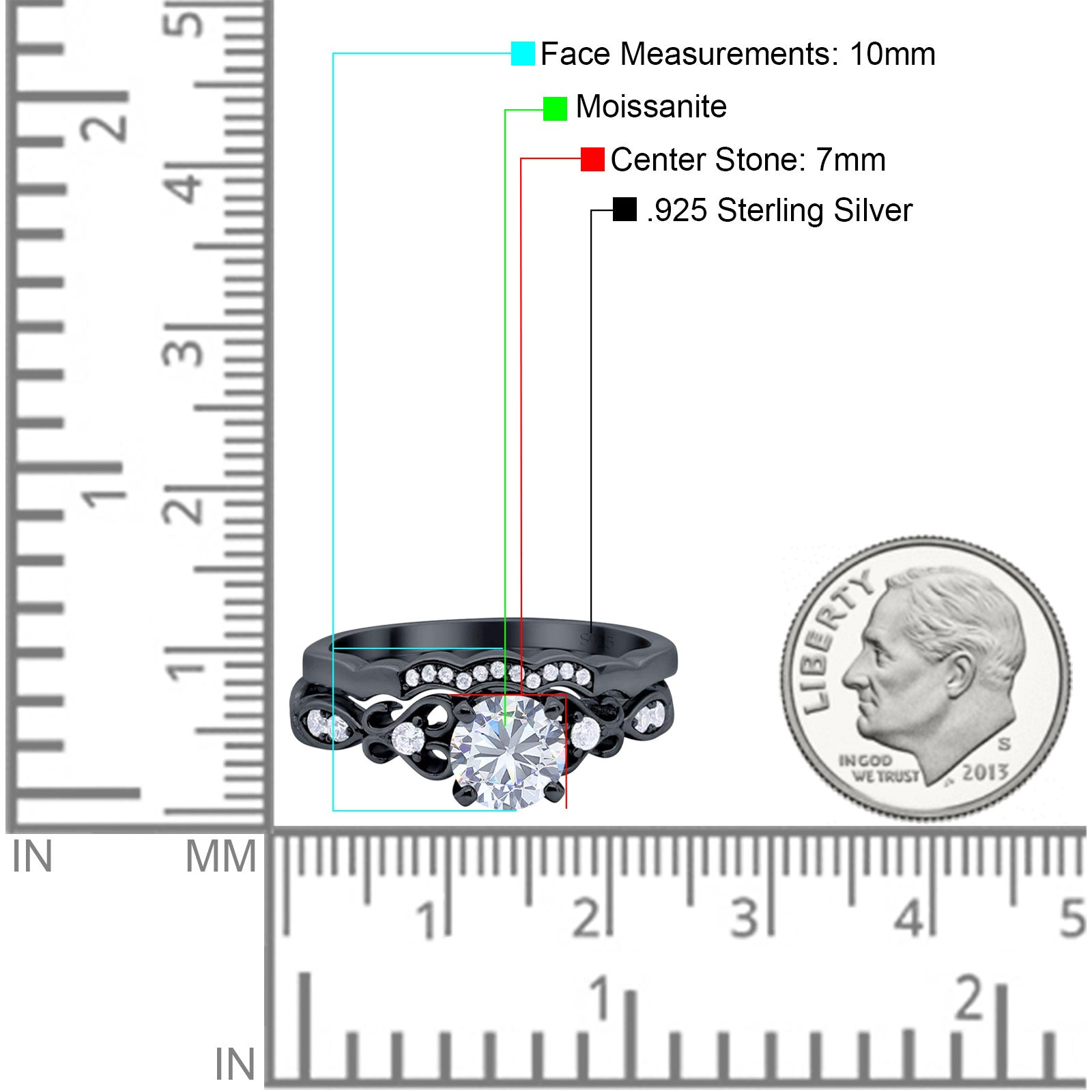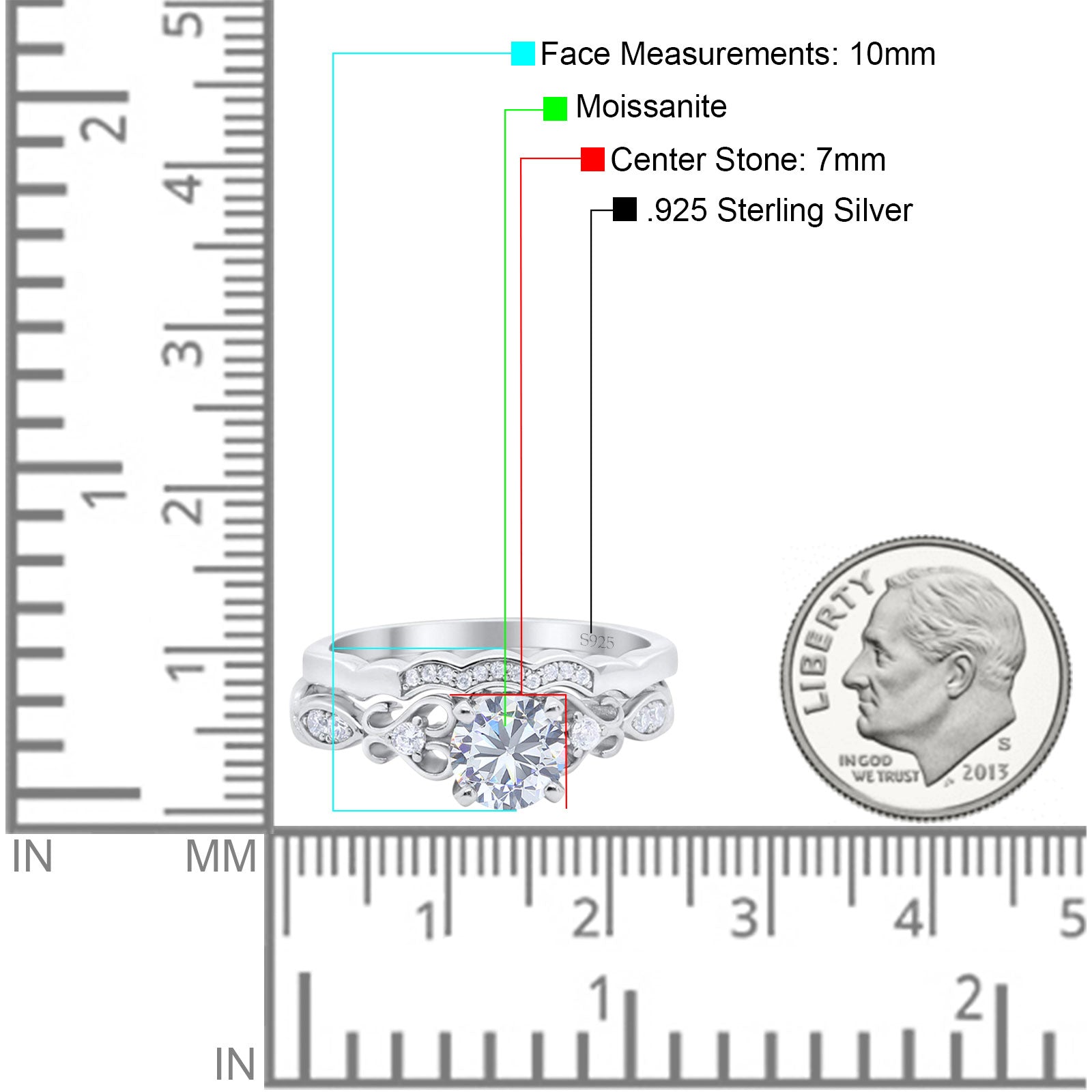 Two Piece Round Moissanite Art Deco Ring 925 Sterling Silver