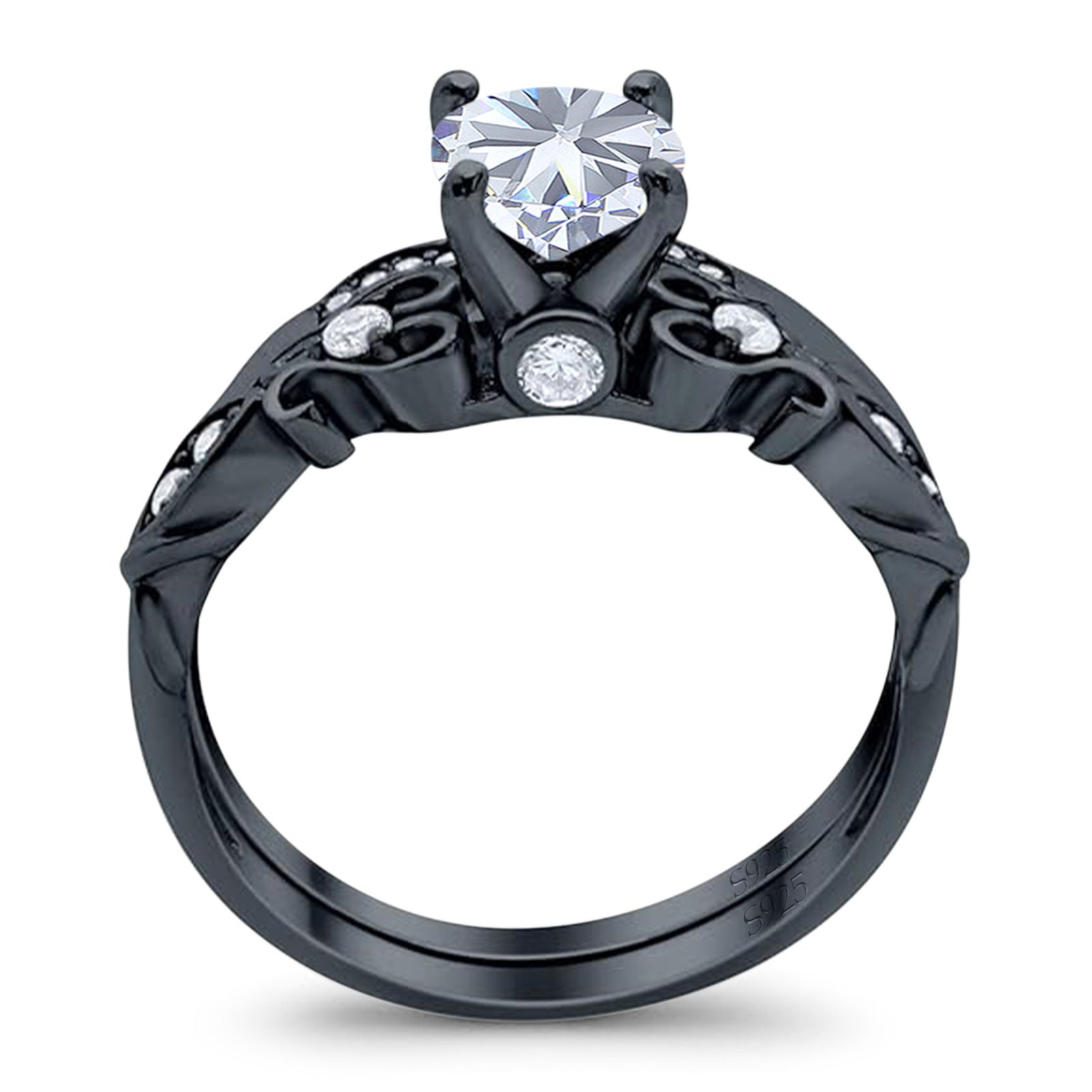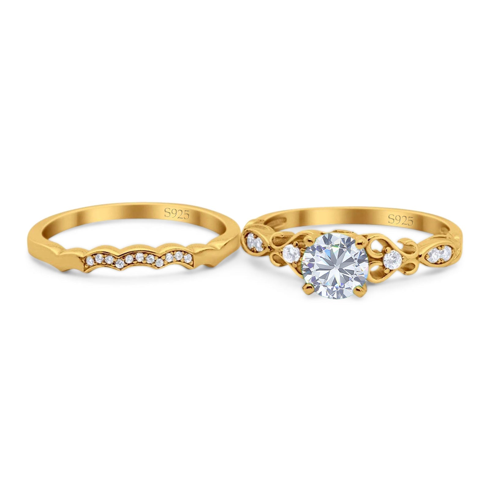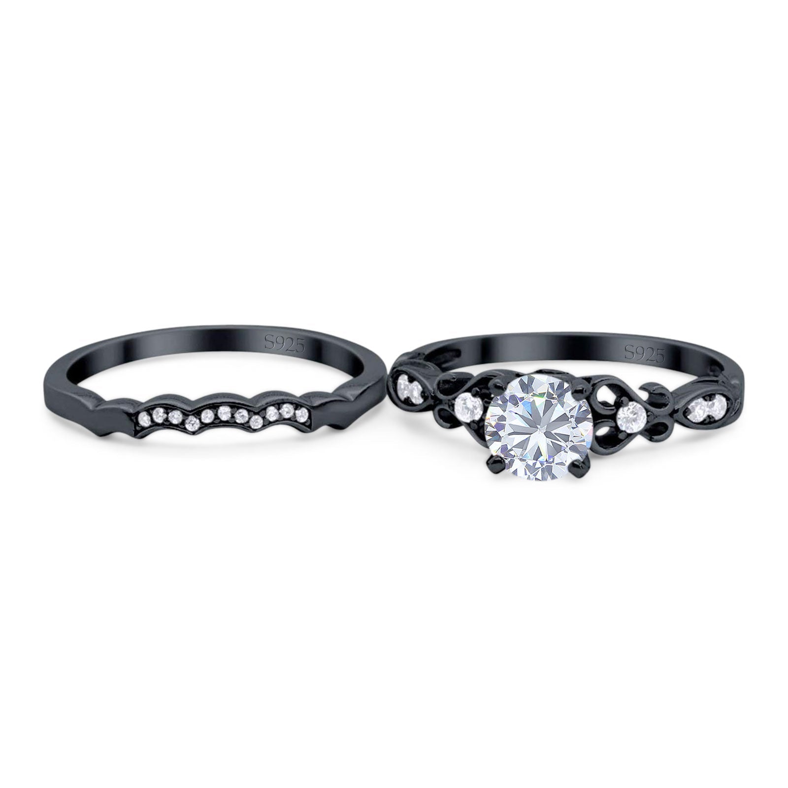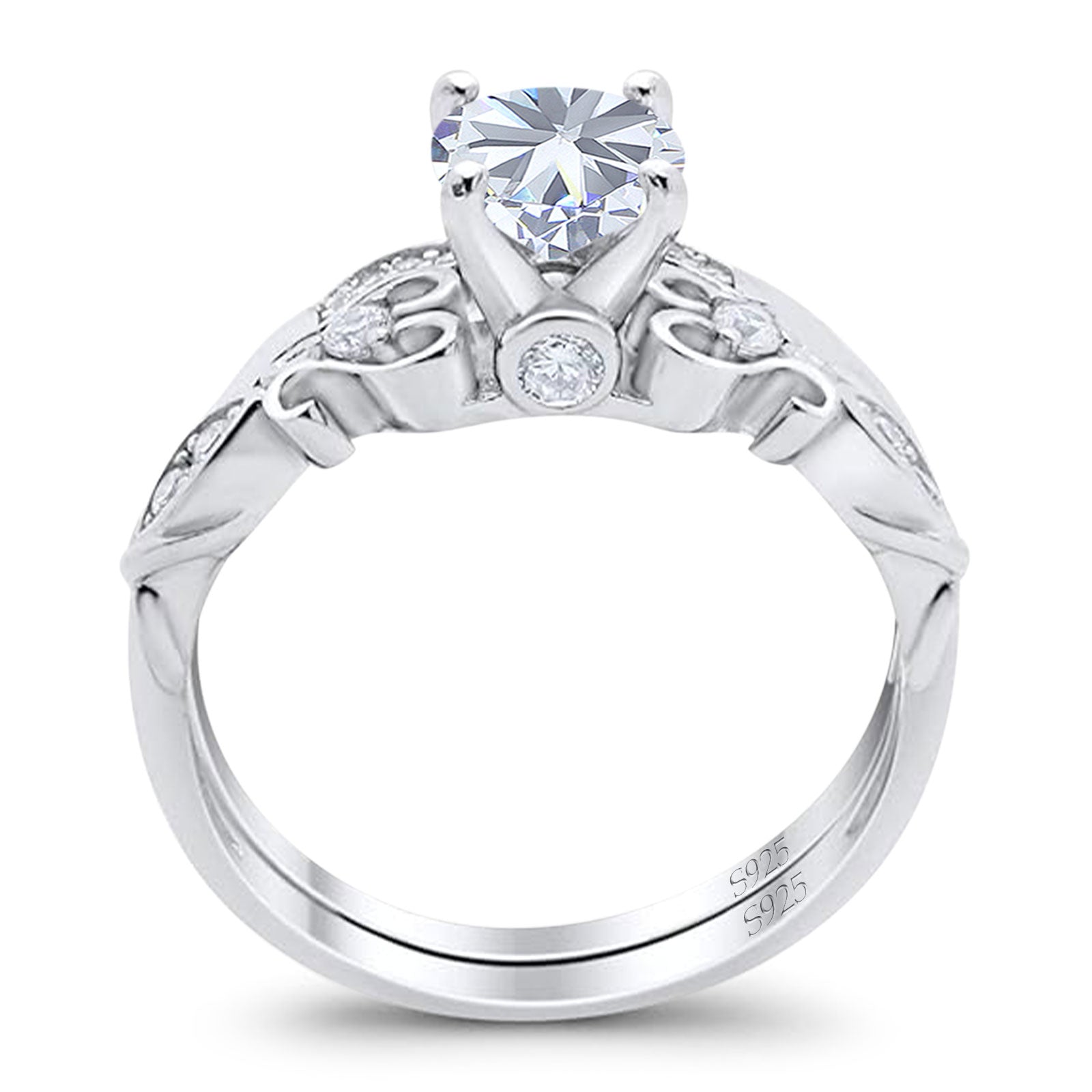 Two Piece Round Moissanite Art Deco Ring 925 Sterling Silver