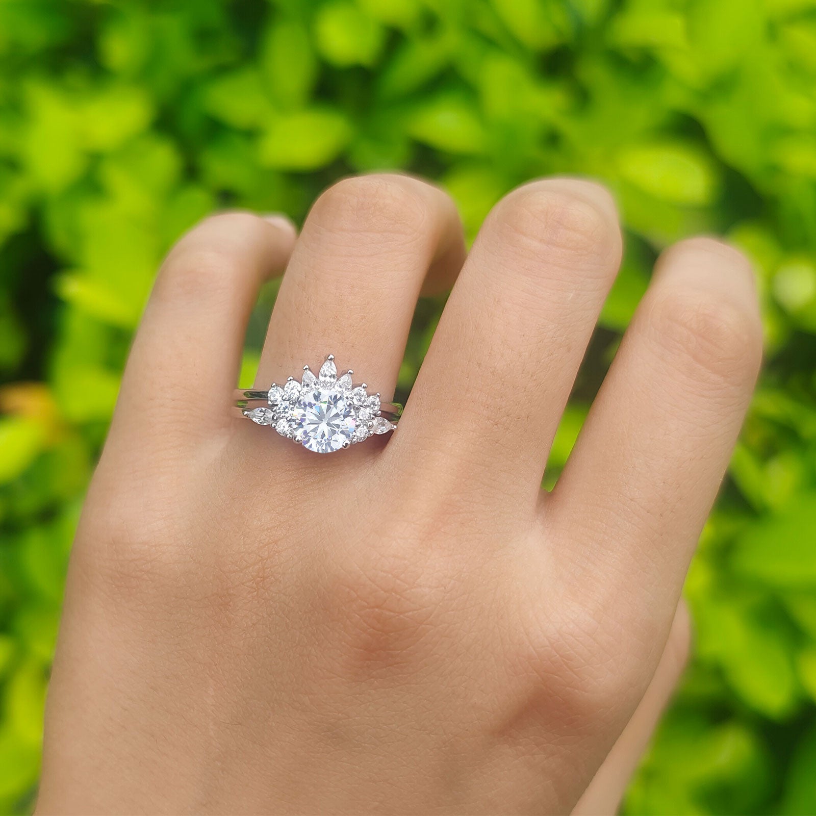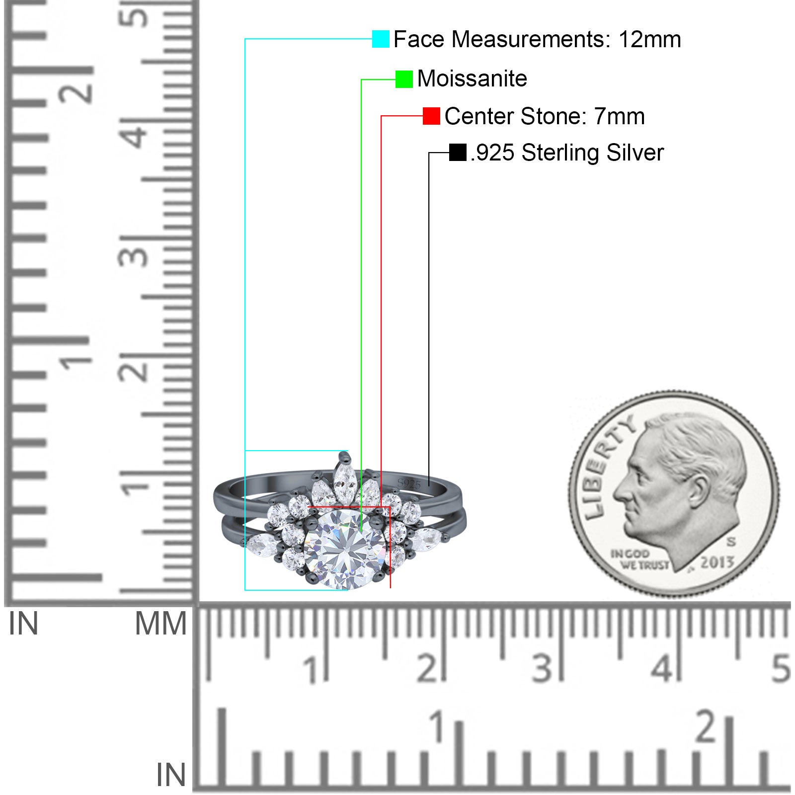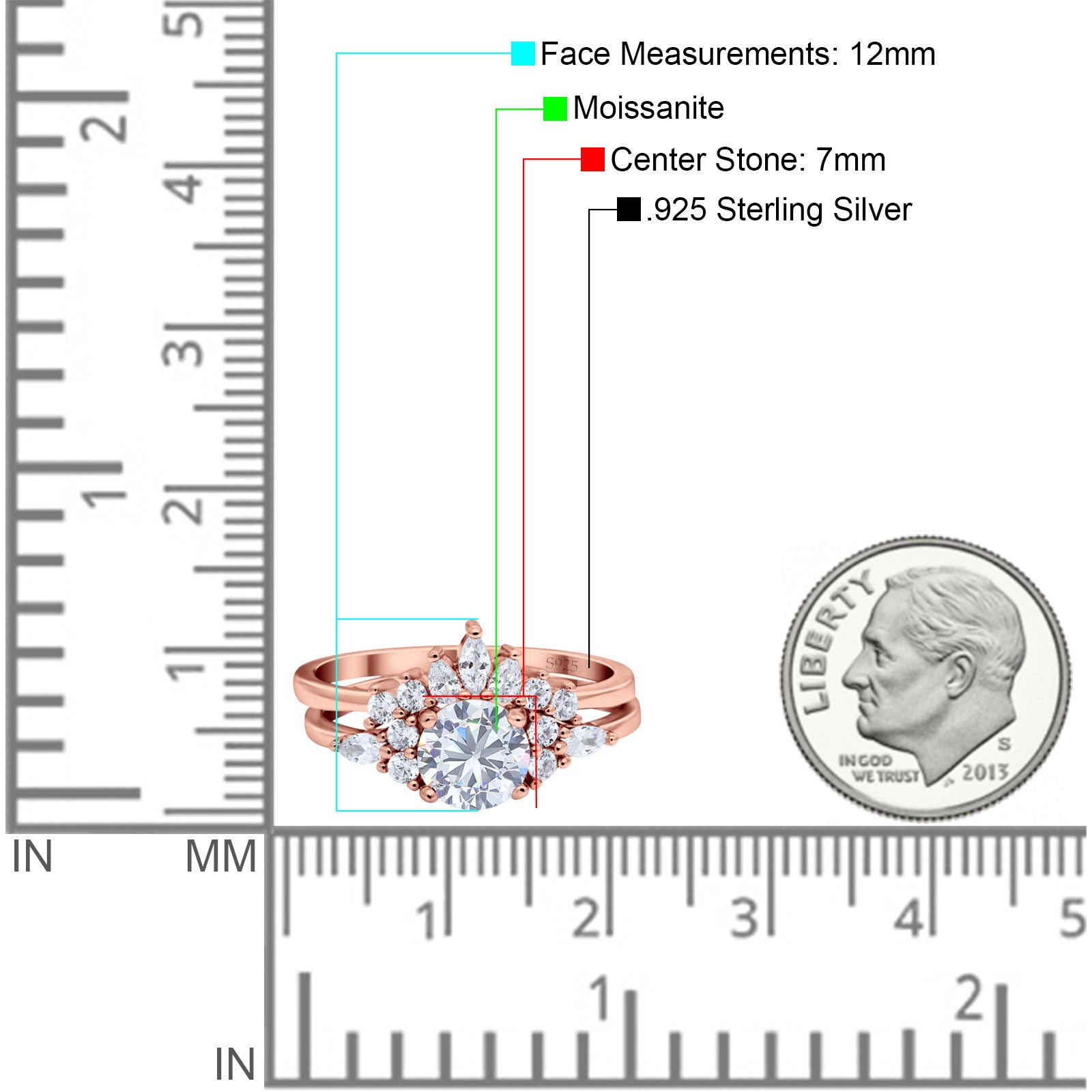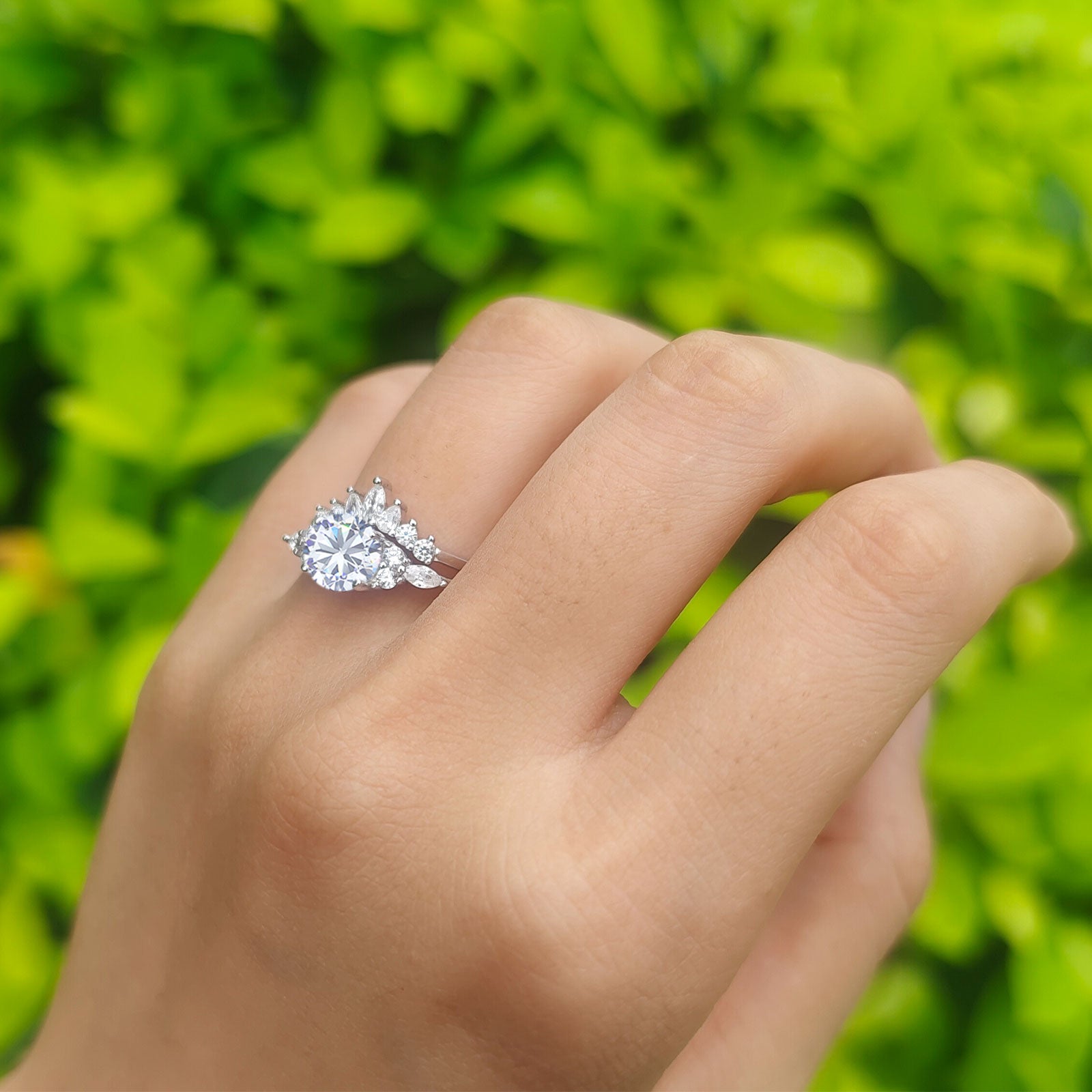 Two Piece Round Moissanite Chevron Ring 925 Sterling Silver