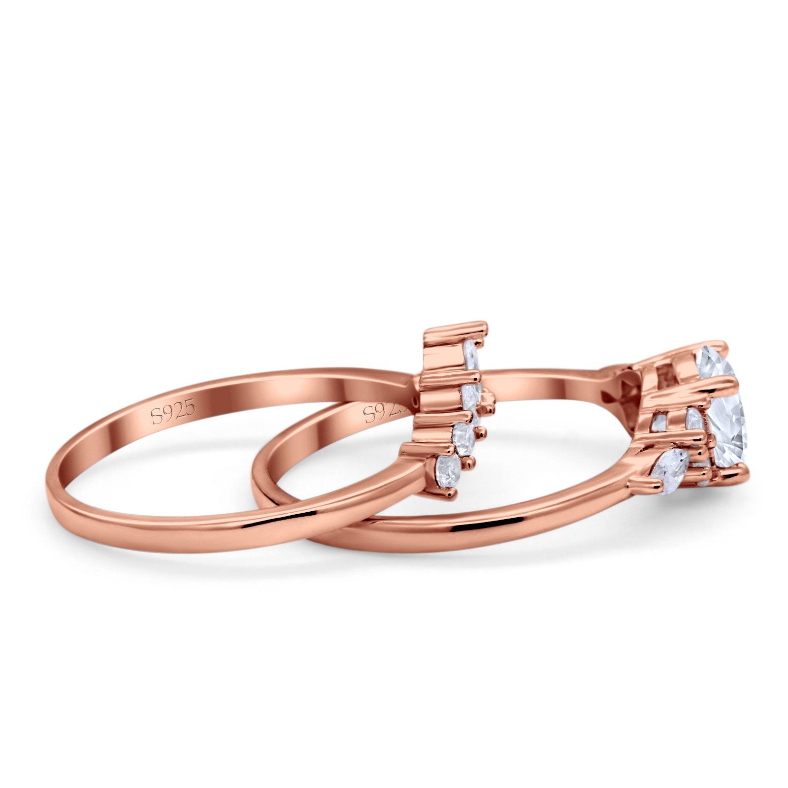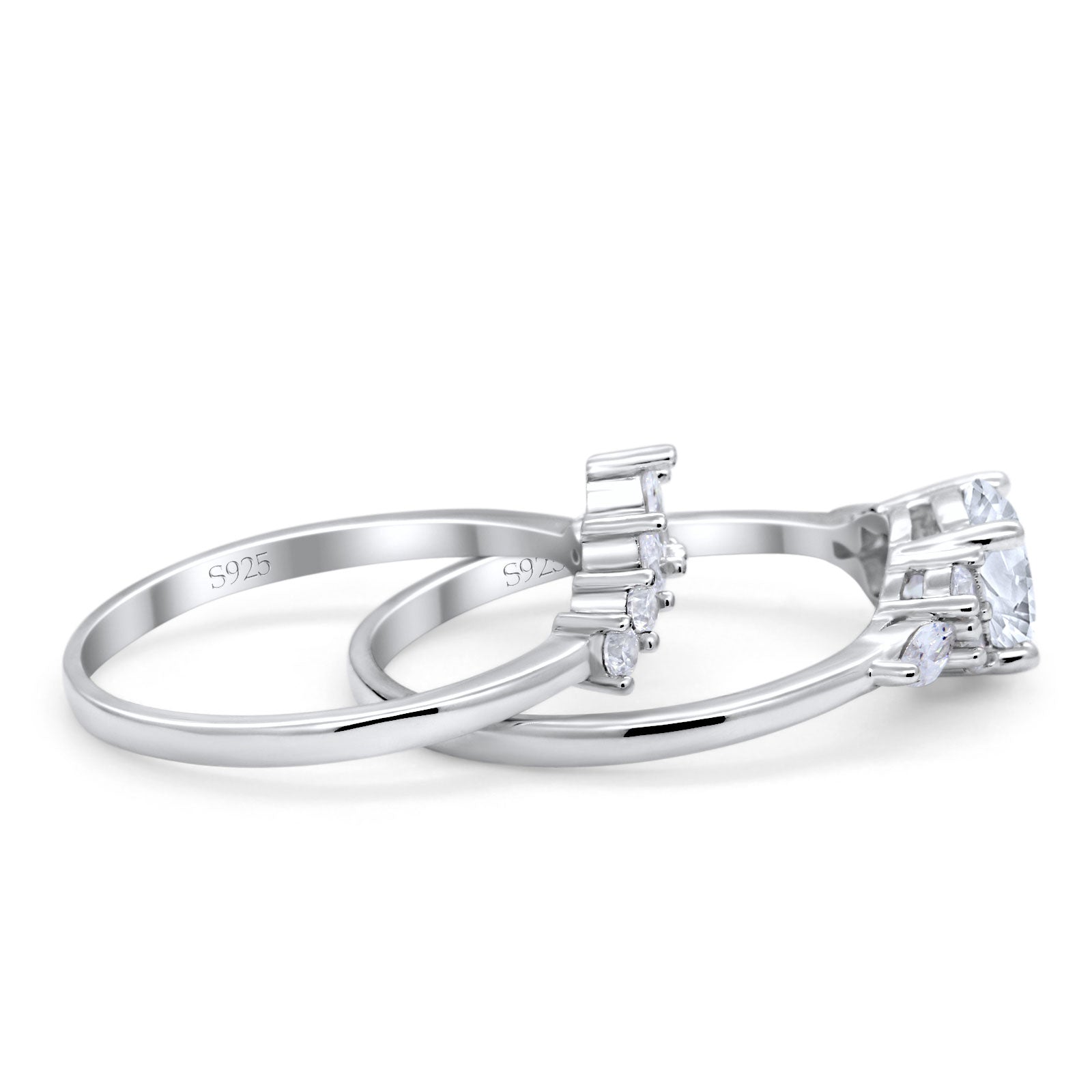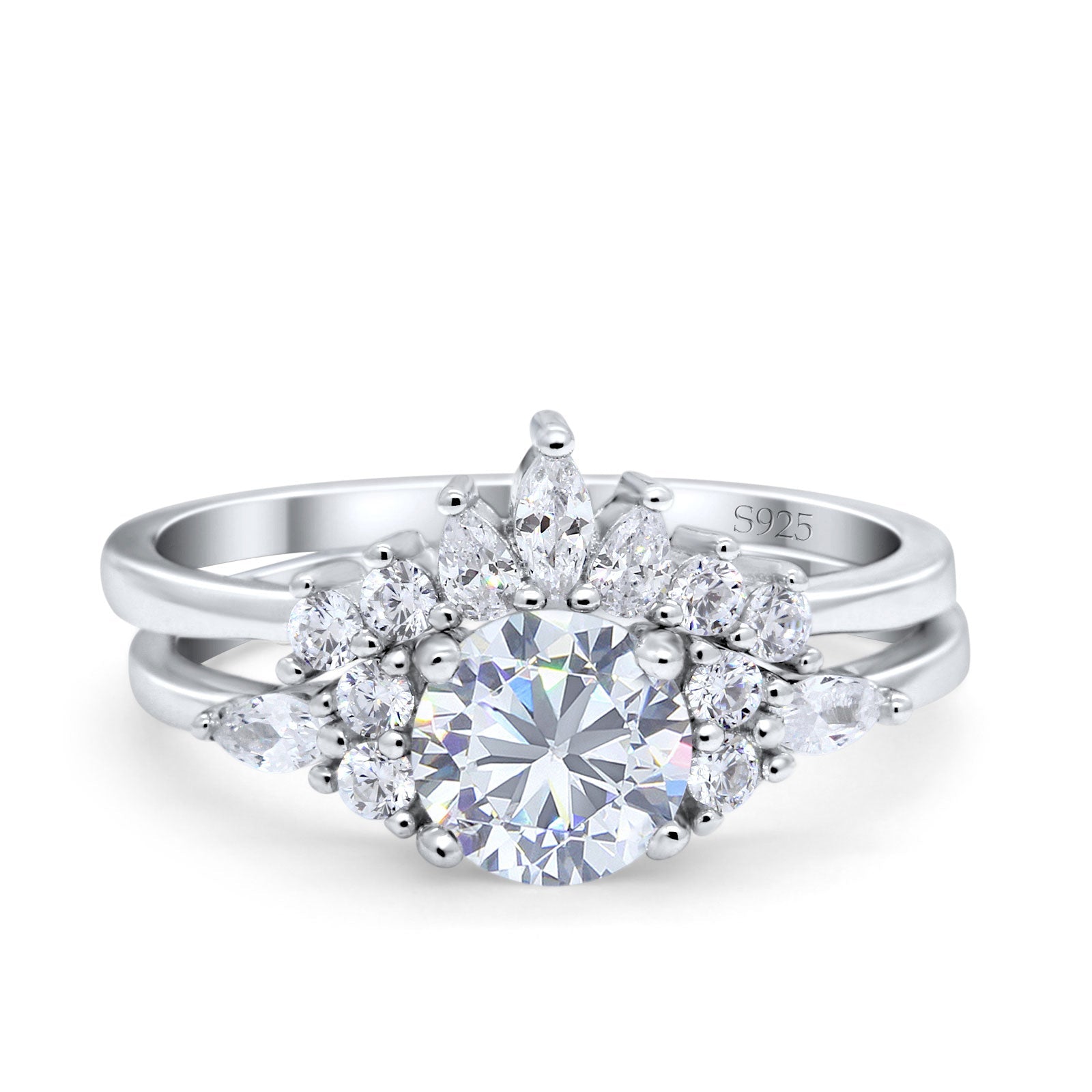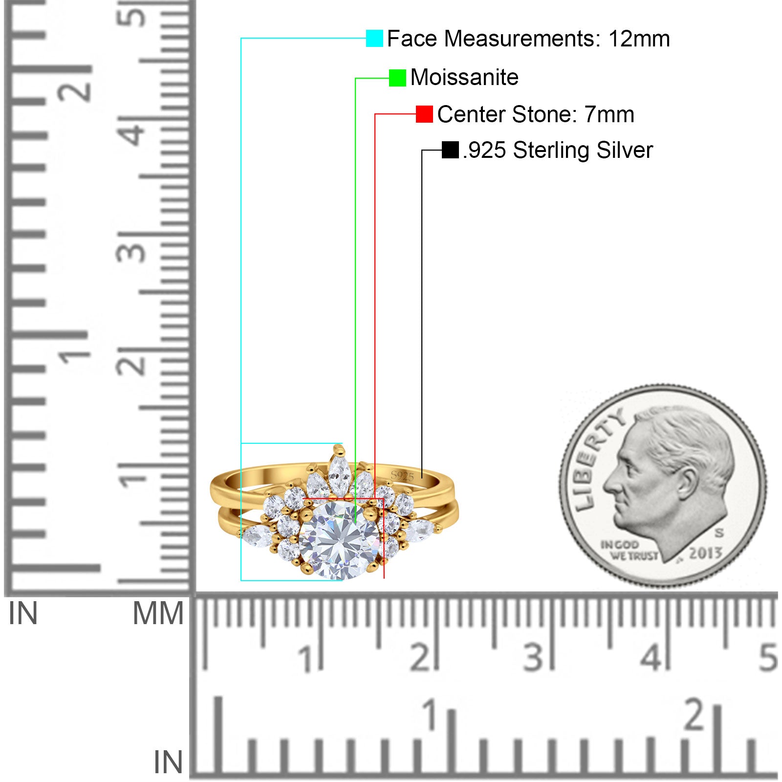 Two Piece Round Moissanite Chevron Ring 925 Sterling Silver