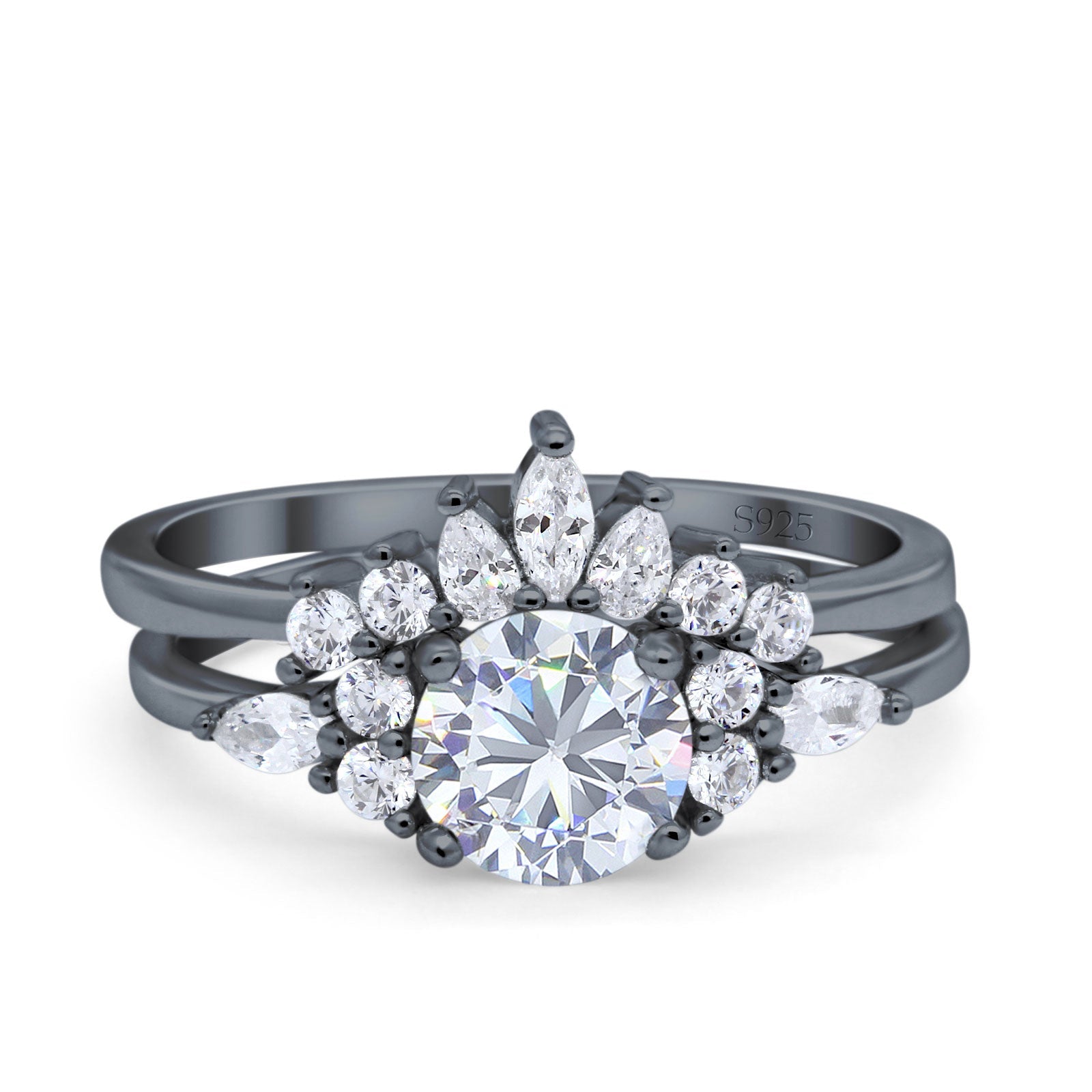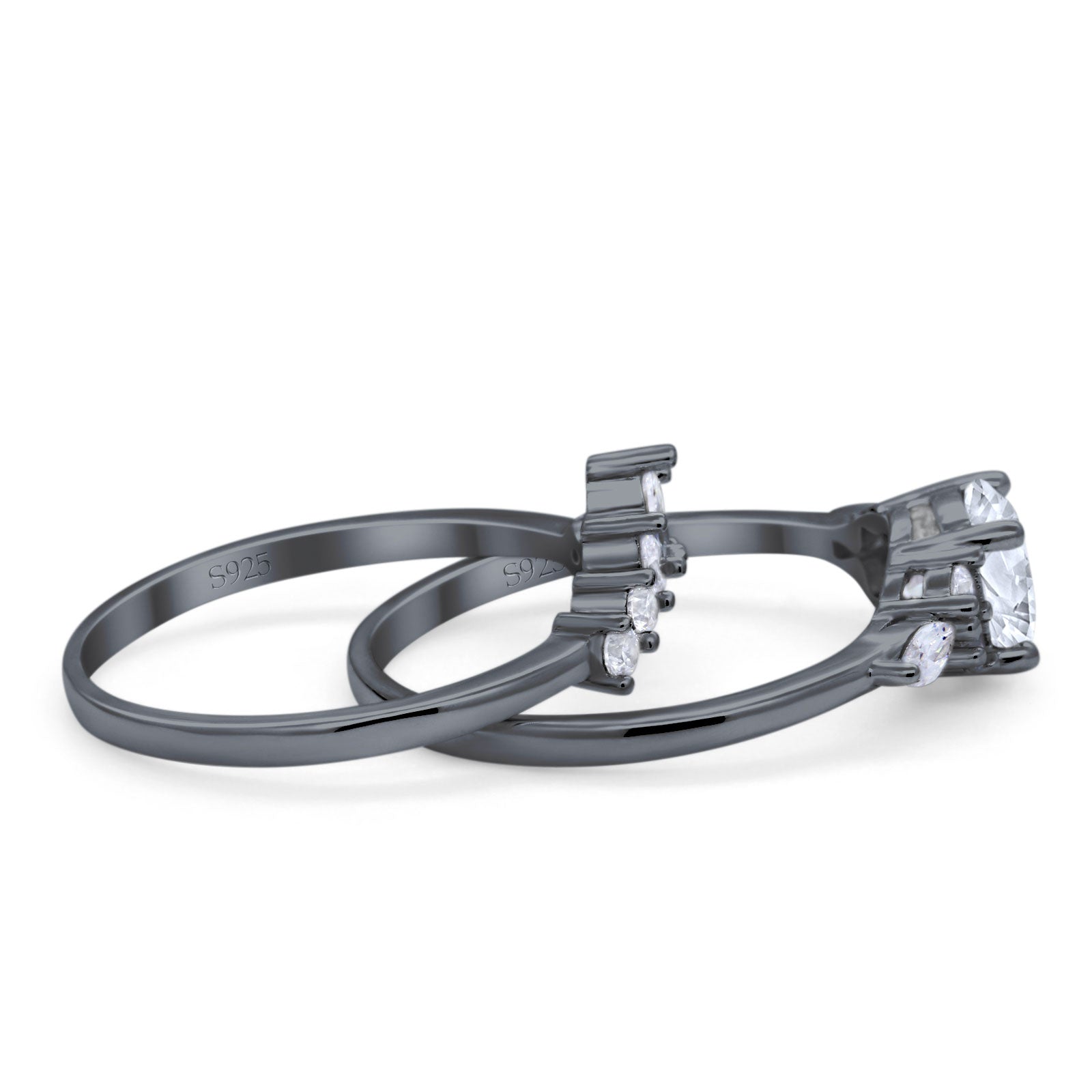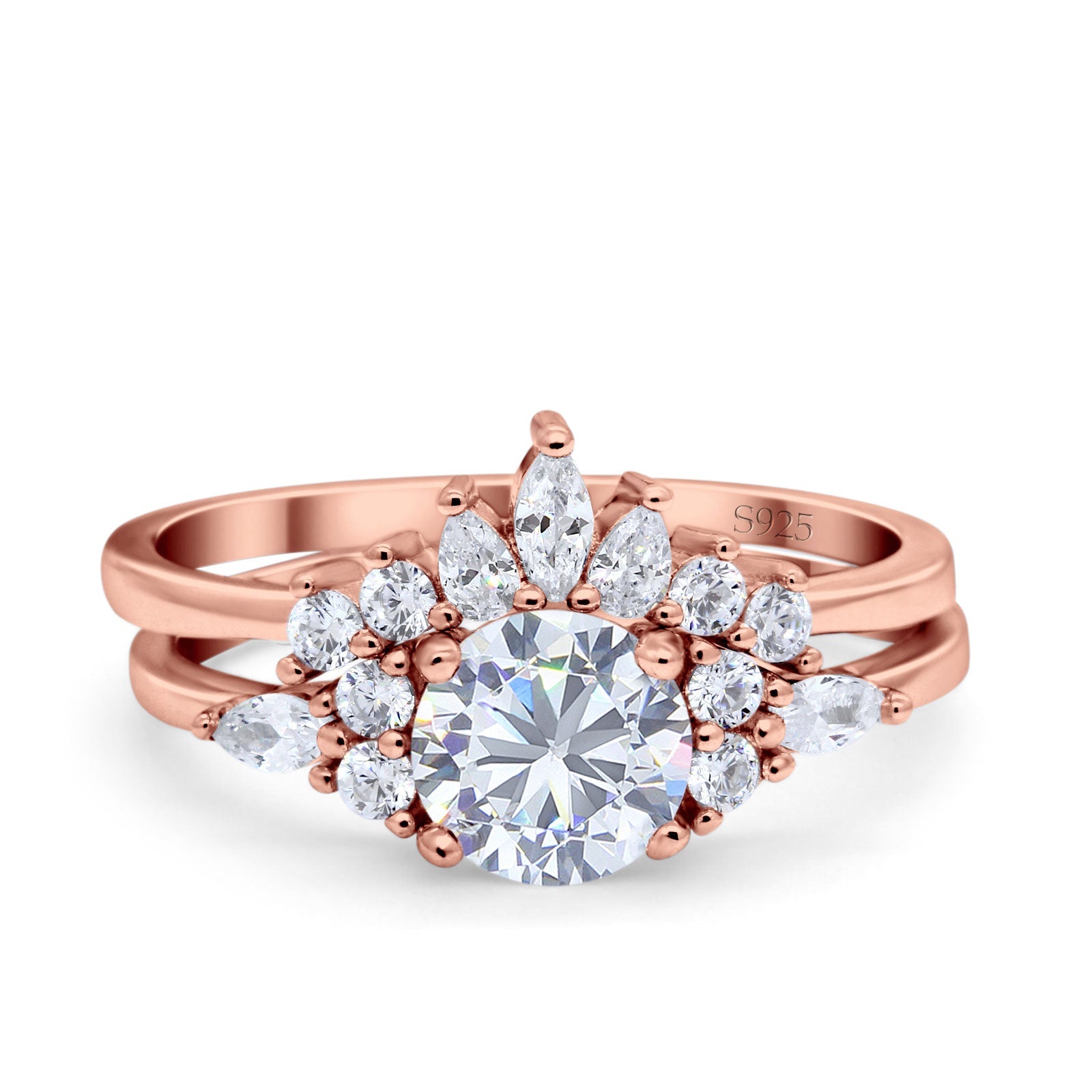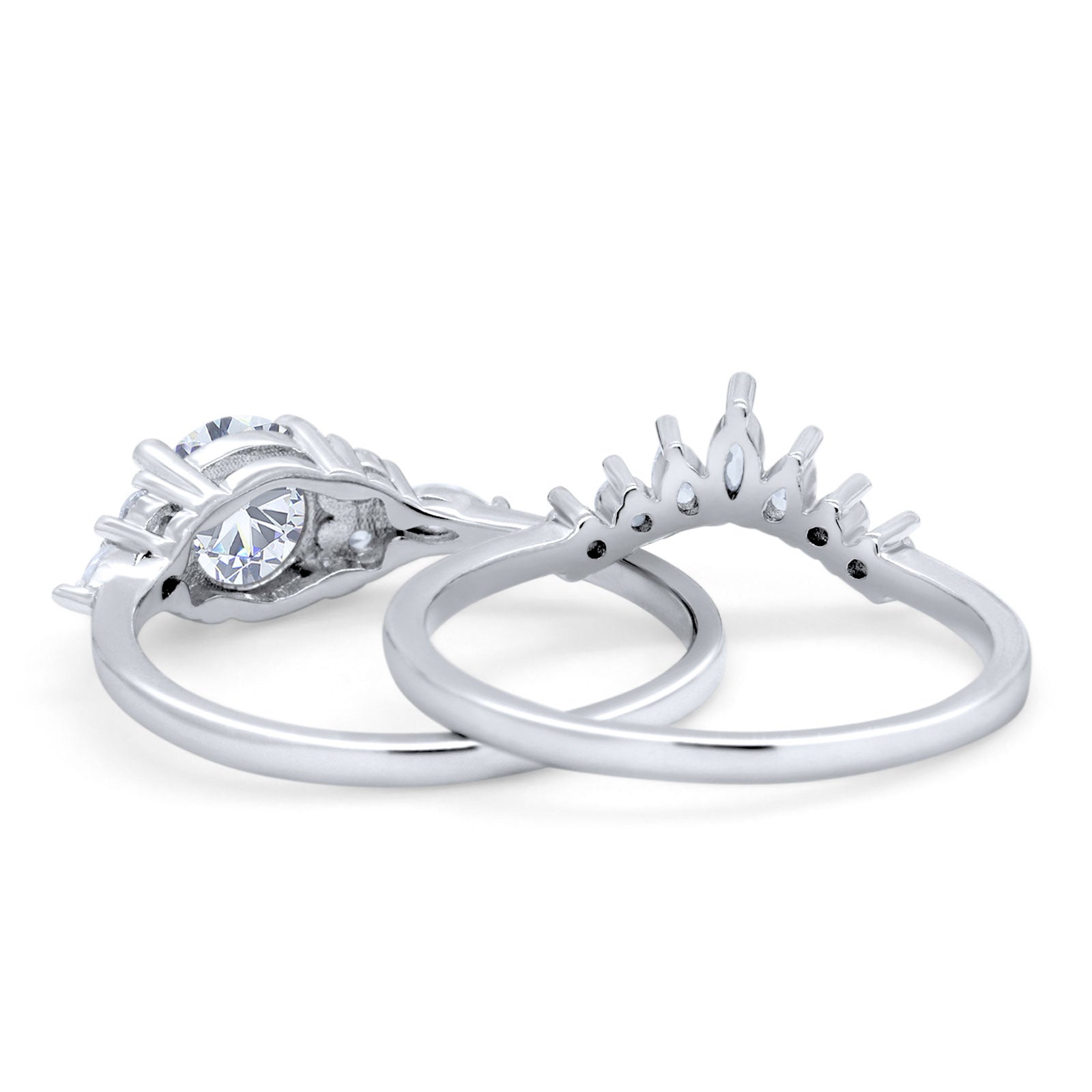 Two Piece Round Moissanite Chevron Ring 925 Sterling Silver