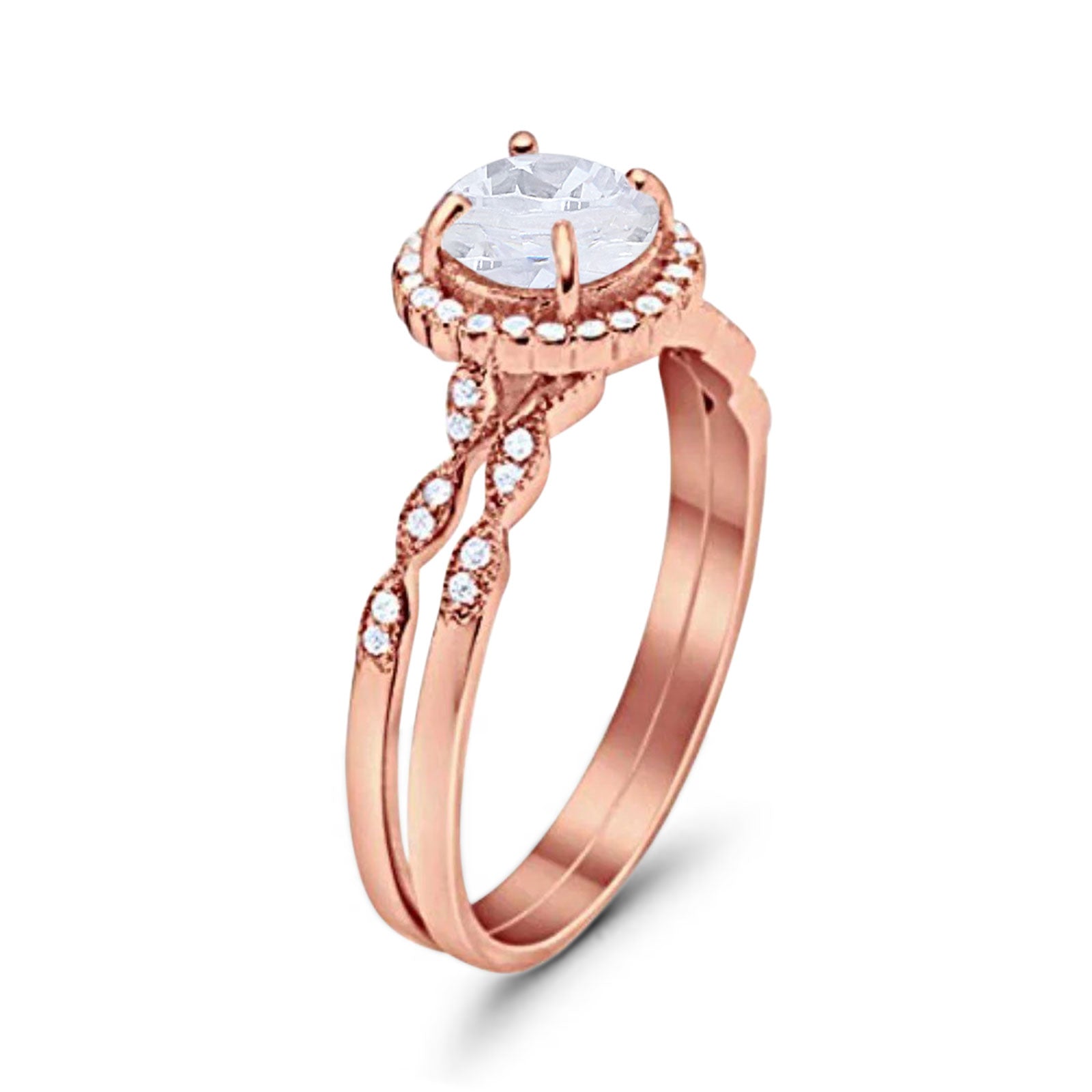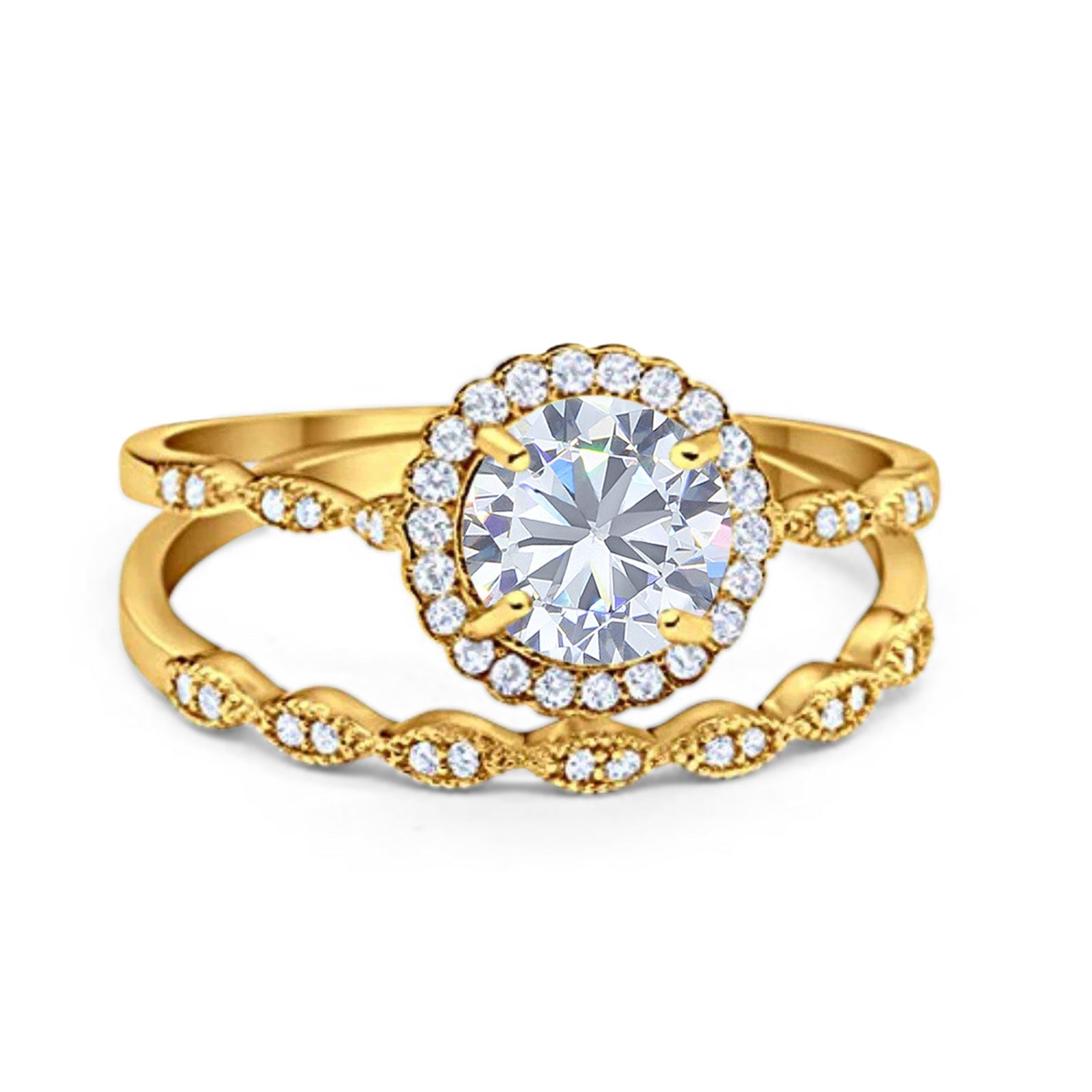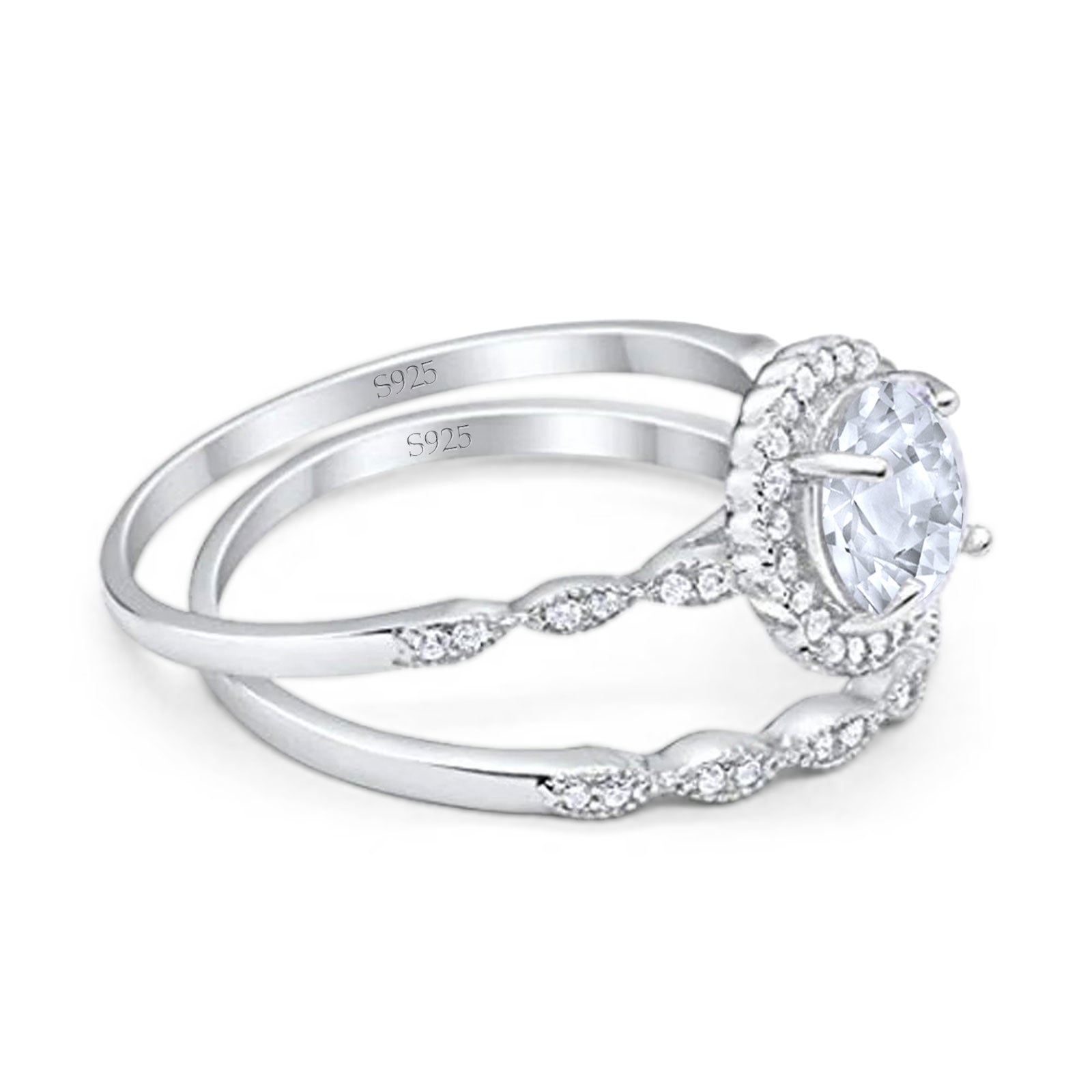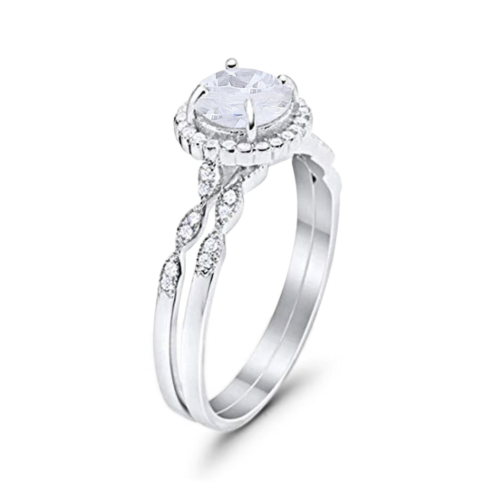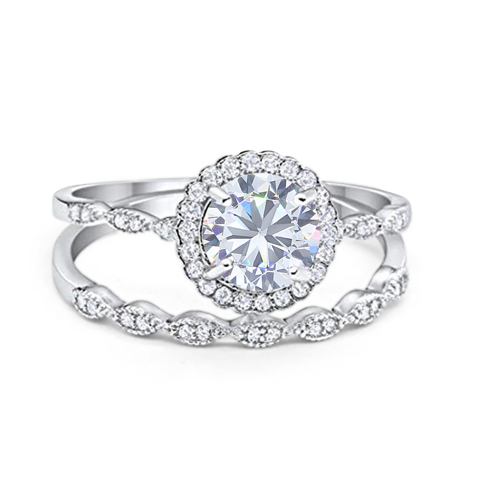 Two Piece Round Moissanite Flower Ring 925 Sterling Silver