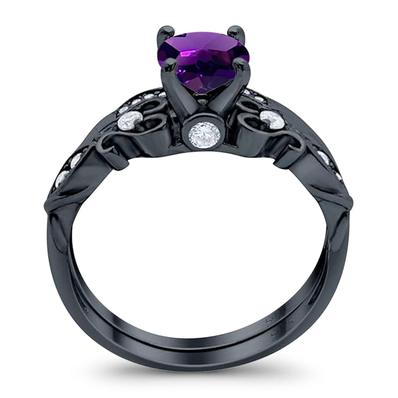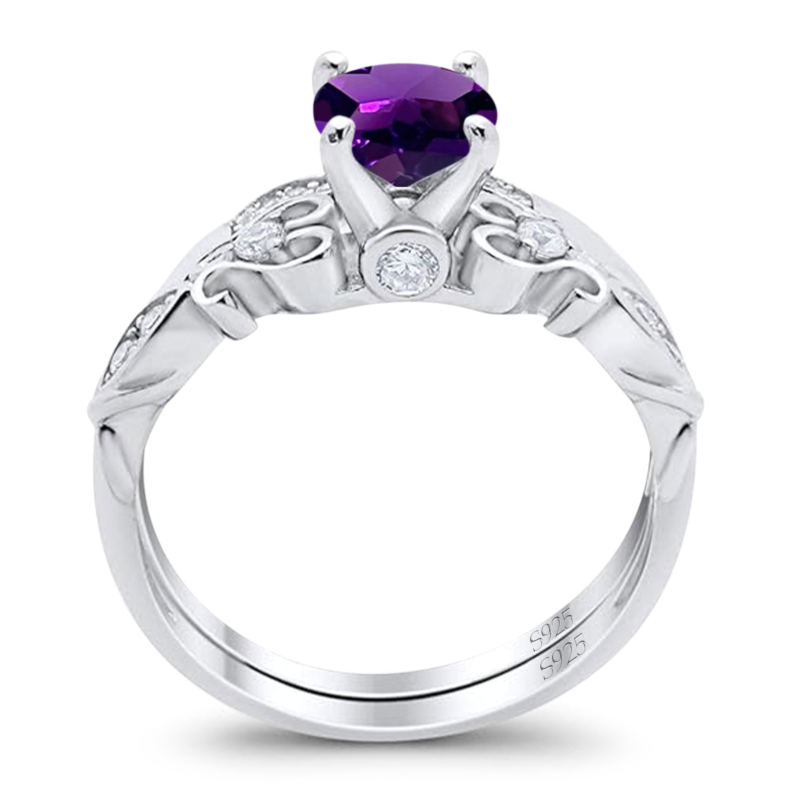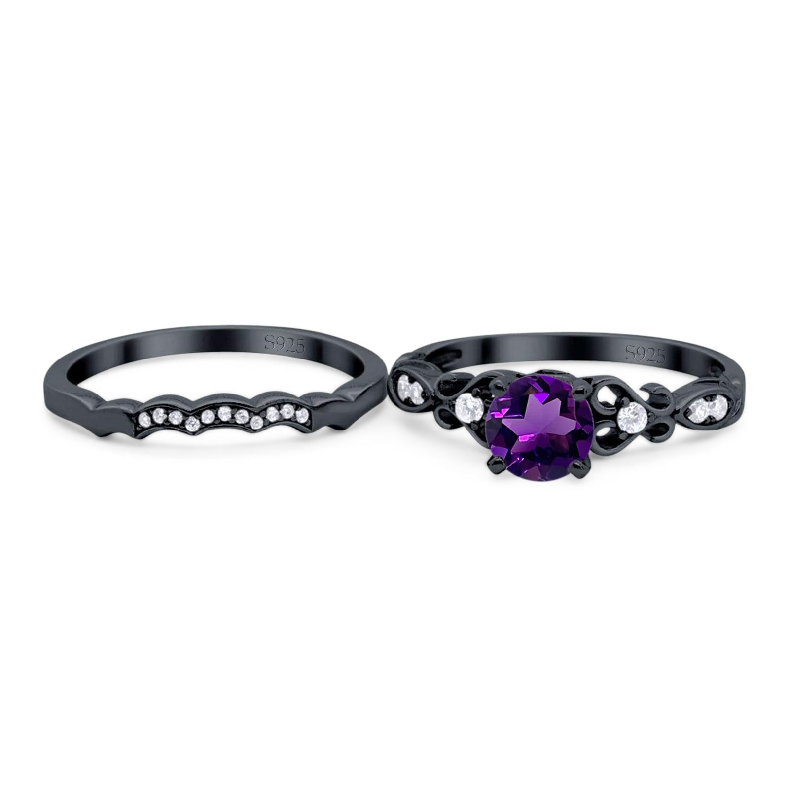 Two Piece Round Natural Amethyst Art Deco Ring 925 Sterling Silver