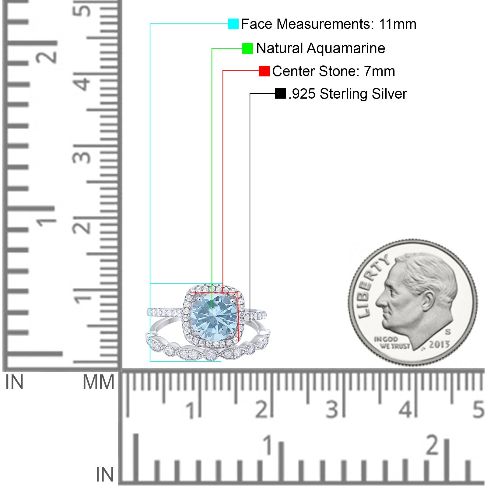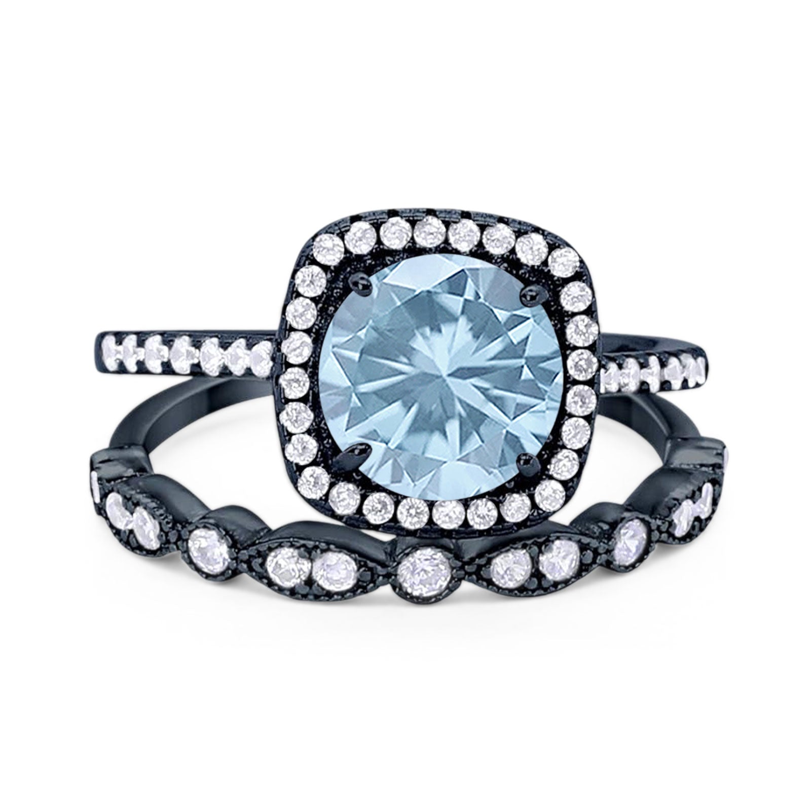 Two Piece Round Natural Aquamarine Halo Bridal Ring 925 Sterling Silver