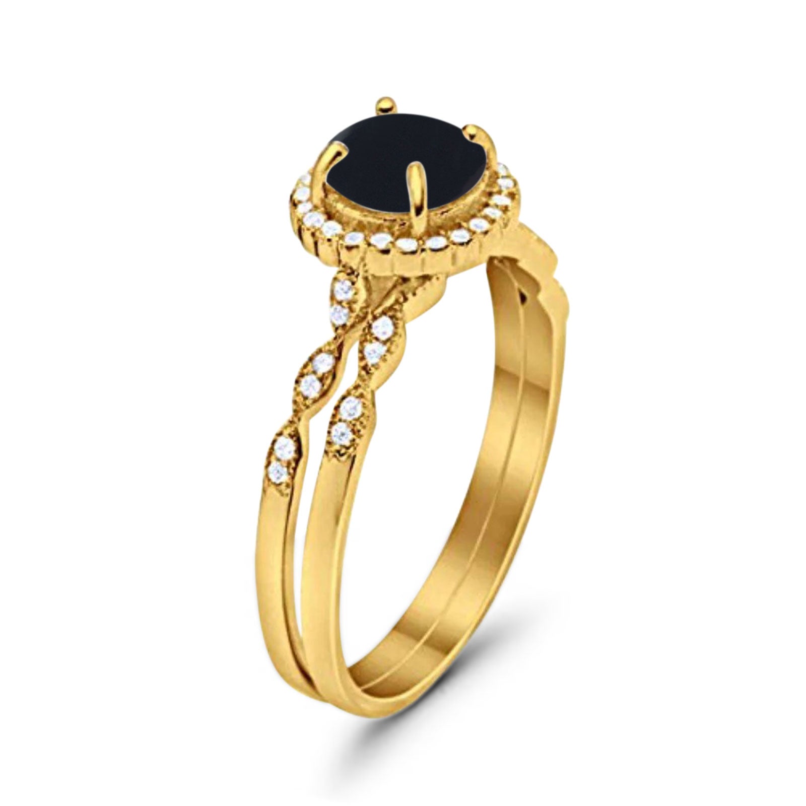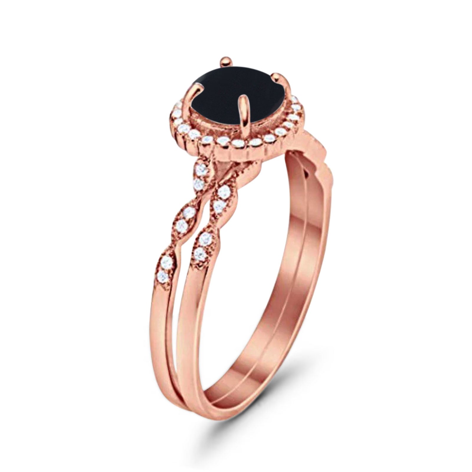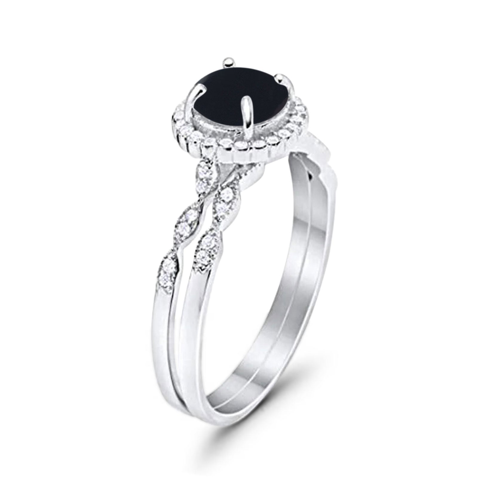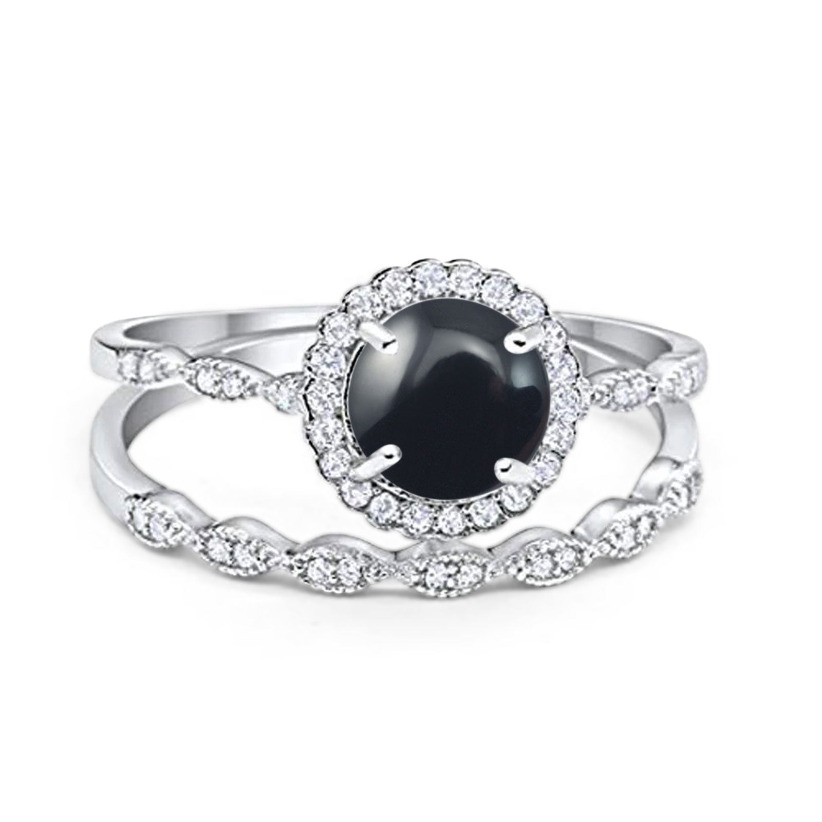 Two Piece Round Natural Black Onyx Flower Ring 925 Sterling Silver