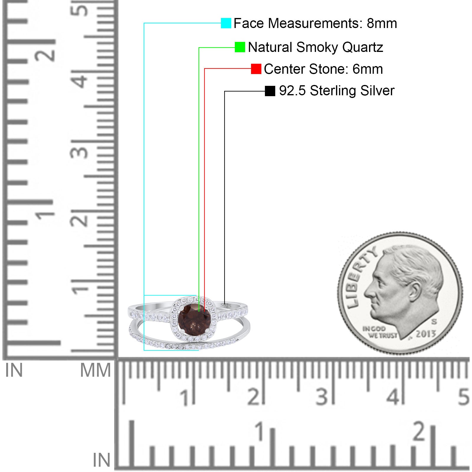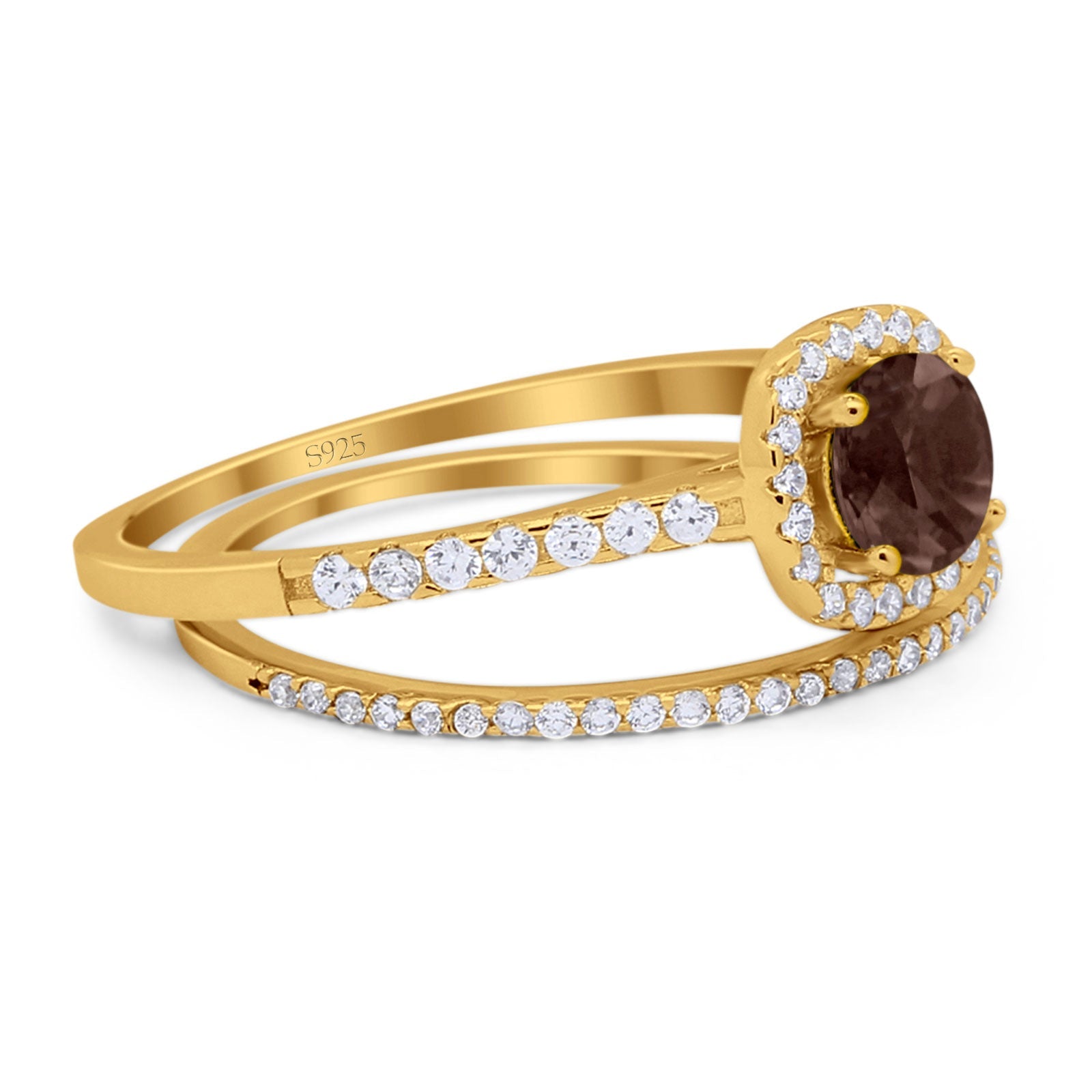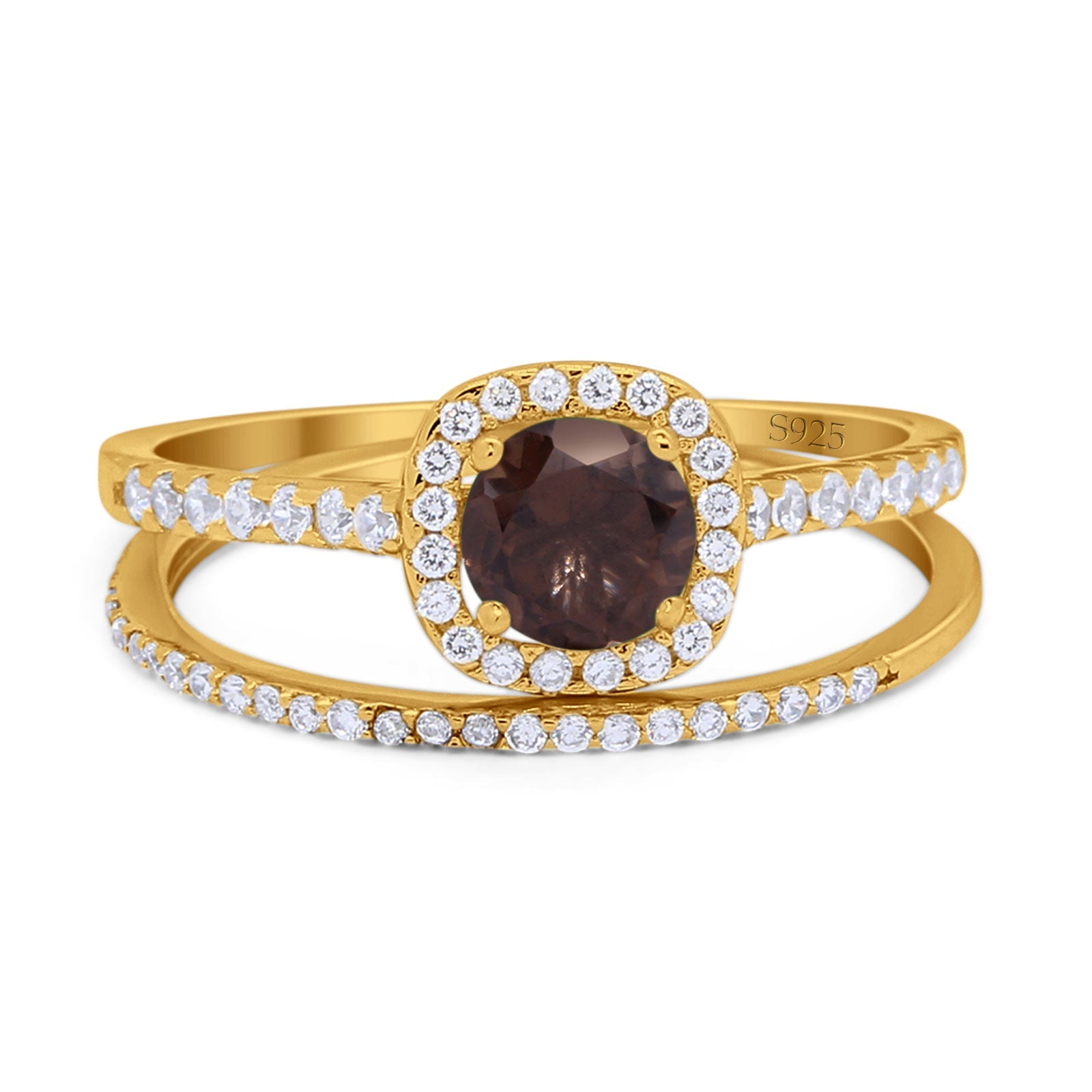 Two Piece Round Natural Chocolate Smoky Quartz Halo Ring 925 Sterling Silver