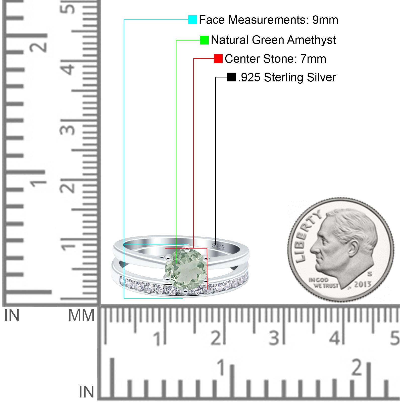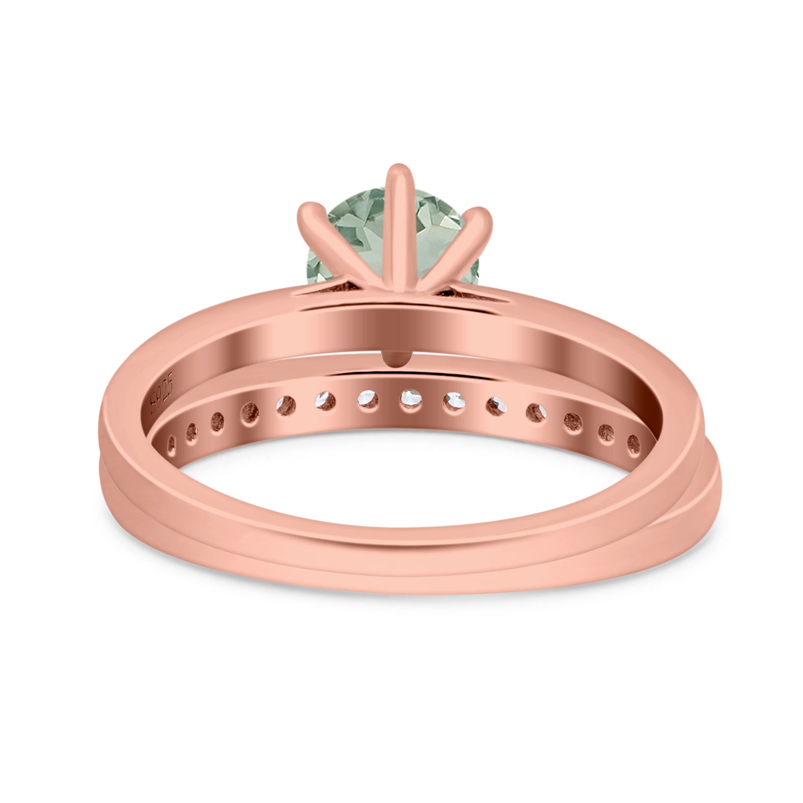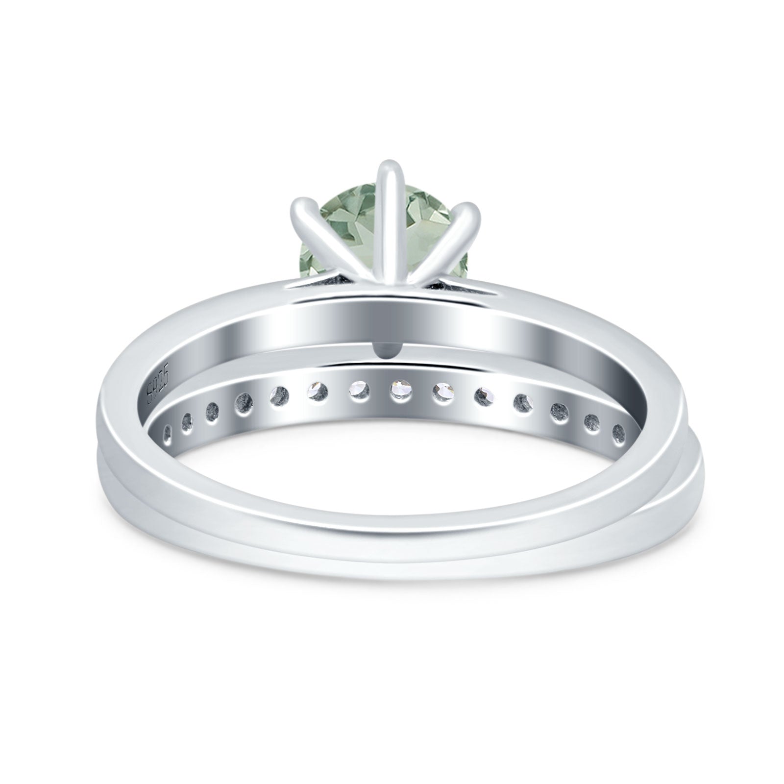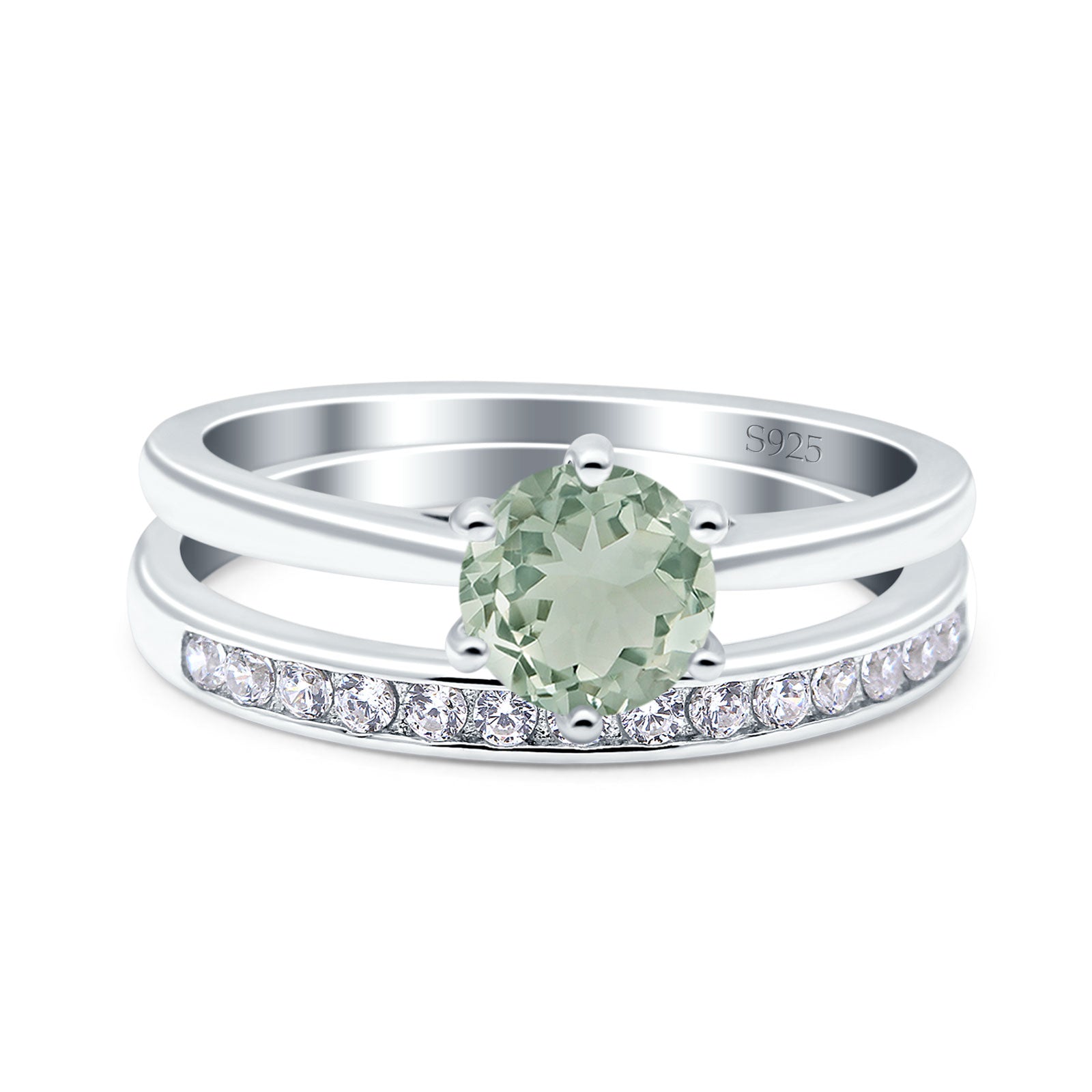 Two Piece Round Natural Green Amethyst Prasiolite Eternity Ring 925 Sterling Silver