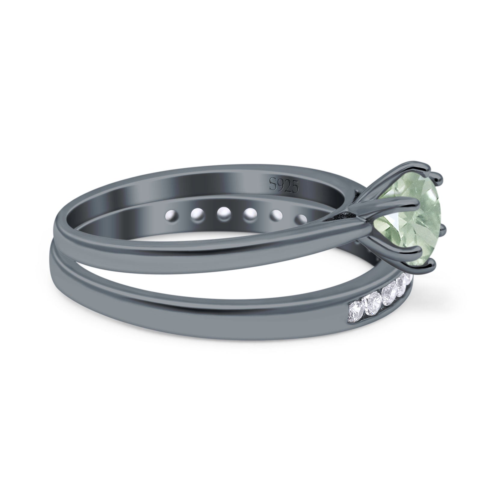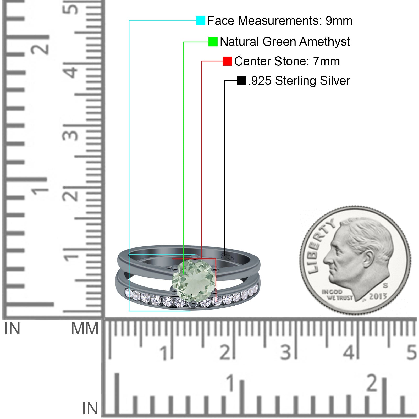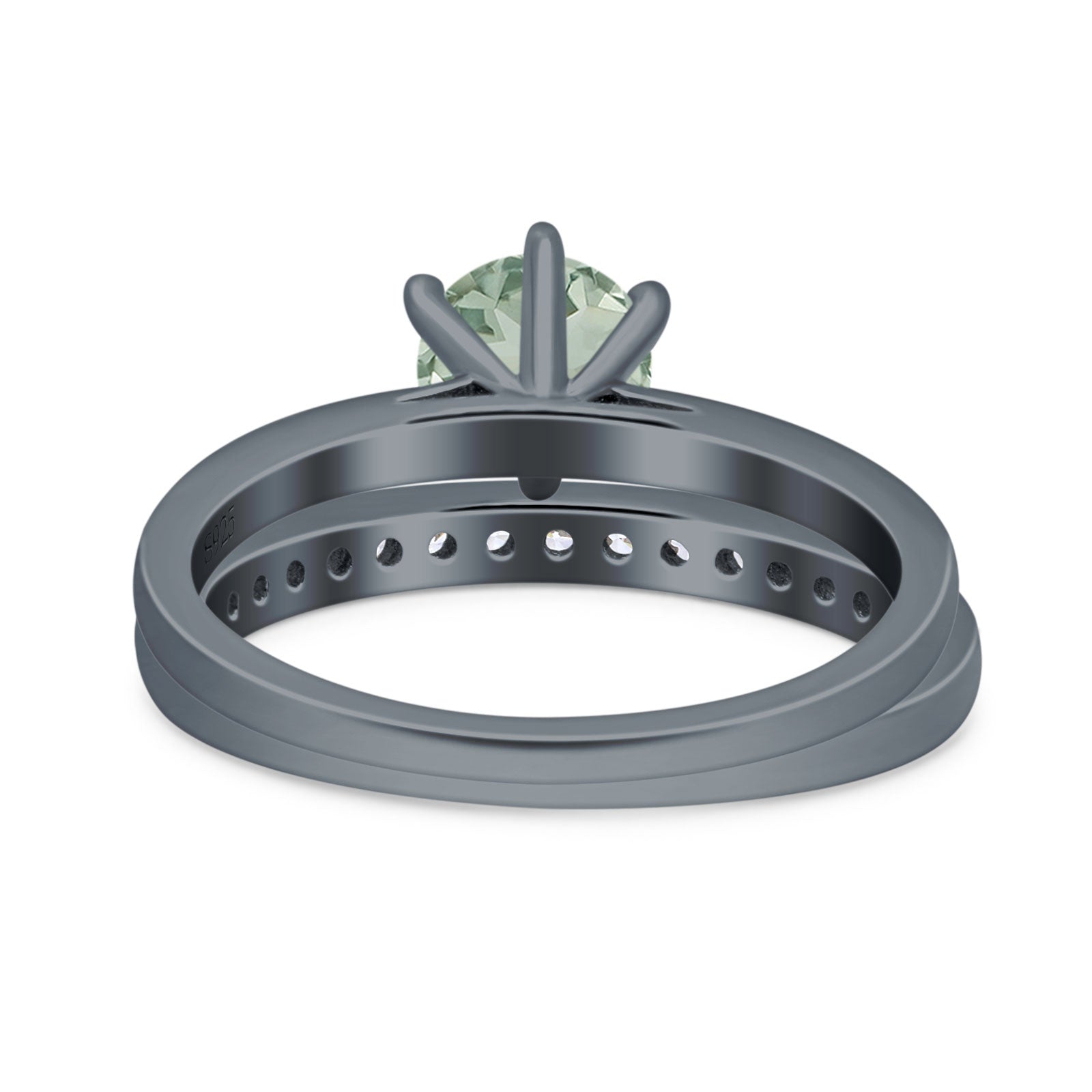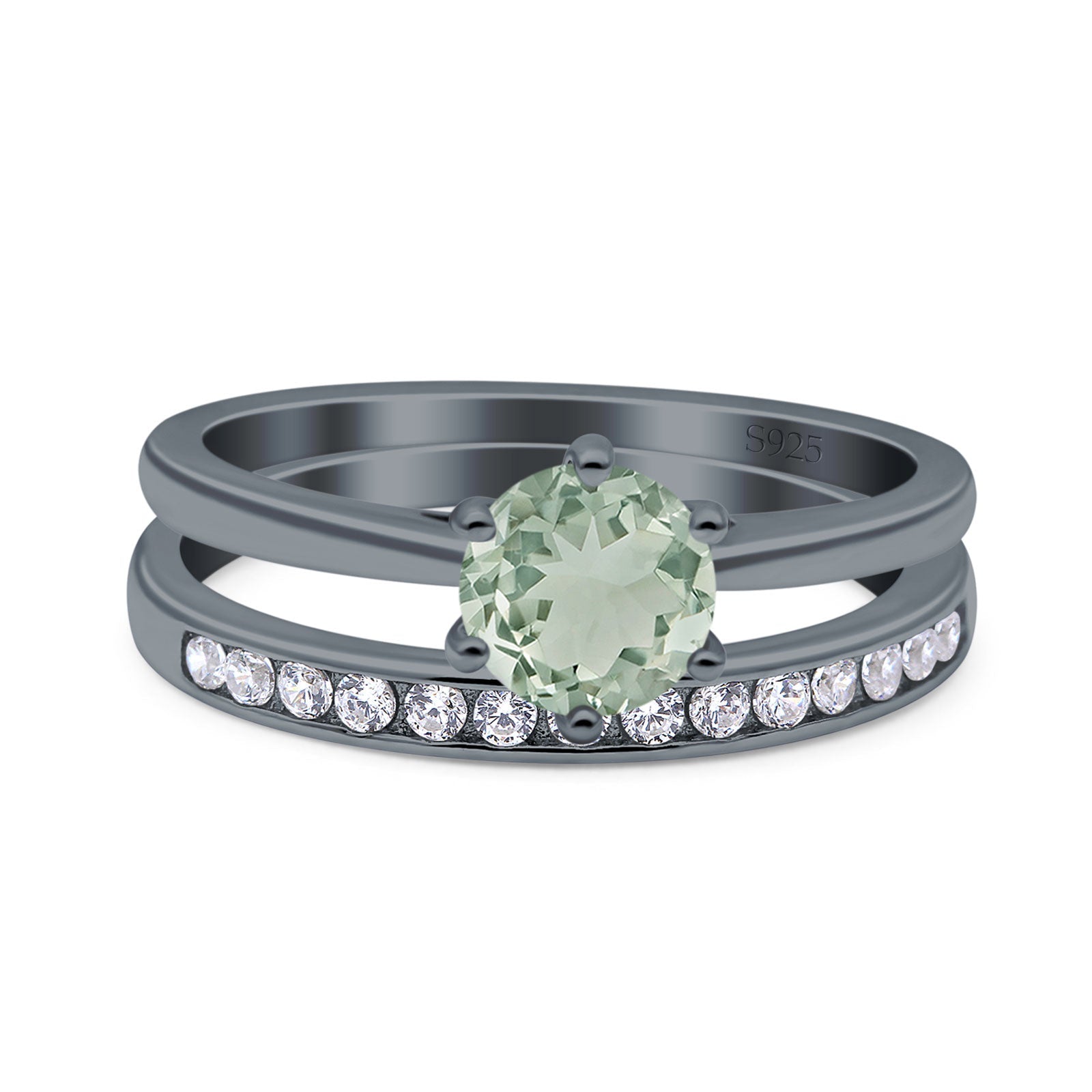Two Piece Round Natural Green Amethyst Prasiolite Eternity Ring 925 Sterling Silver