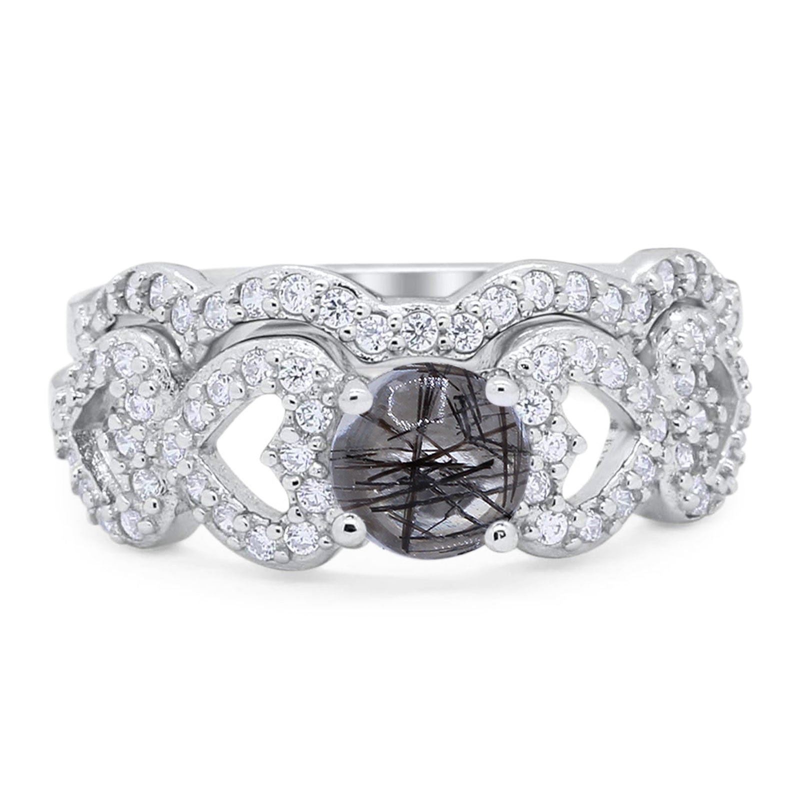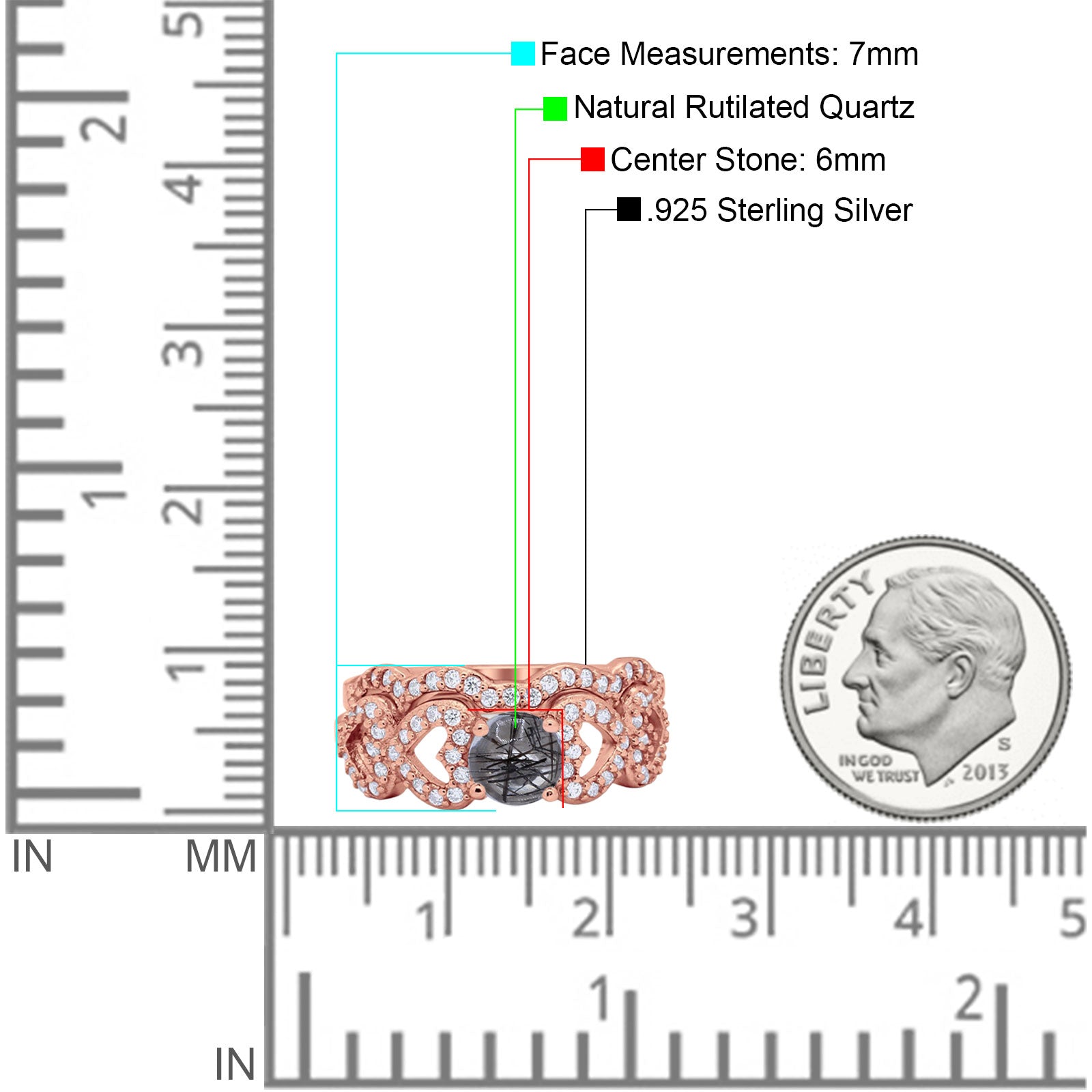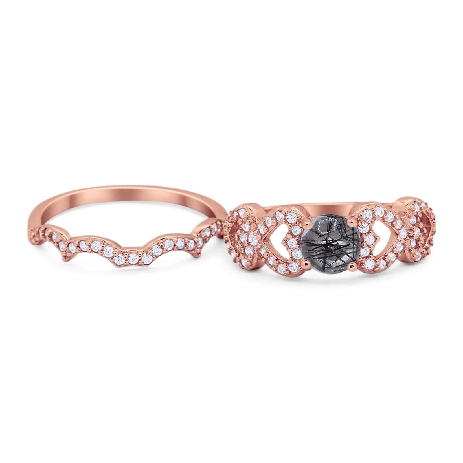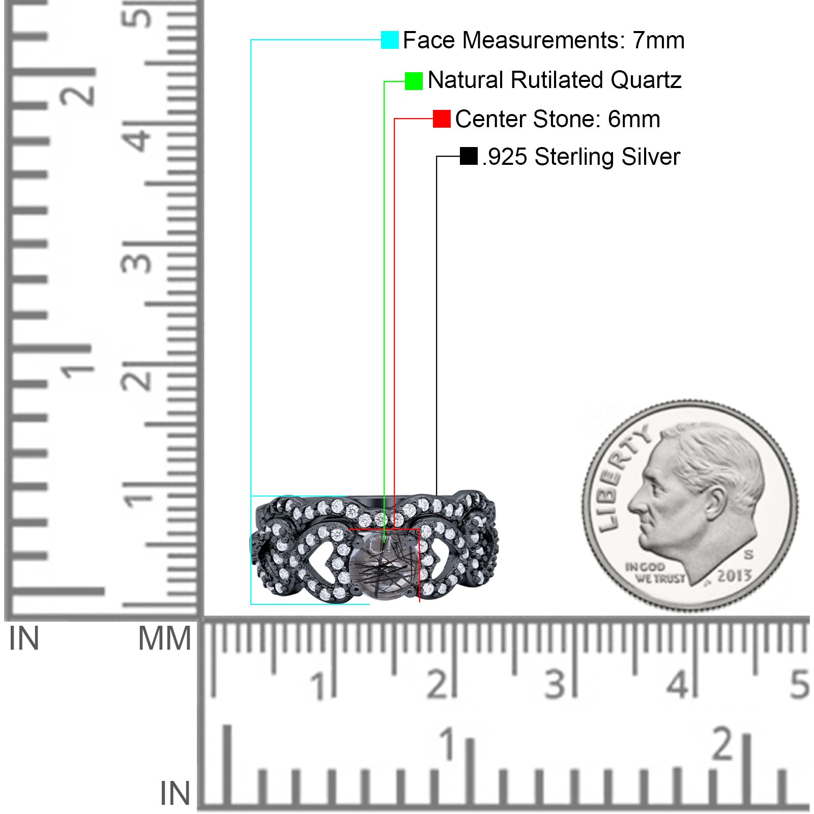 Two Piece Round Natural Rutilated Quartz Art Deco Ring 925 Sterling Silver