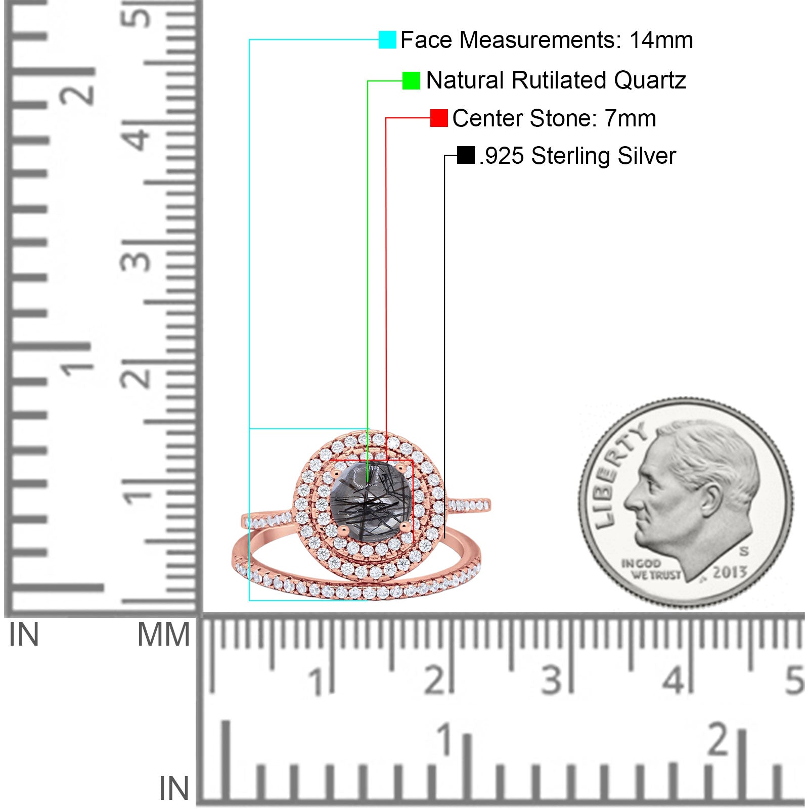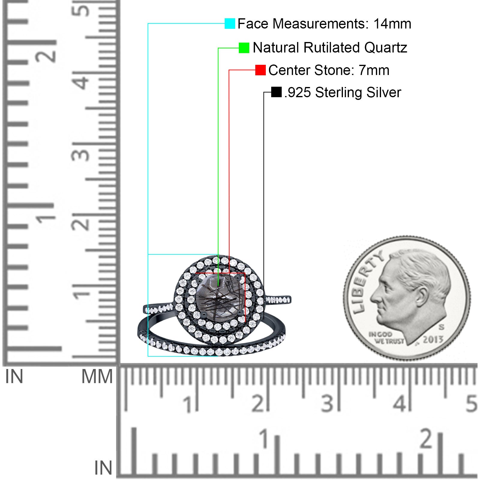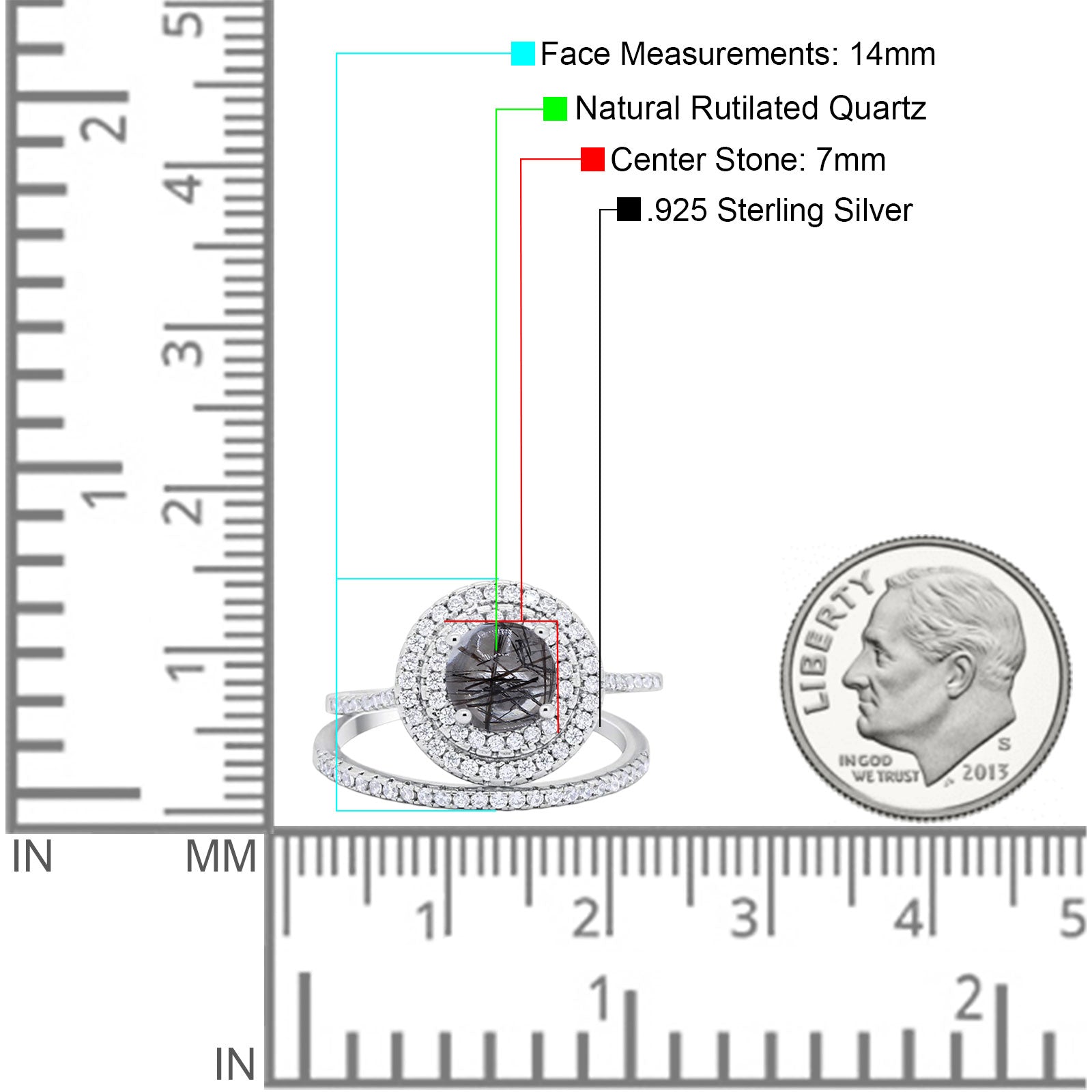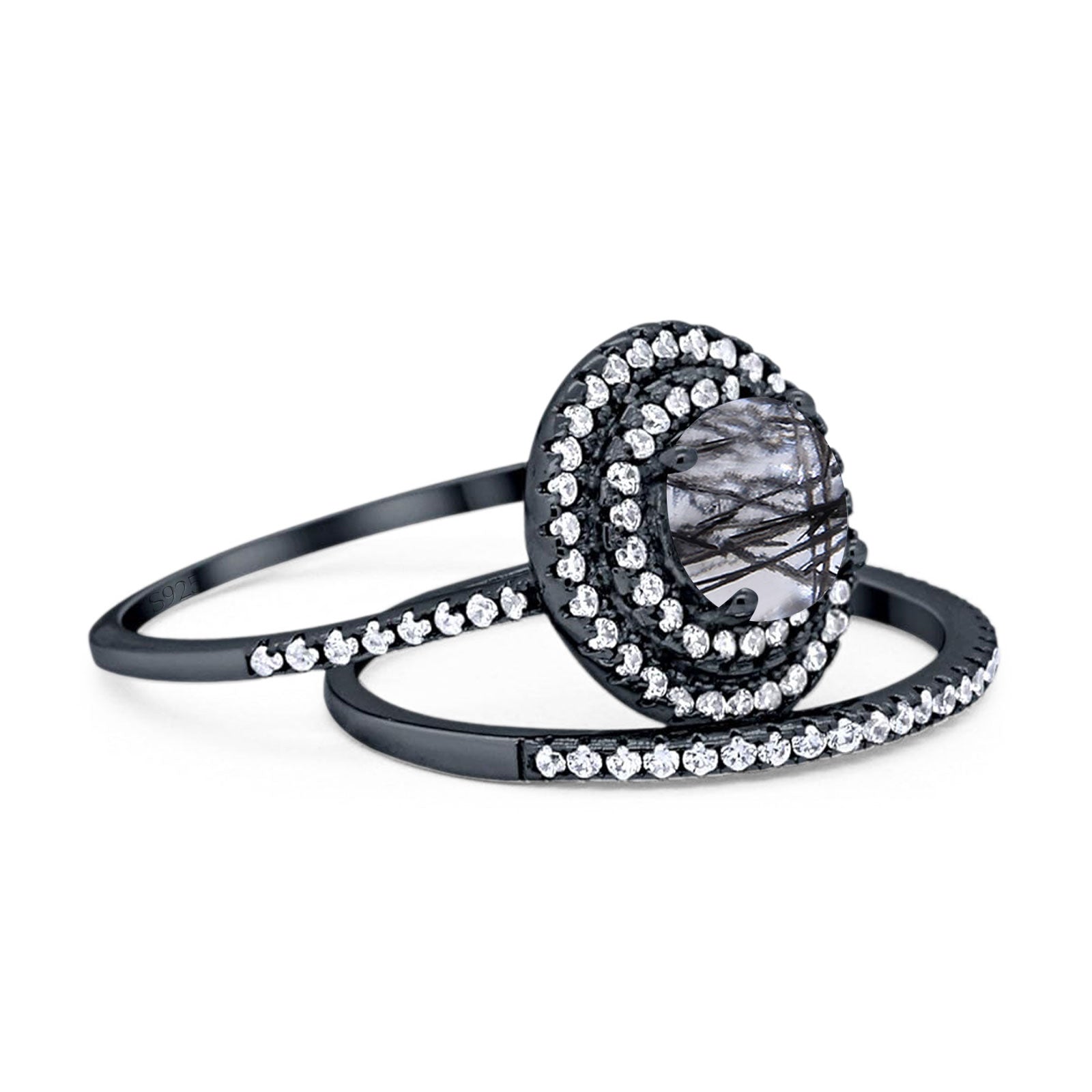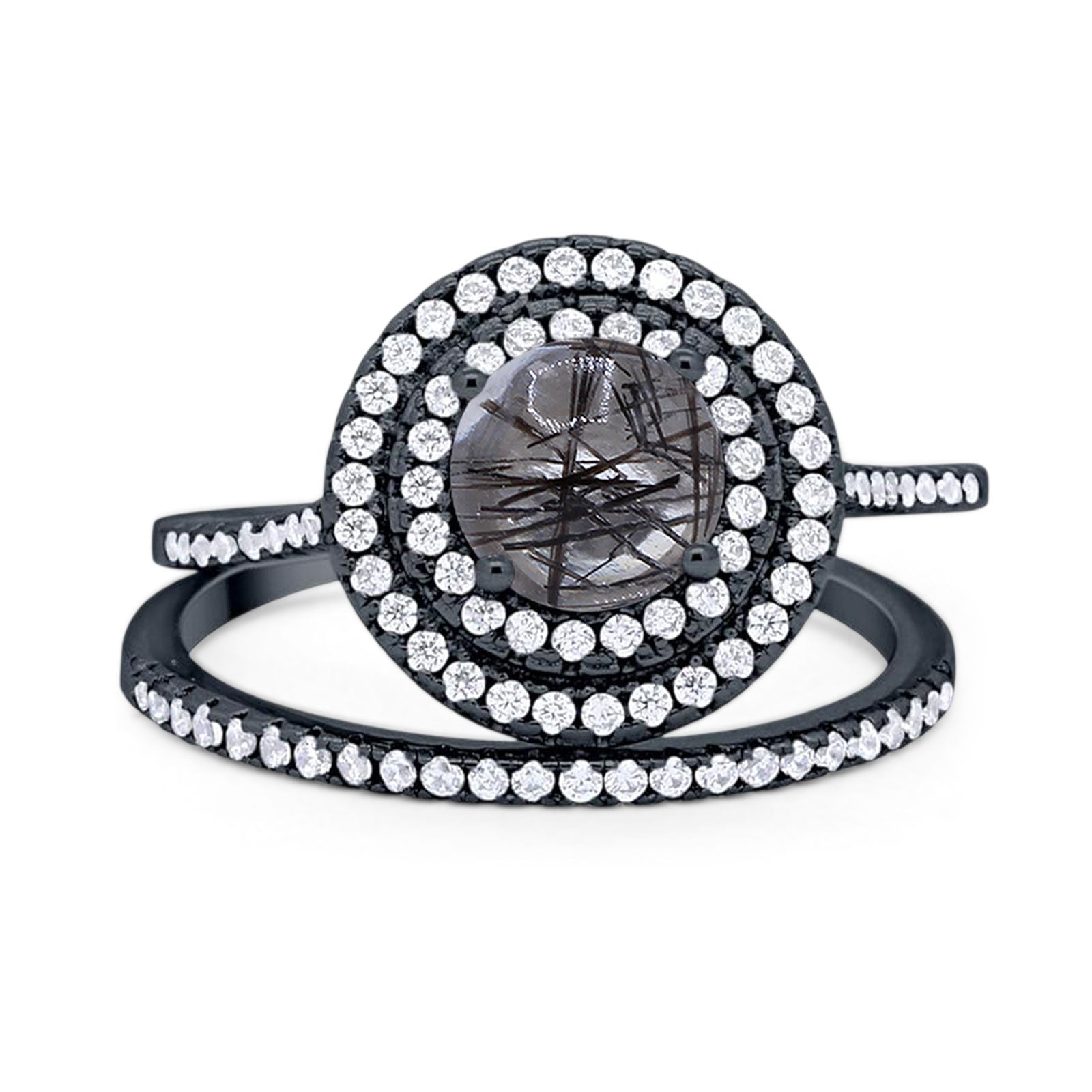 Two Piece Round Natural Rutilated Quartz Double Halo Ring 925 Sterling Silver