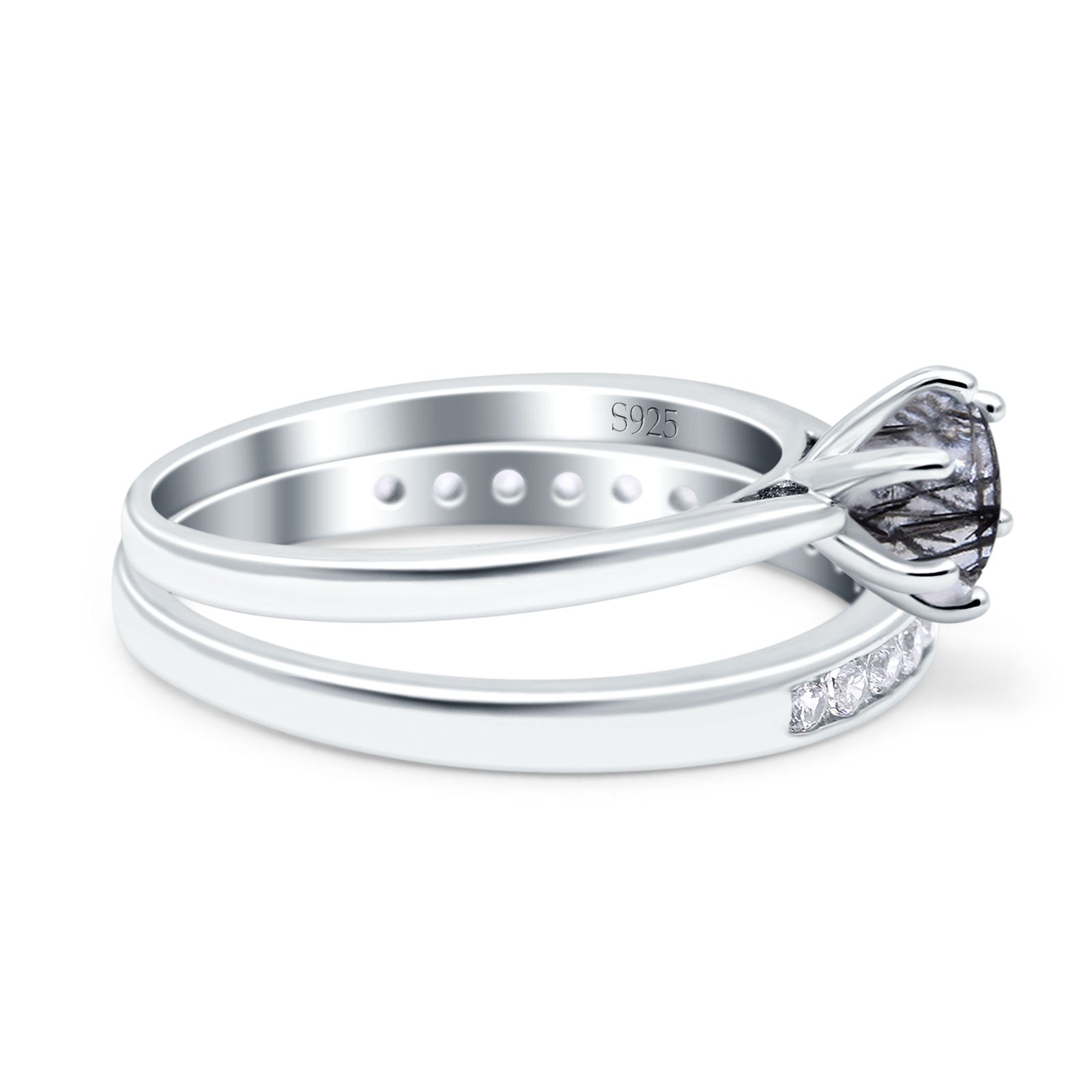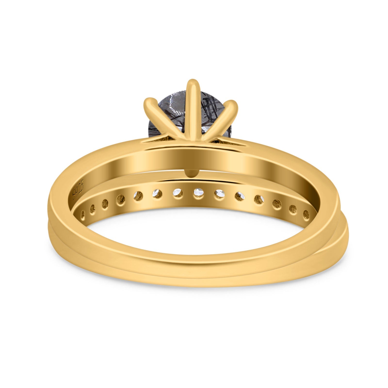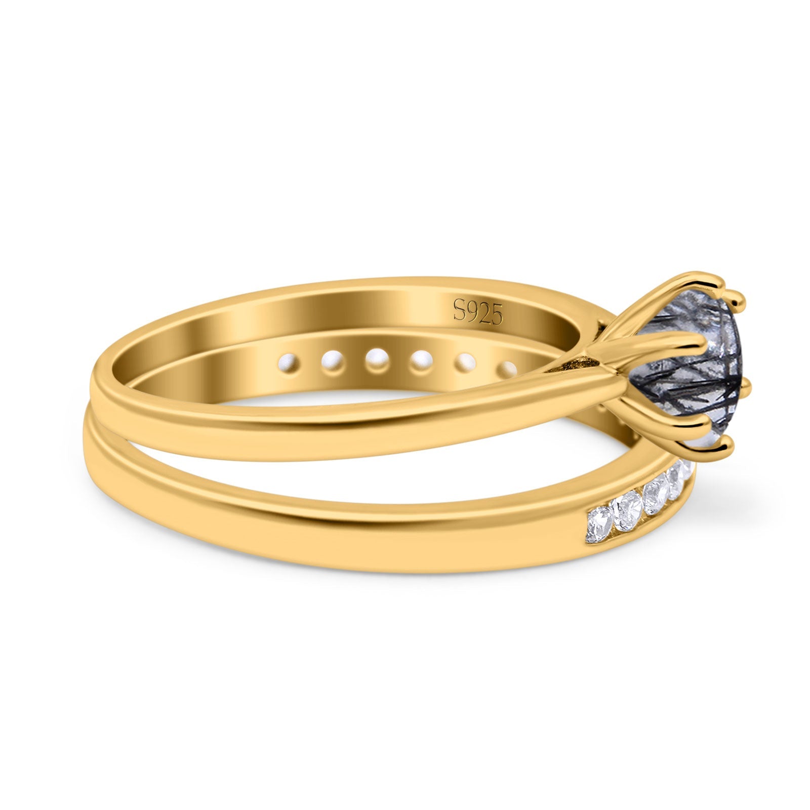 Two Piece Round Natural Rutilated Quartz Eternity Ring 925 Sterling Silver