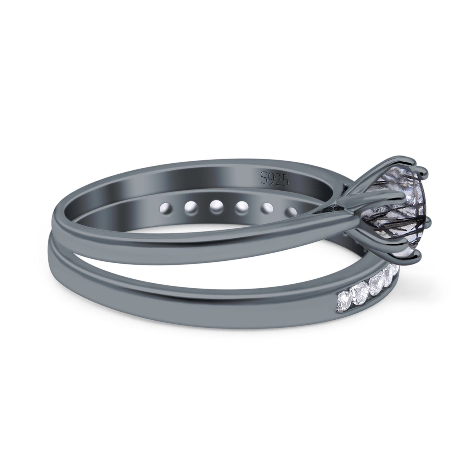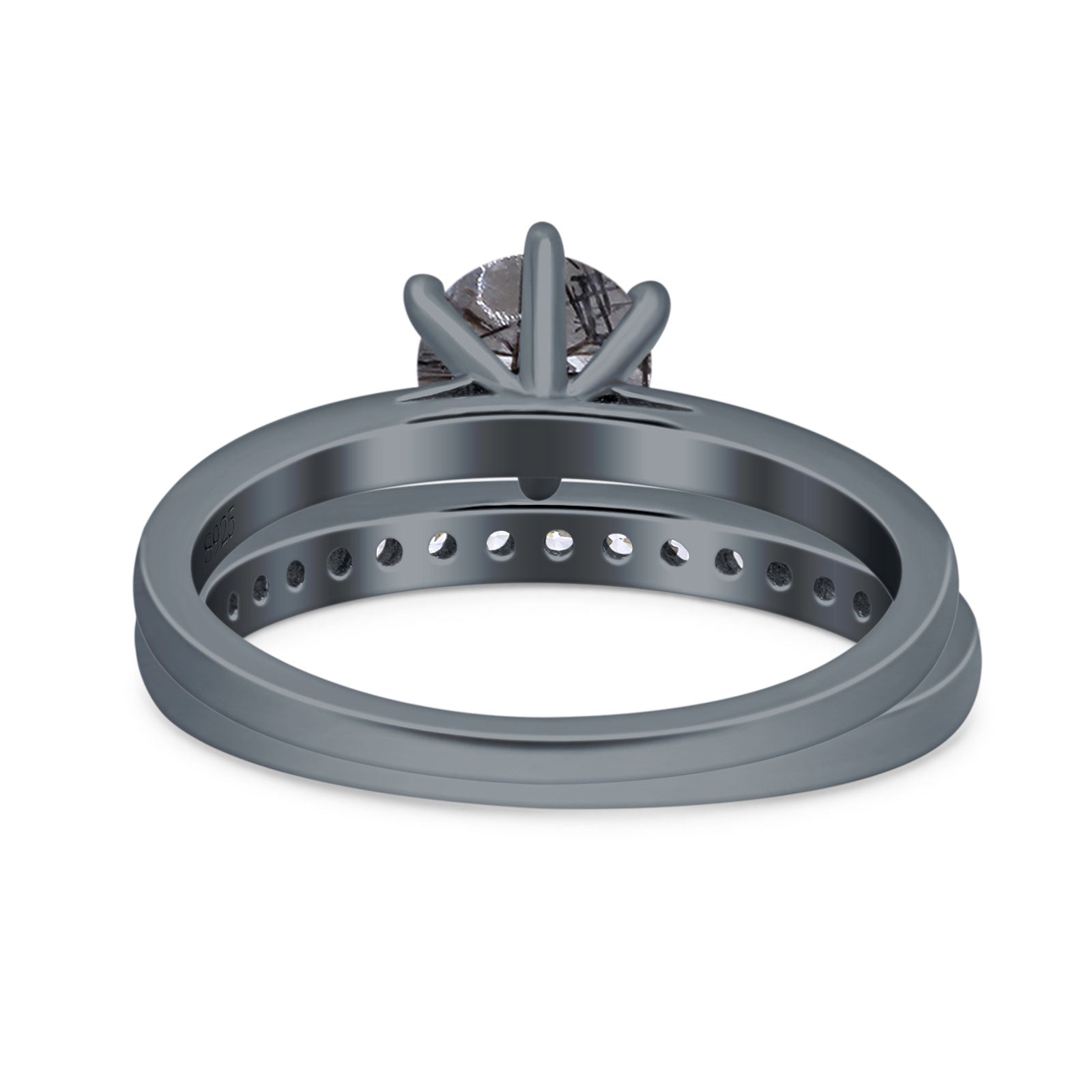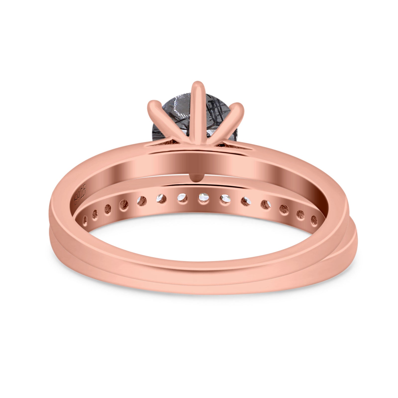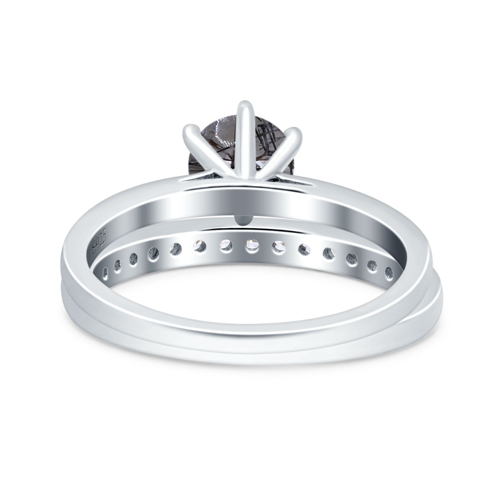 Two Piece Round Natural Rutilated Quartz Eternity Ring 925 Sterling Silver