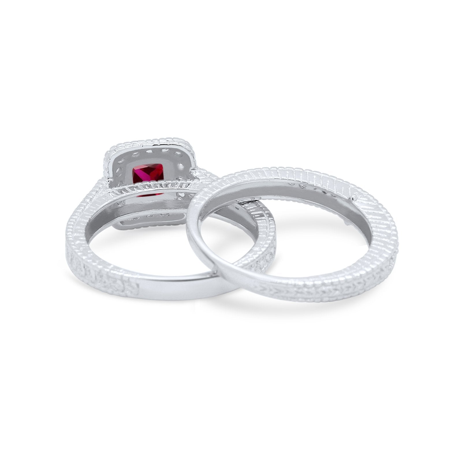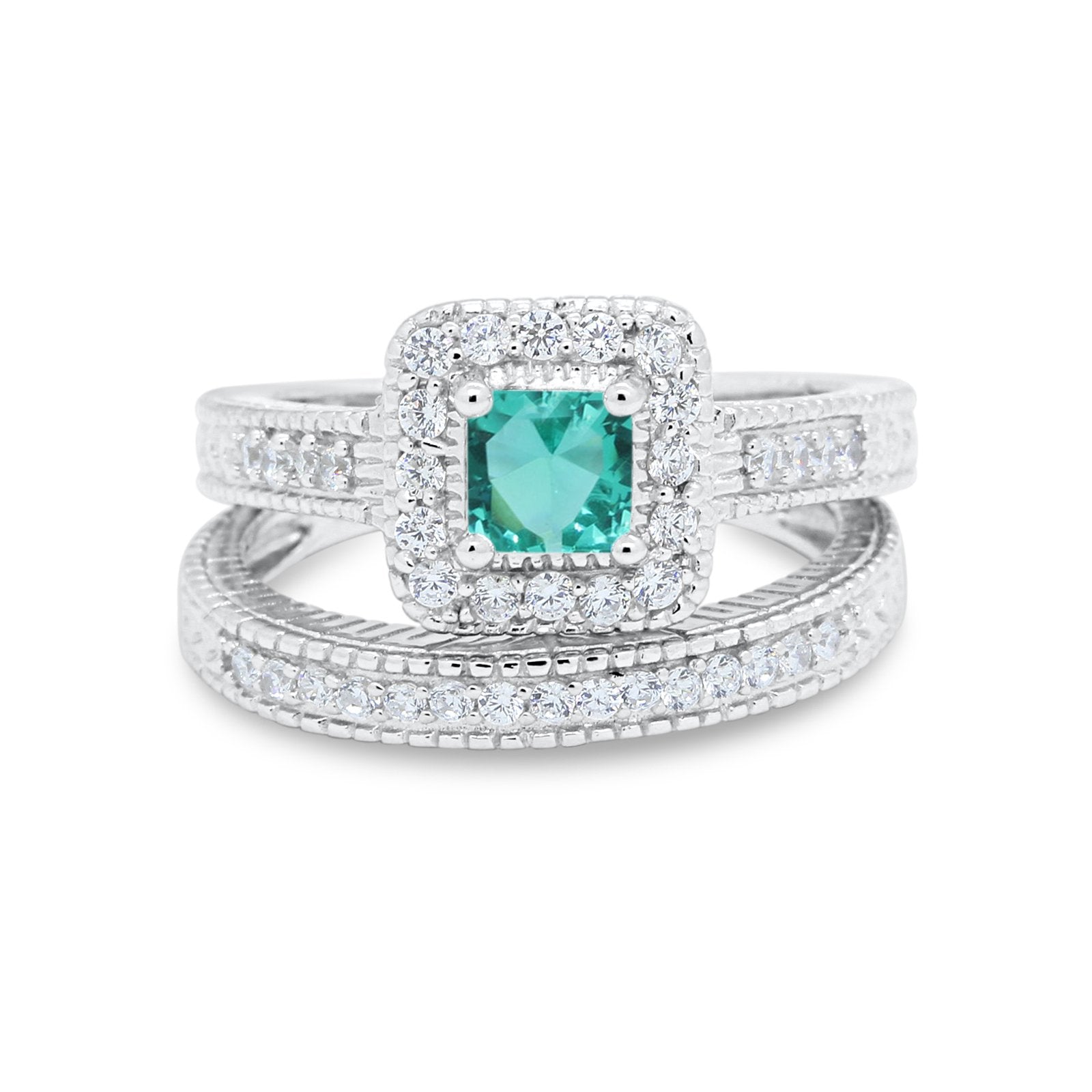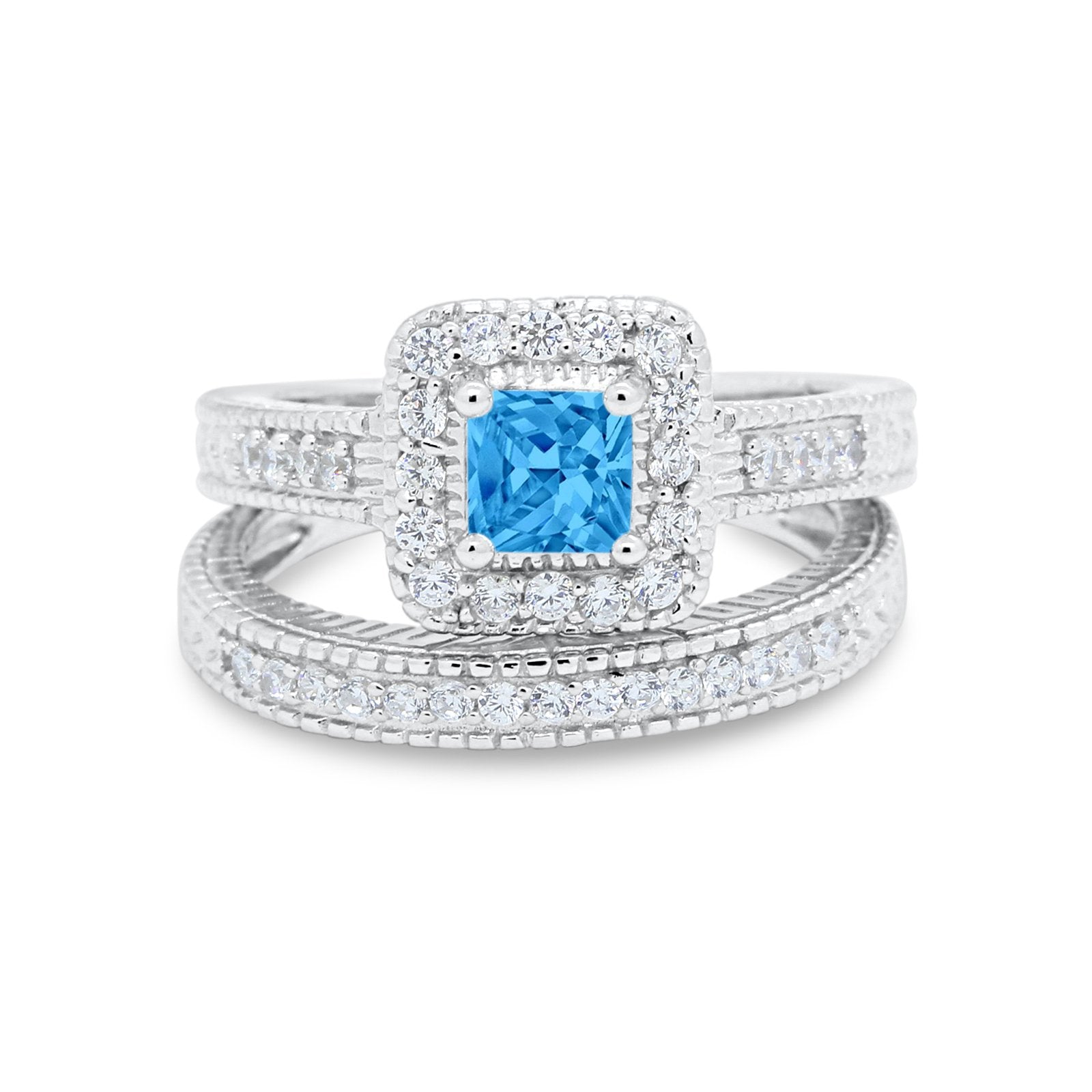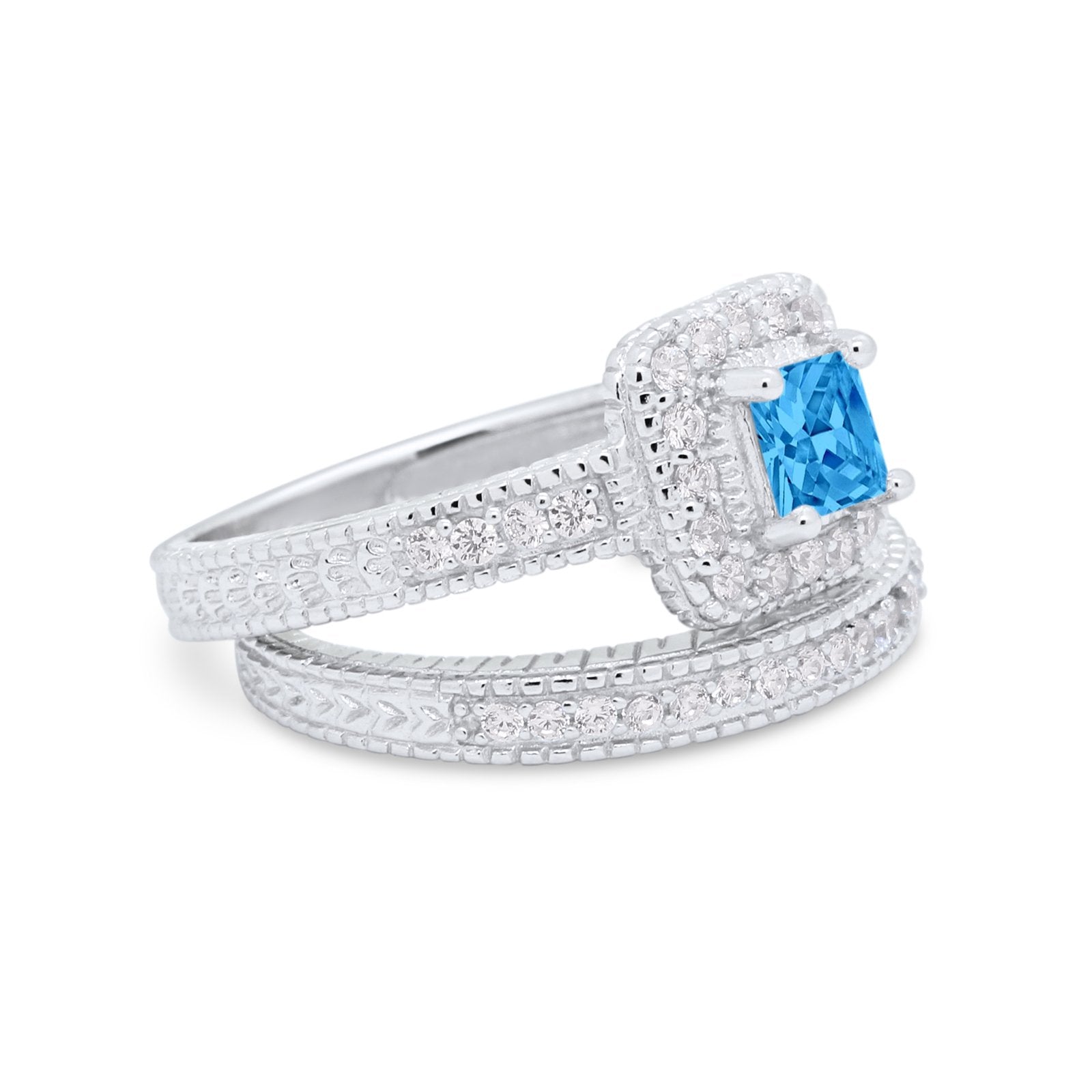 Two Piece Vintage Style Wedding Ring 925 Sterling Silver Simulated Cubic Zirconia