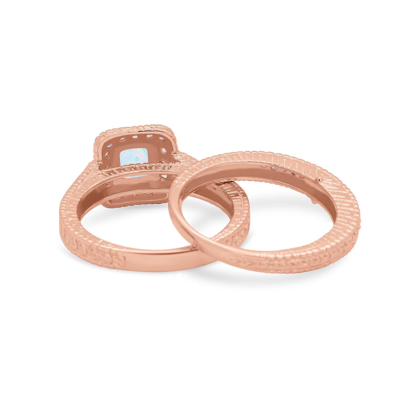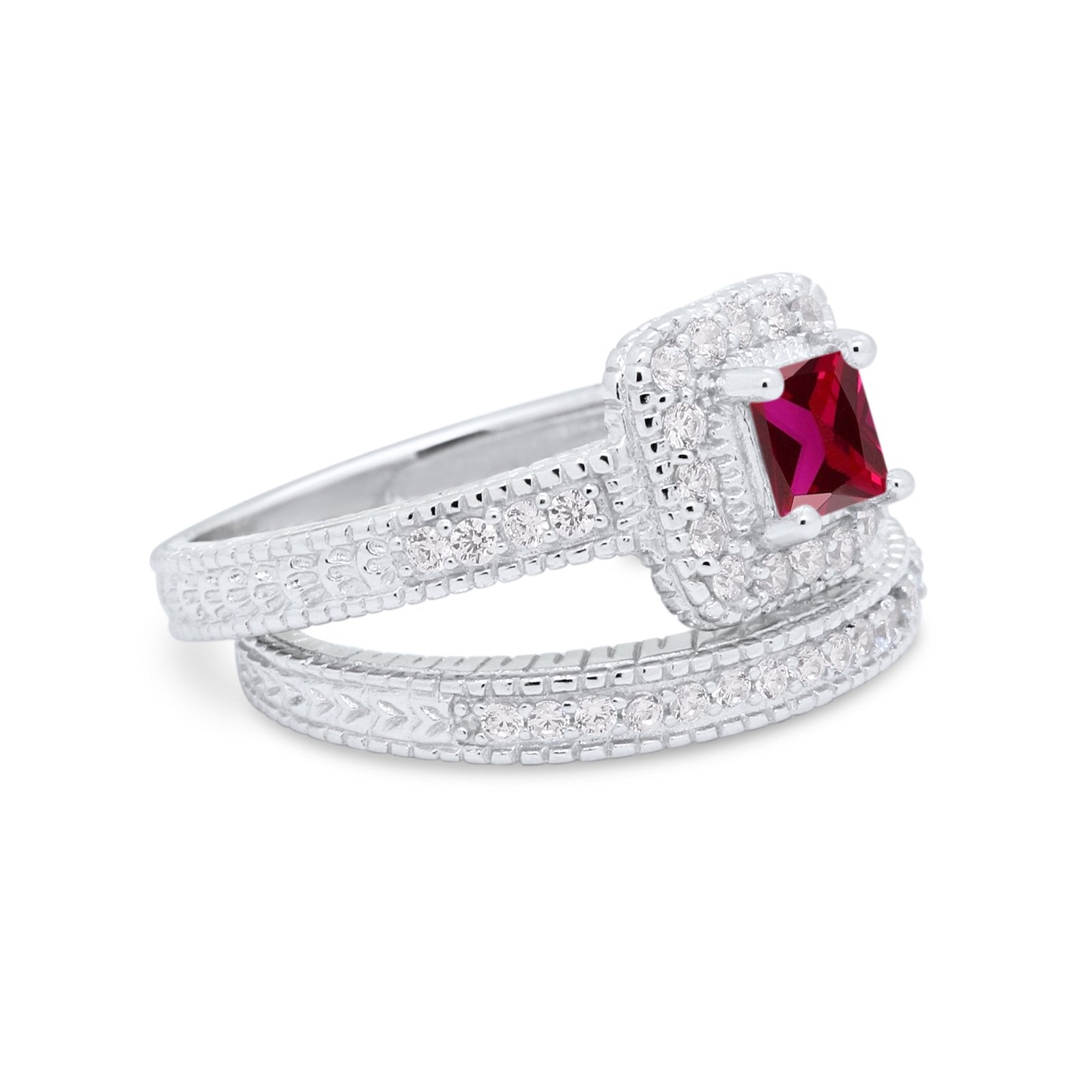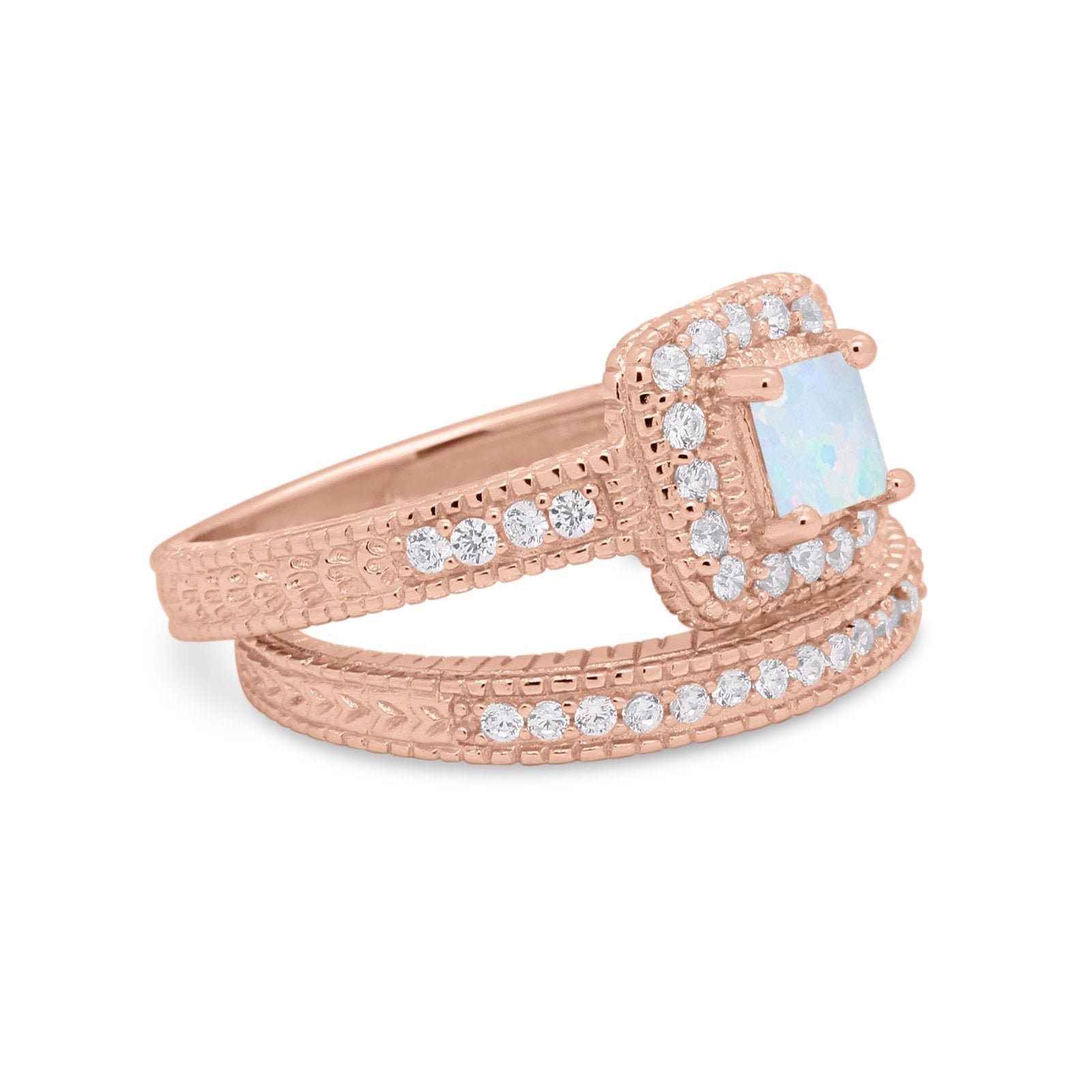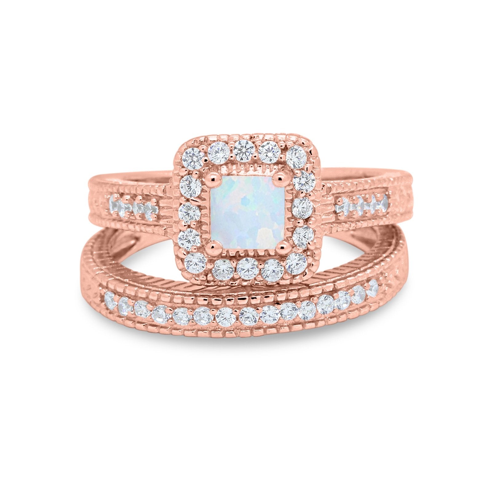 Two Piece Vintage Style Wedding Ring 925 Sterling Silver Simulated Cubic Zirconia