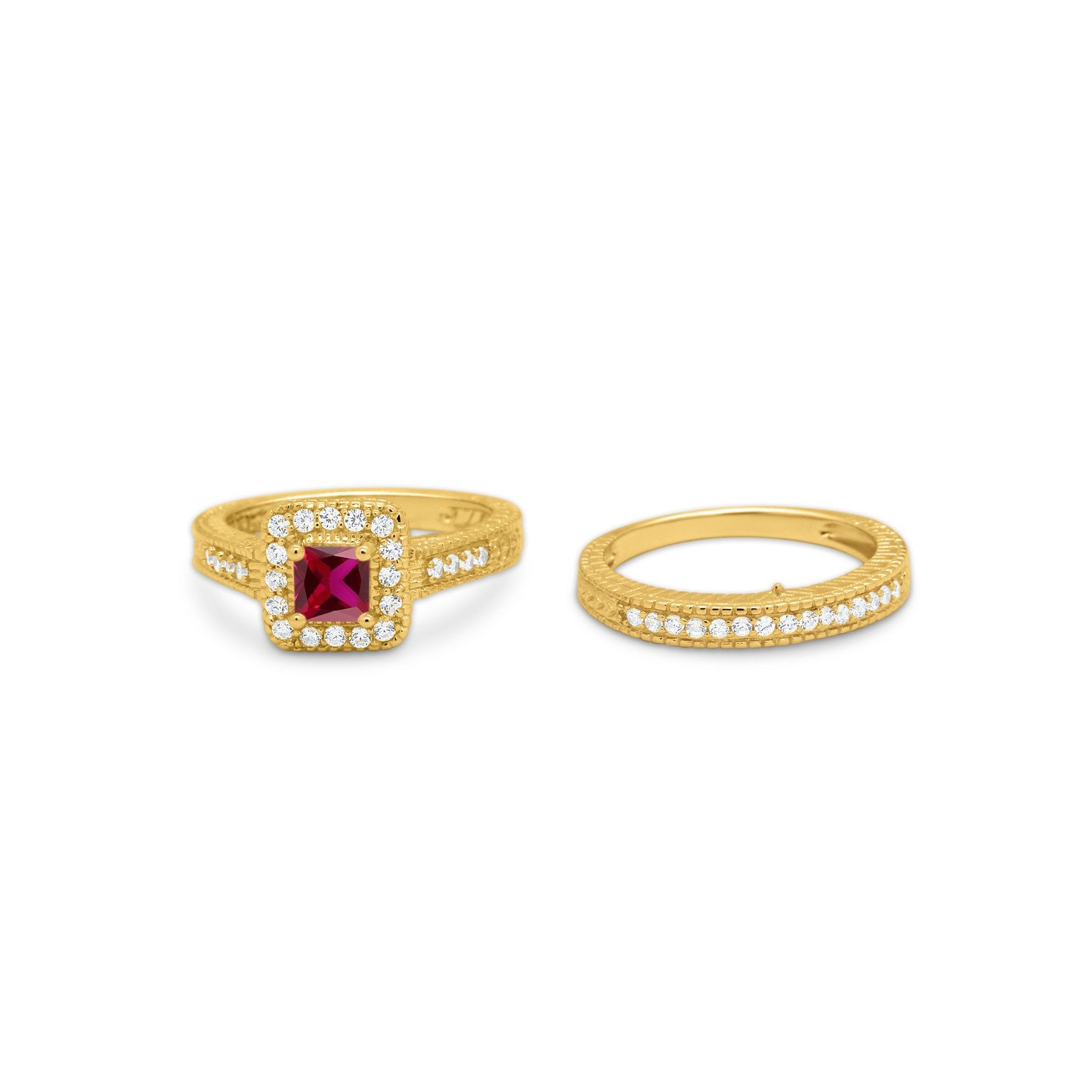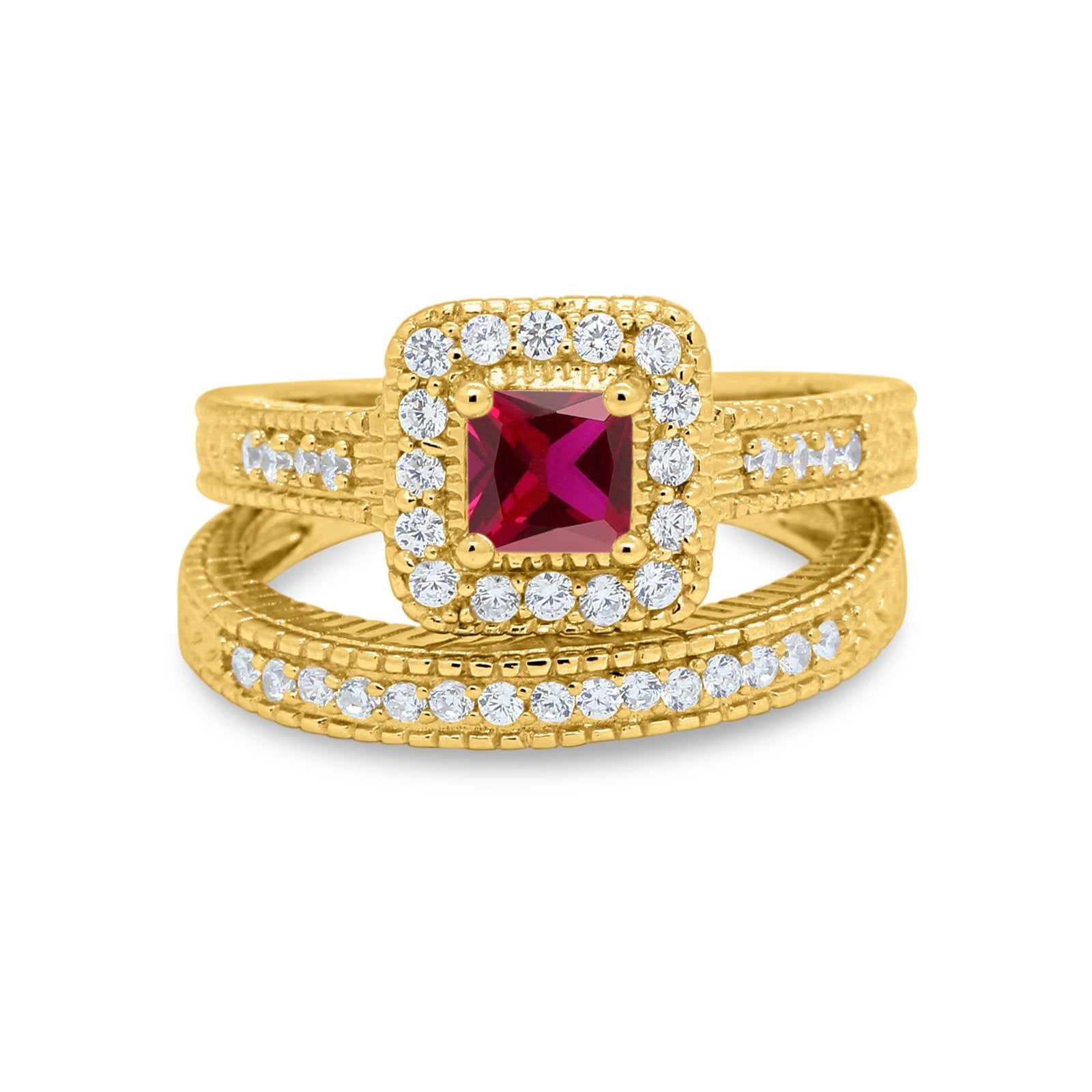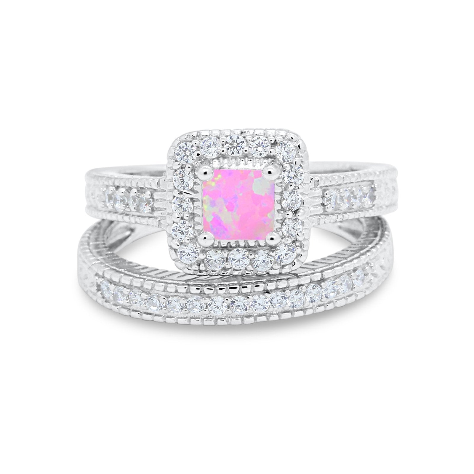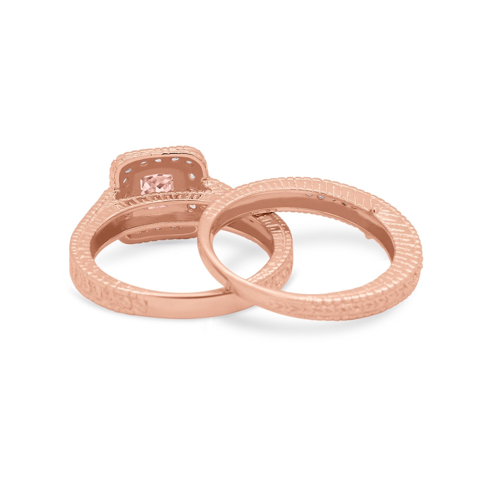 Two Piece Vintage Style Wedding Ring 925 Sterling Silver Simulated Cubic Zirconia