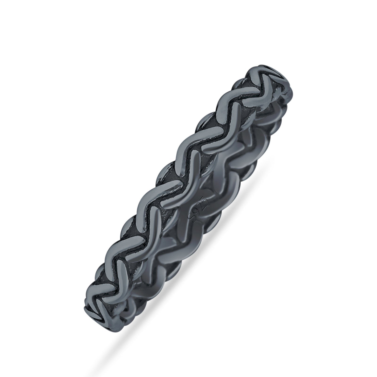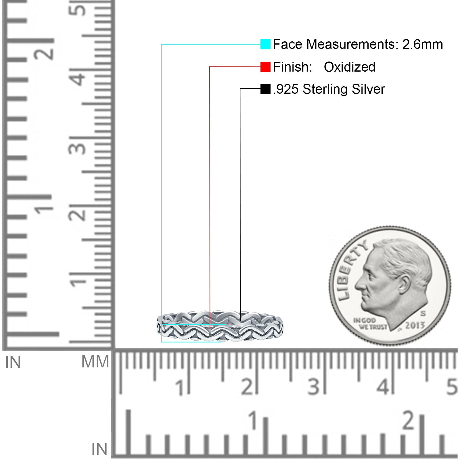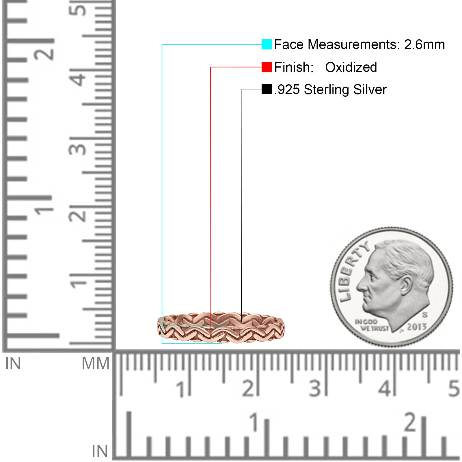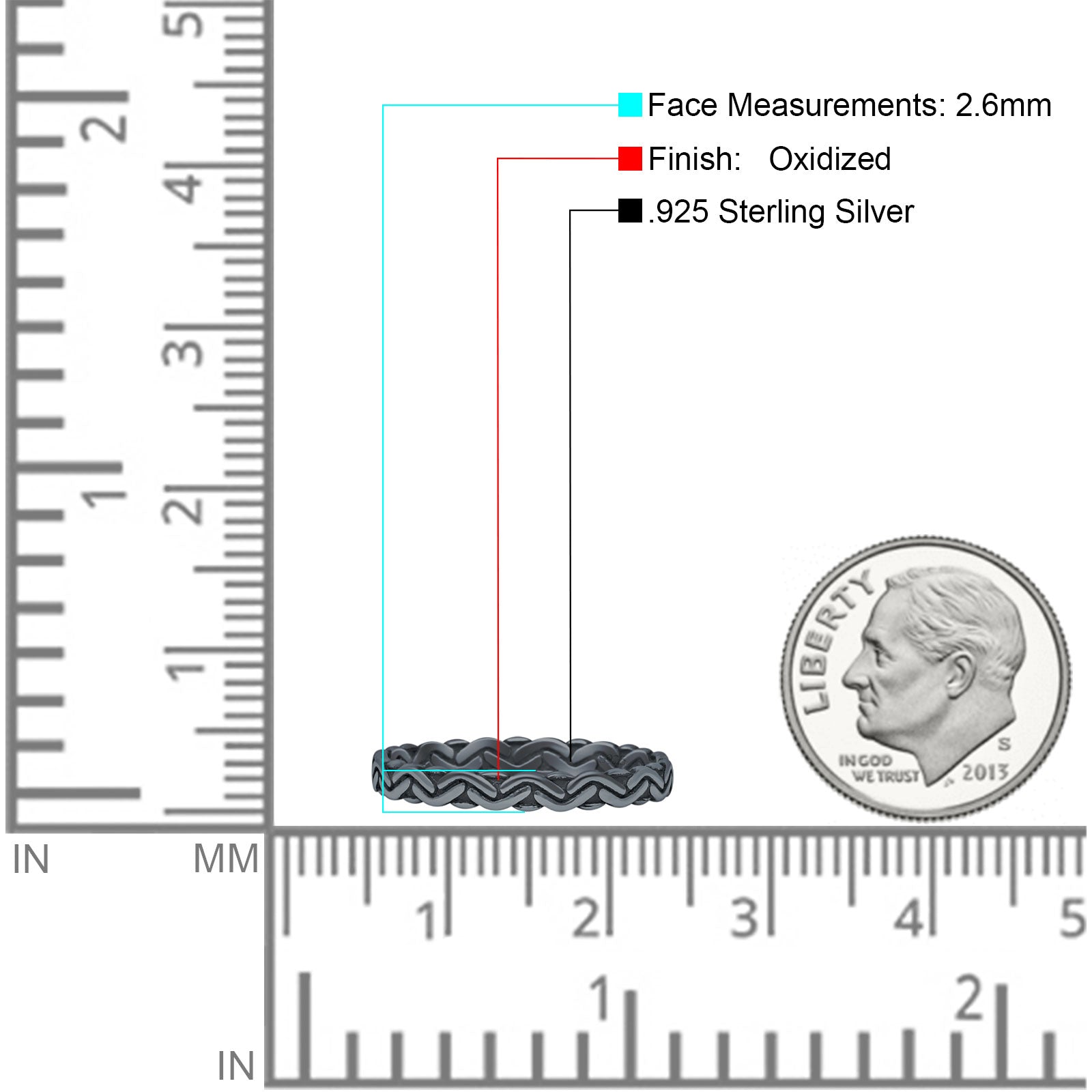 Vintage Style 2.6mm Ocean Wave Thin Band Oxidized Filigree 925 Sterling Silver