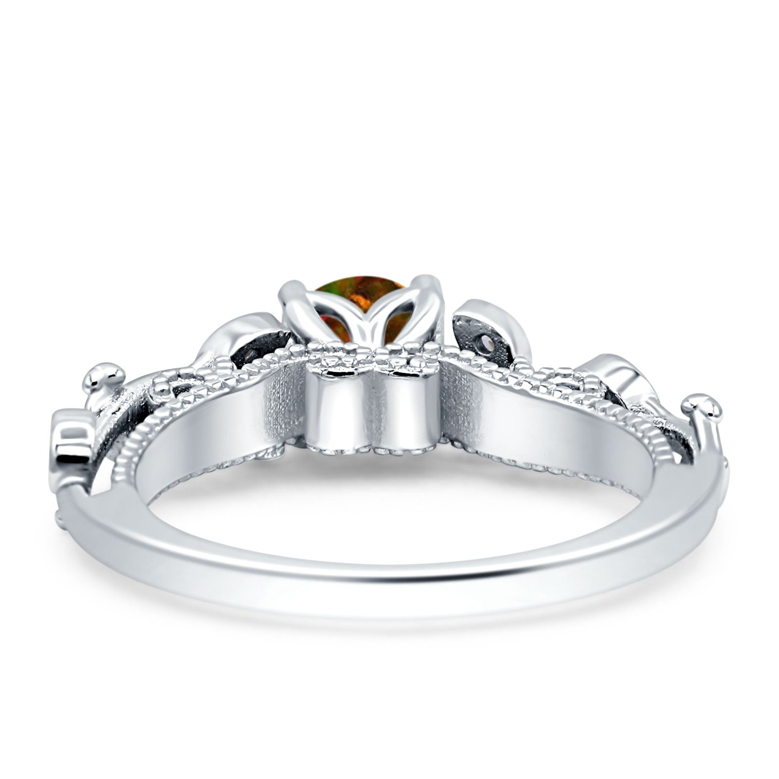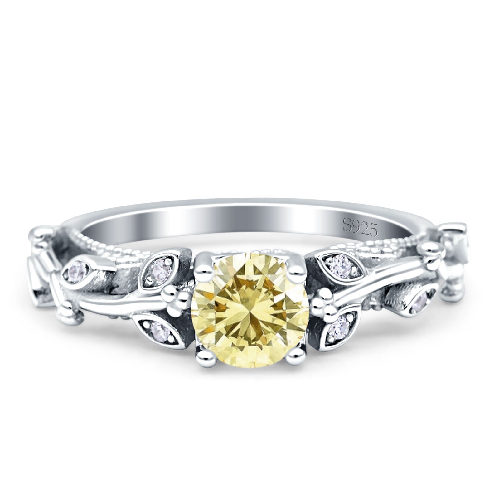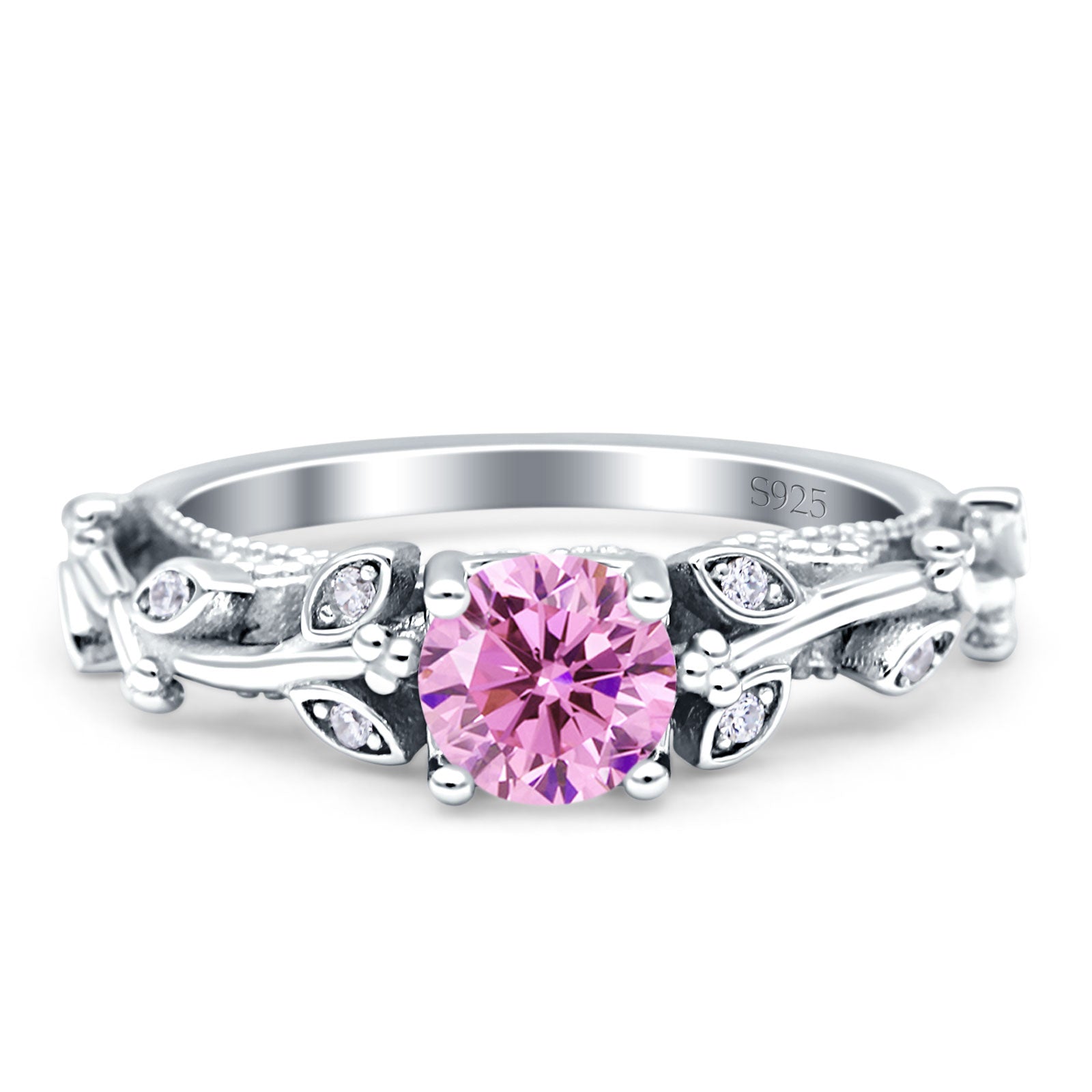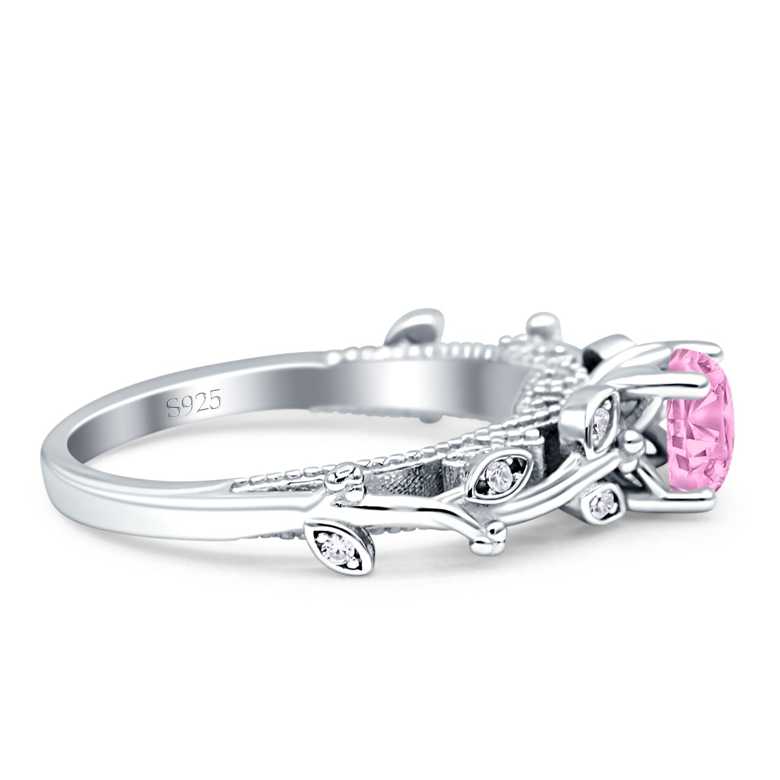 Vintage Style Floral Round Engagement Ring Cubic Zirconia 925 Sterling Silver