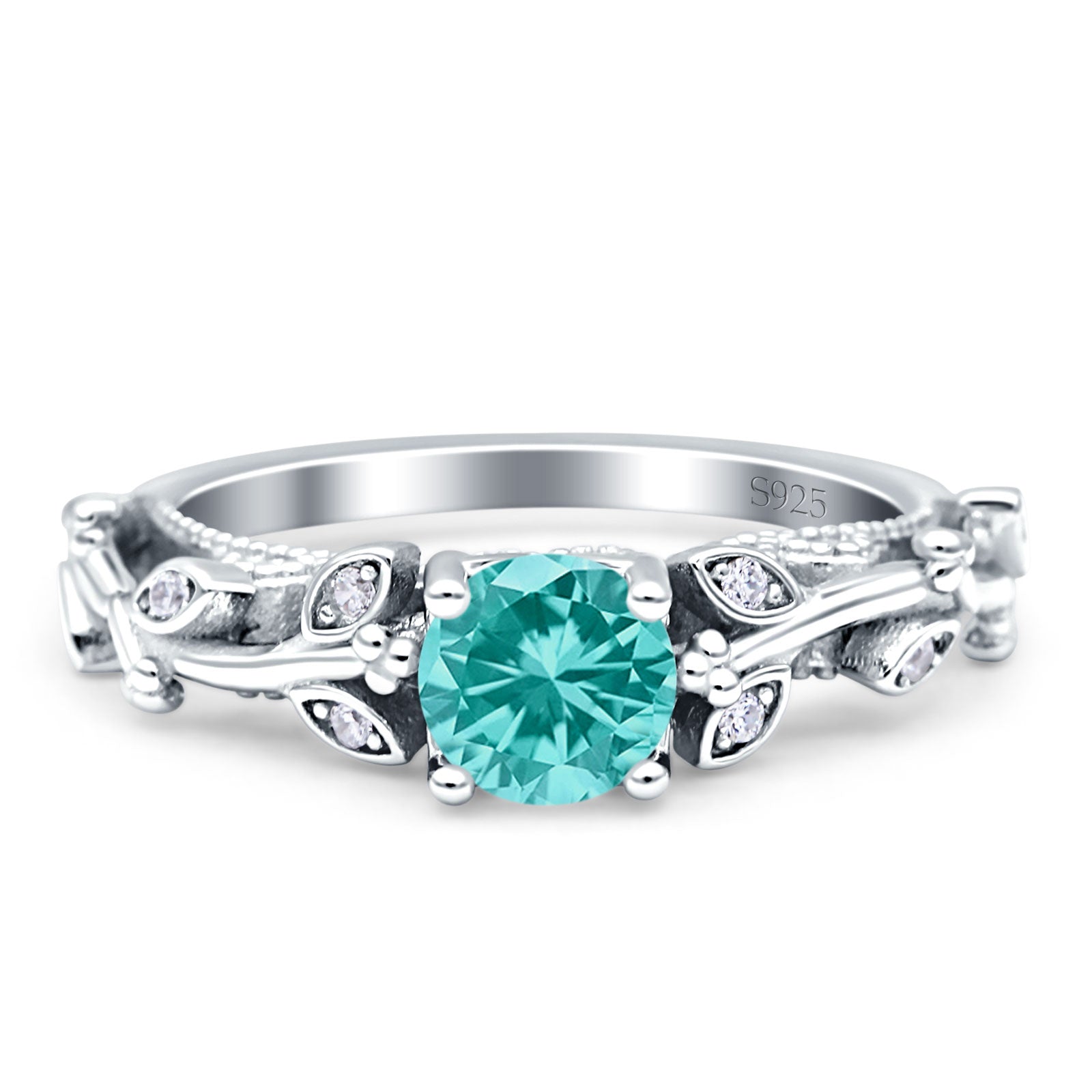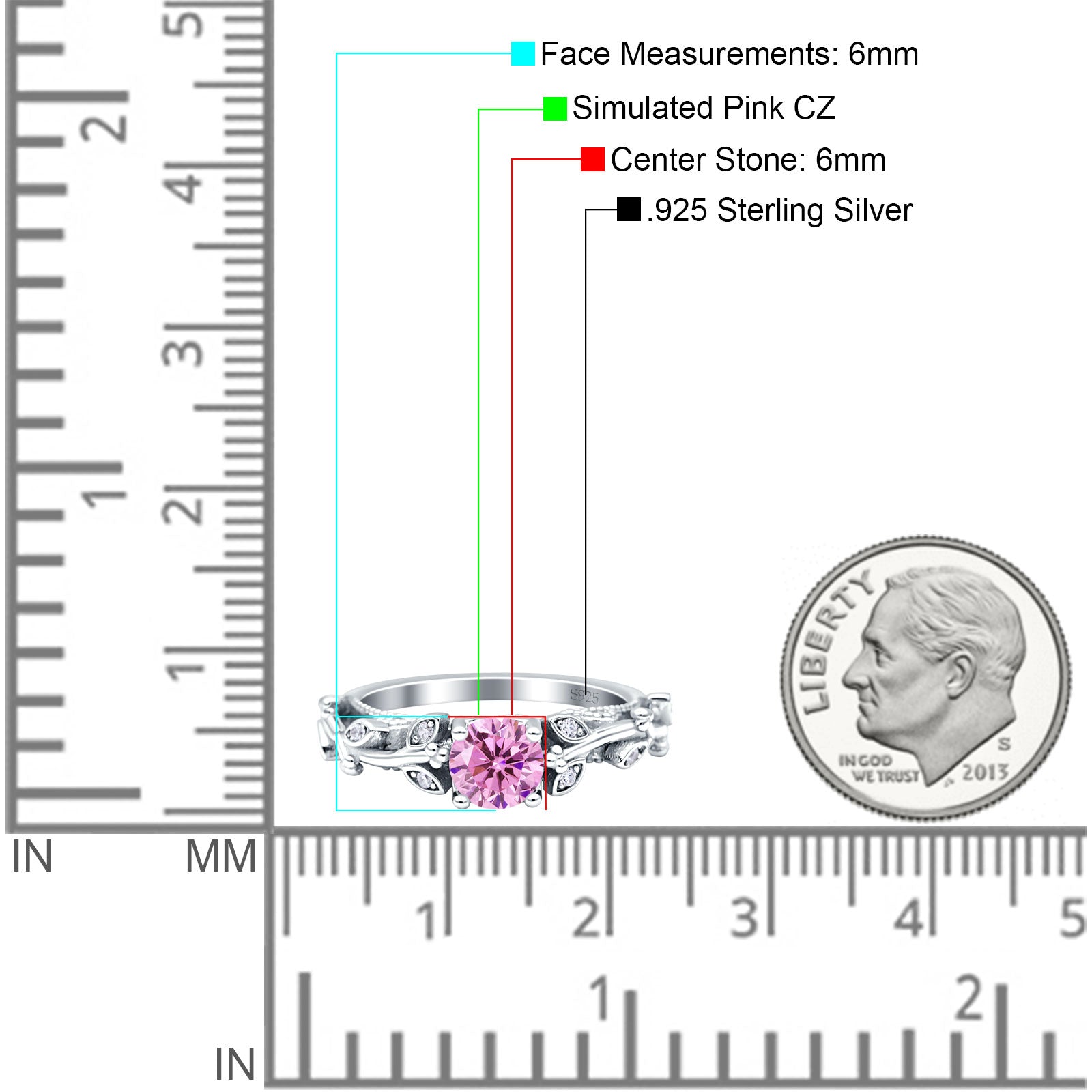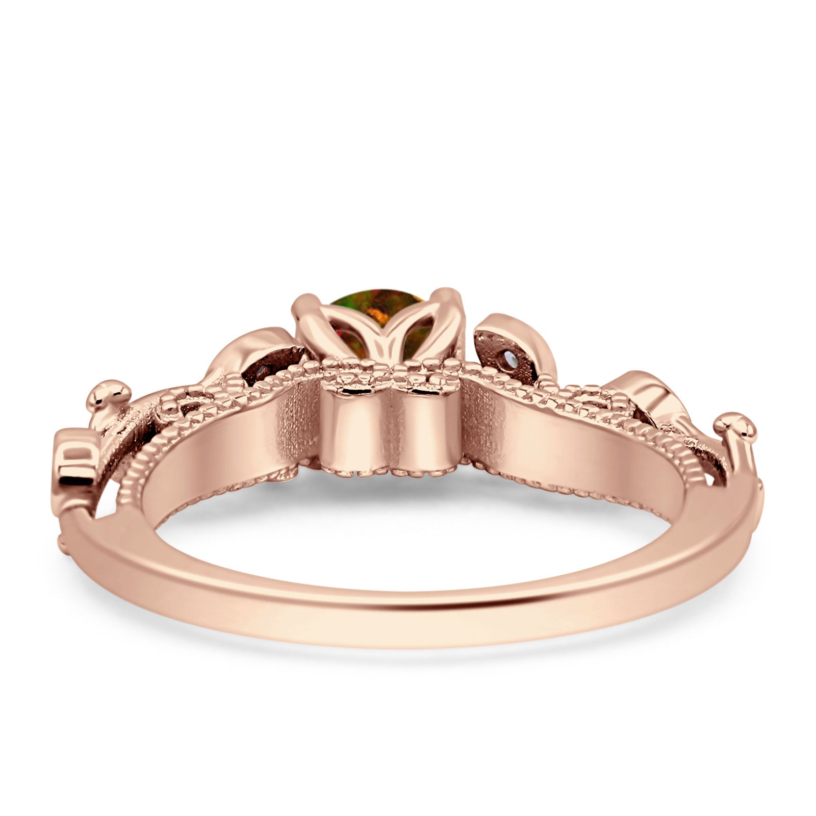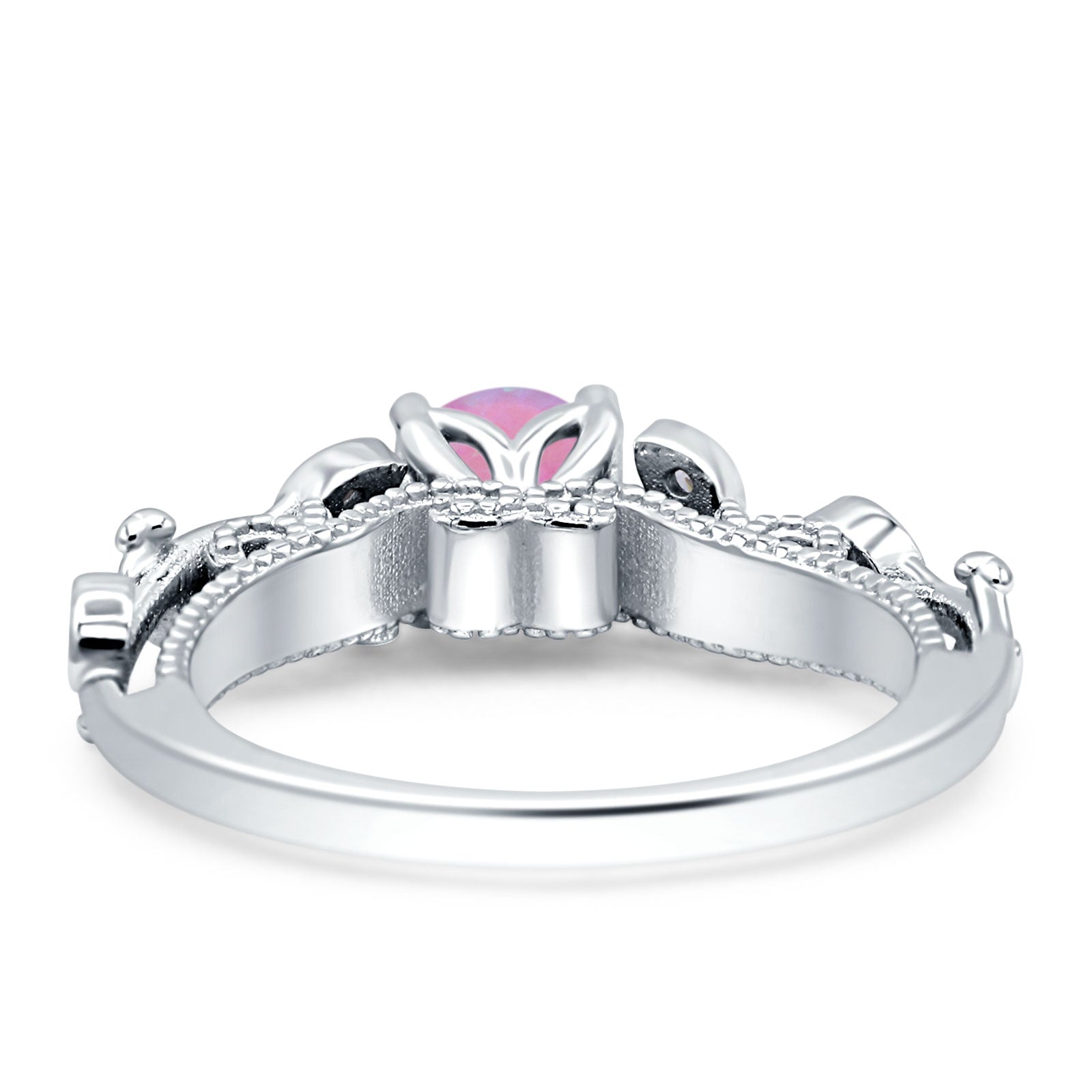 Vintage Style Floral Round Engagement Ring Cubic Zirconia 925 Sterling Silver