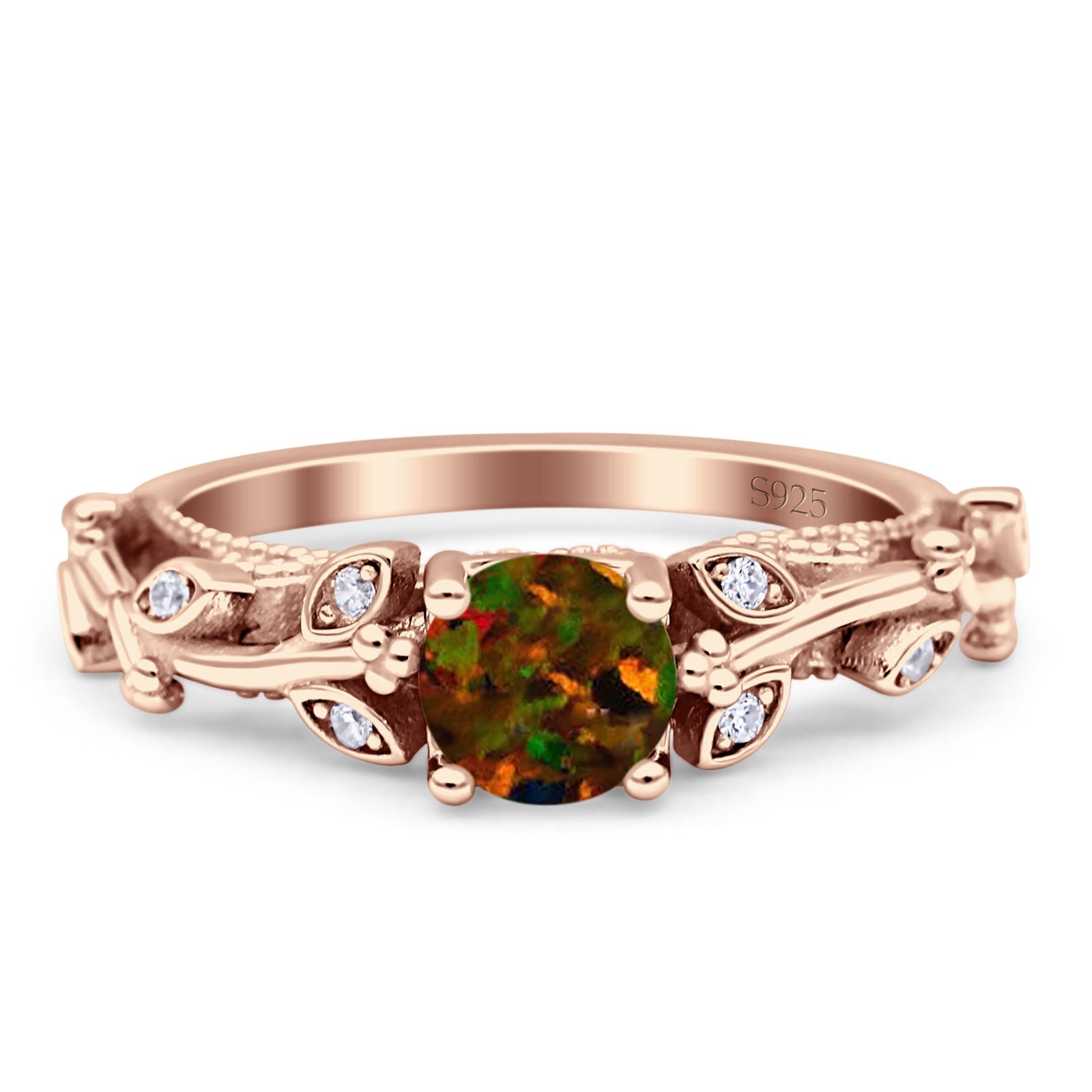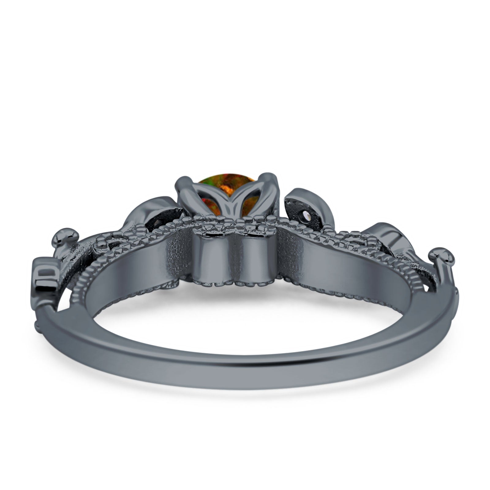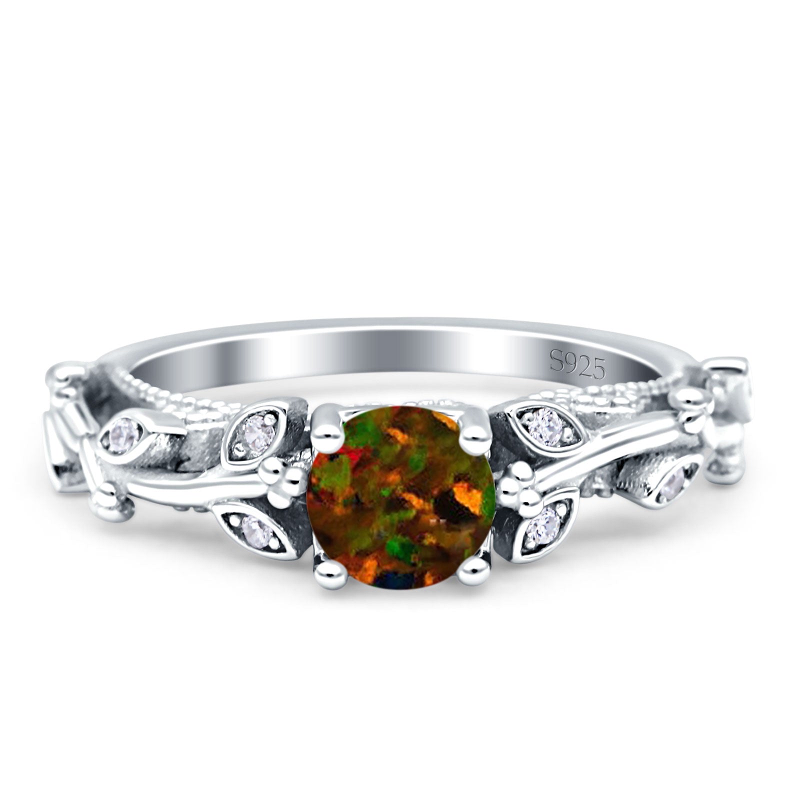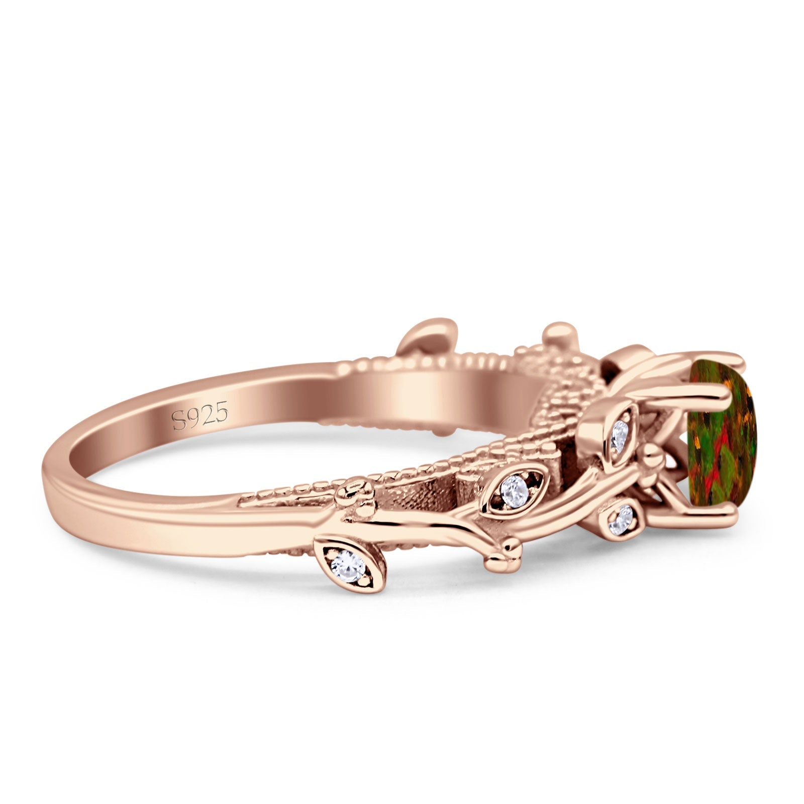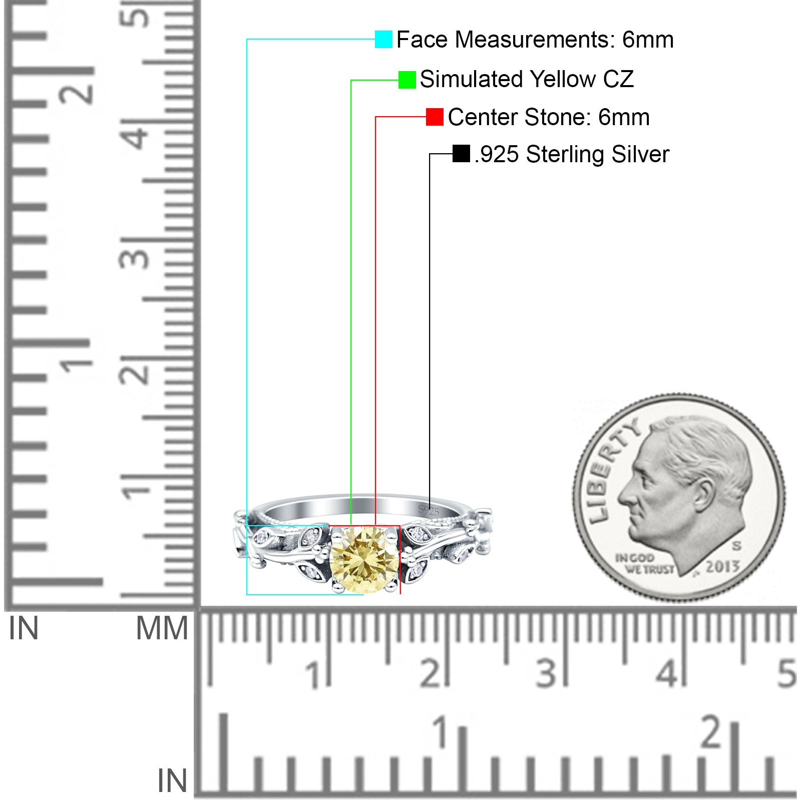 Vintage Style Floral Round Engagement Ring Cubic Zirconia 925 Sterling Silver