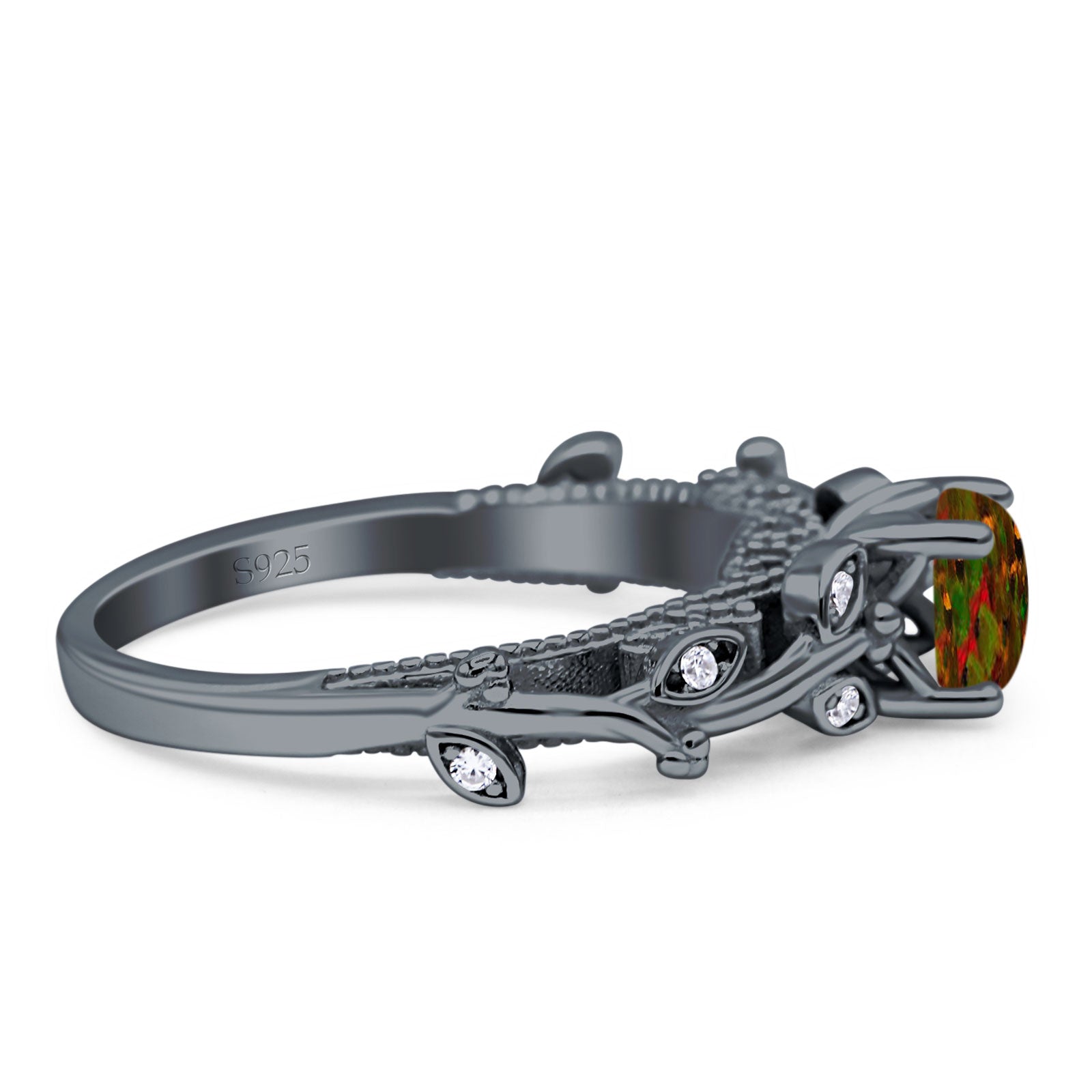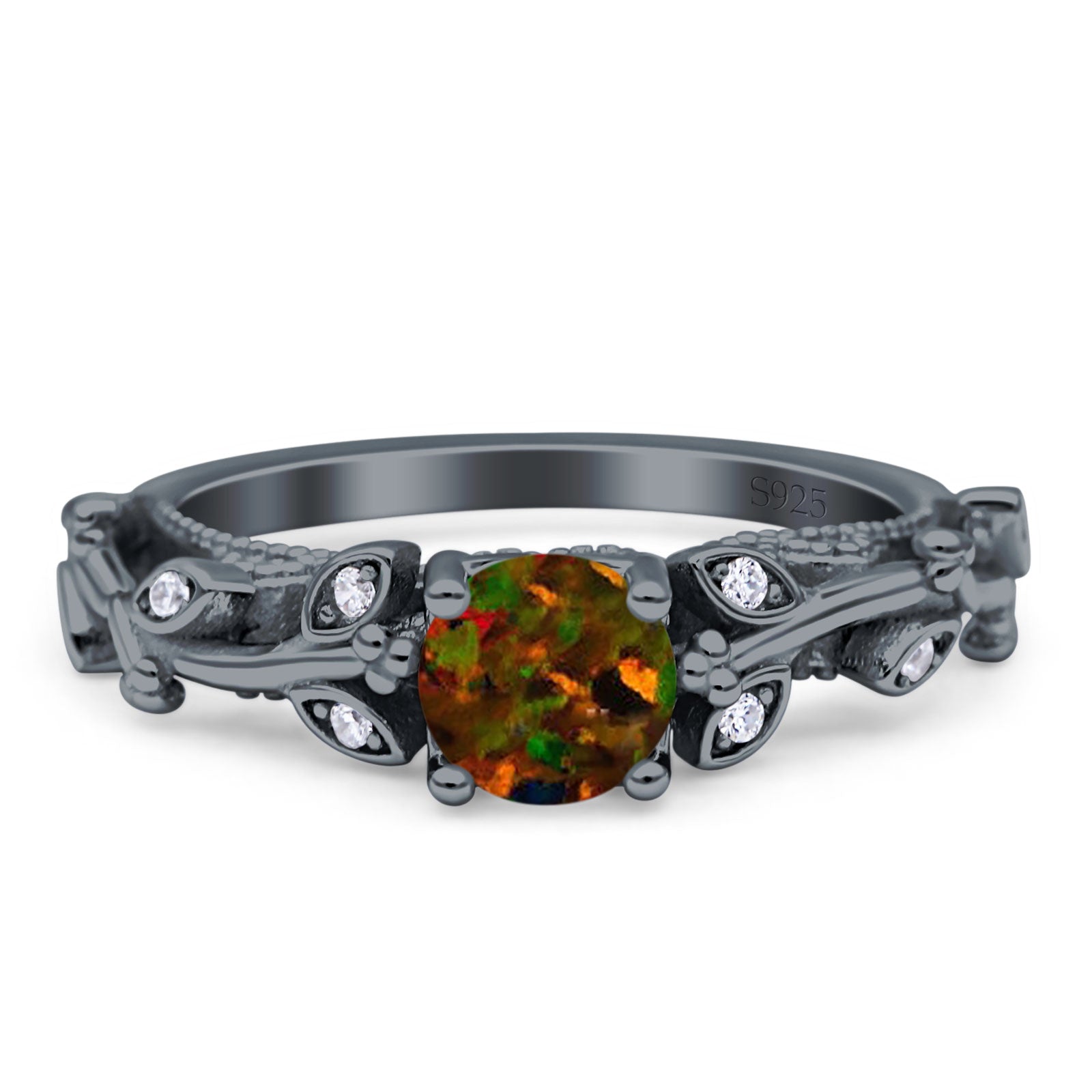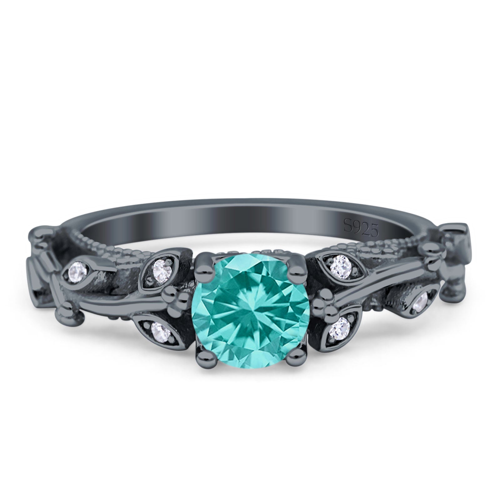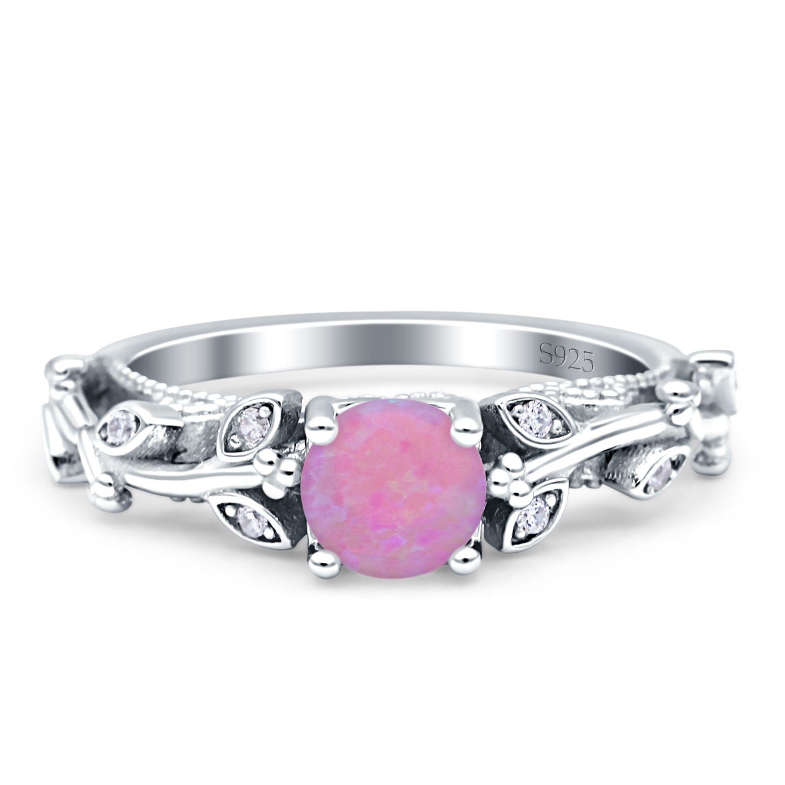 Vintage Style Floral Round Engagement Ring Cubic Zirconia 925 Sterling Silver
