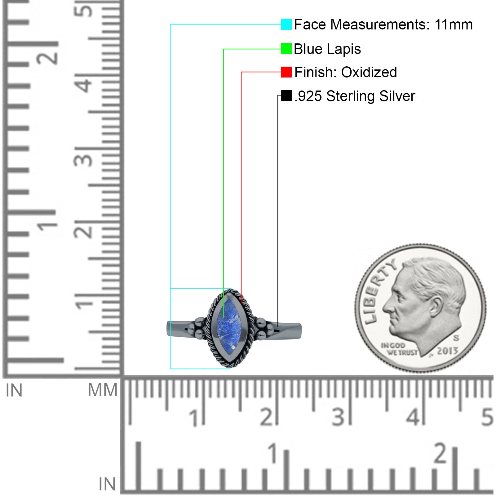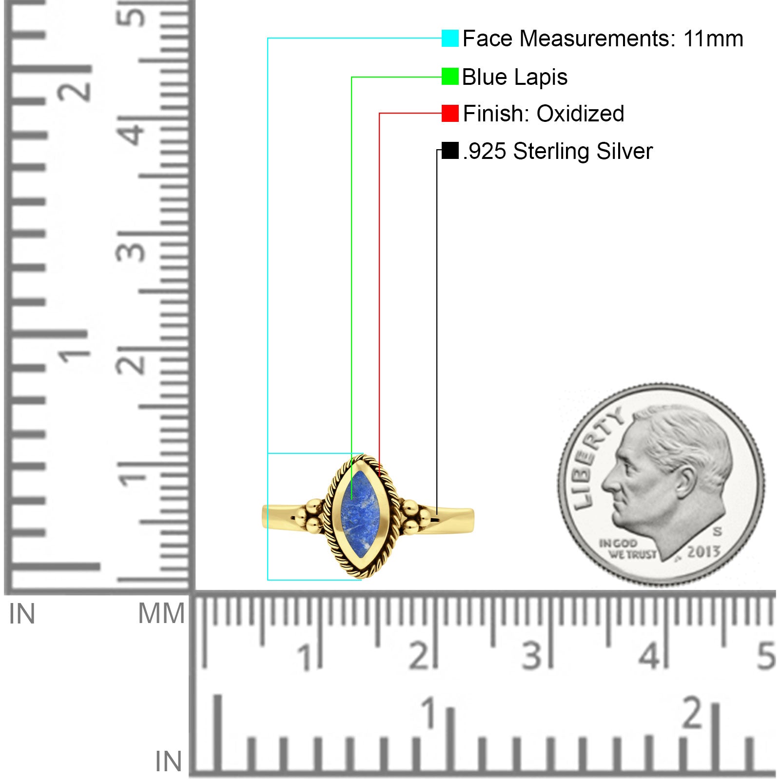 Metal Purity: 92.5% Sterling.