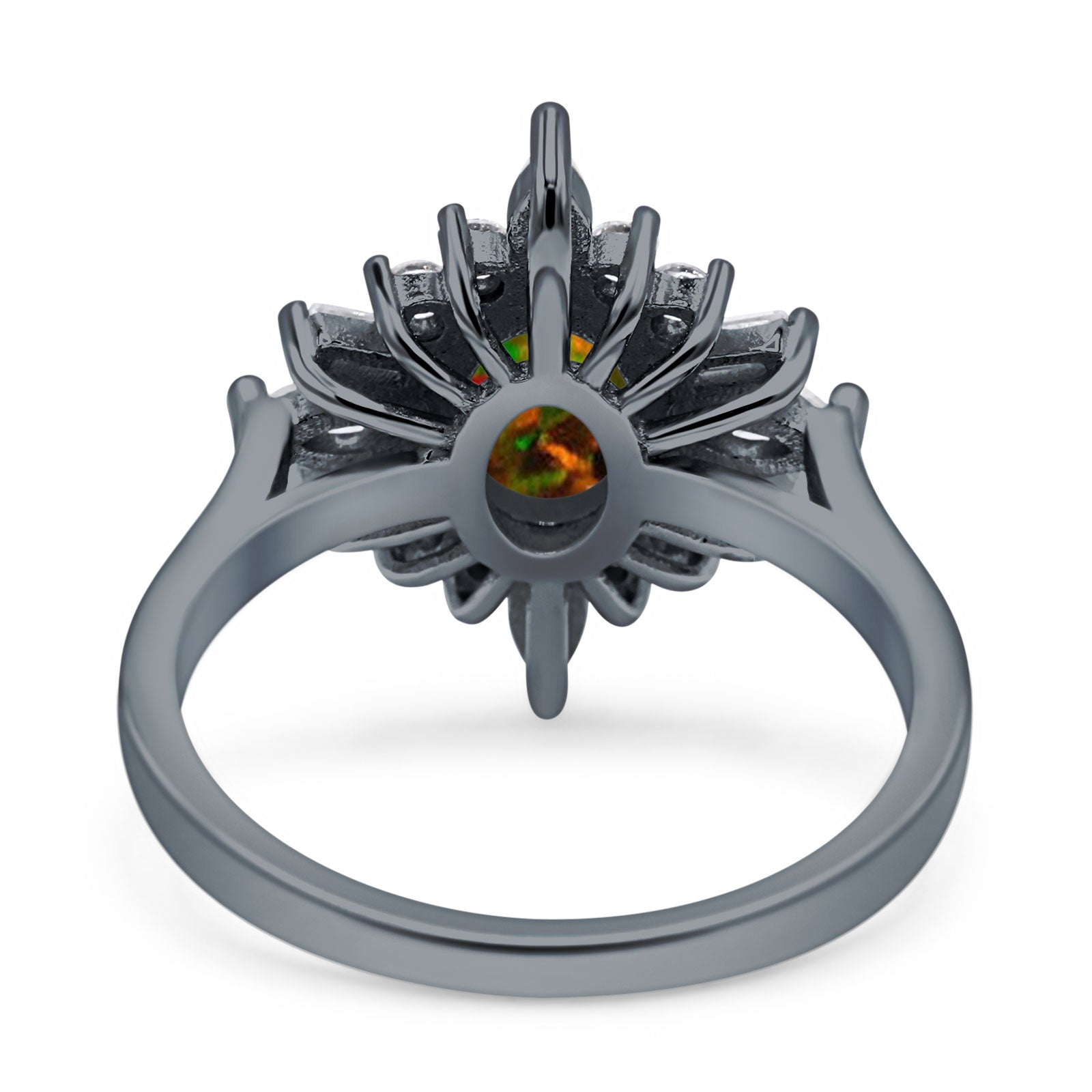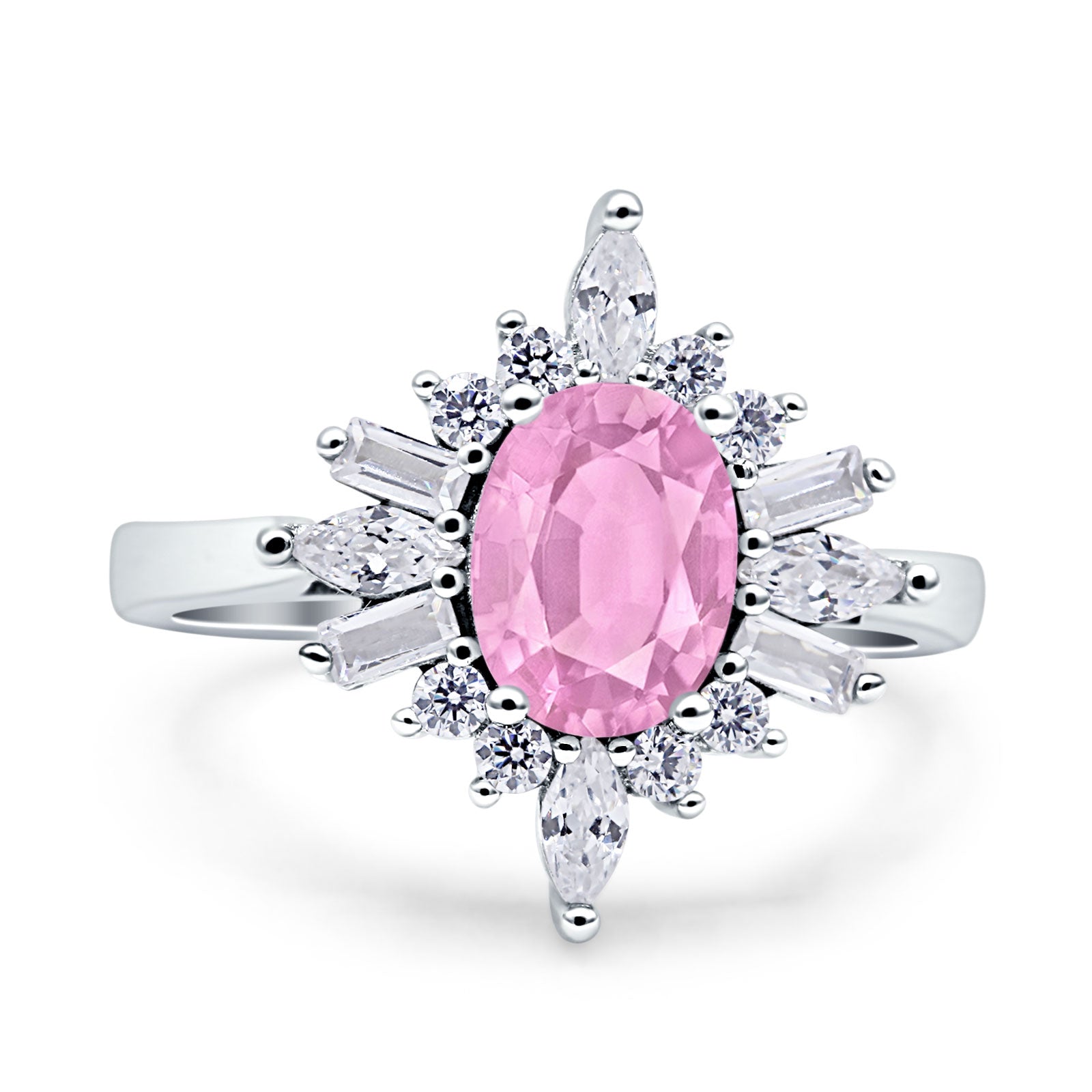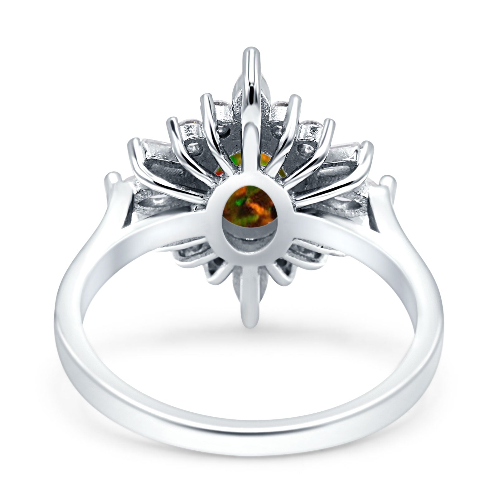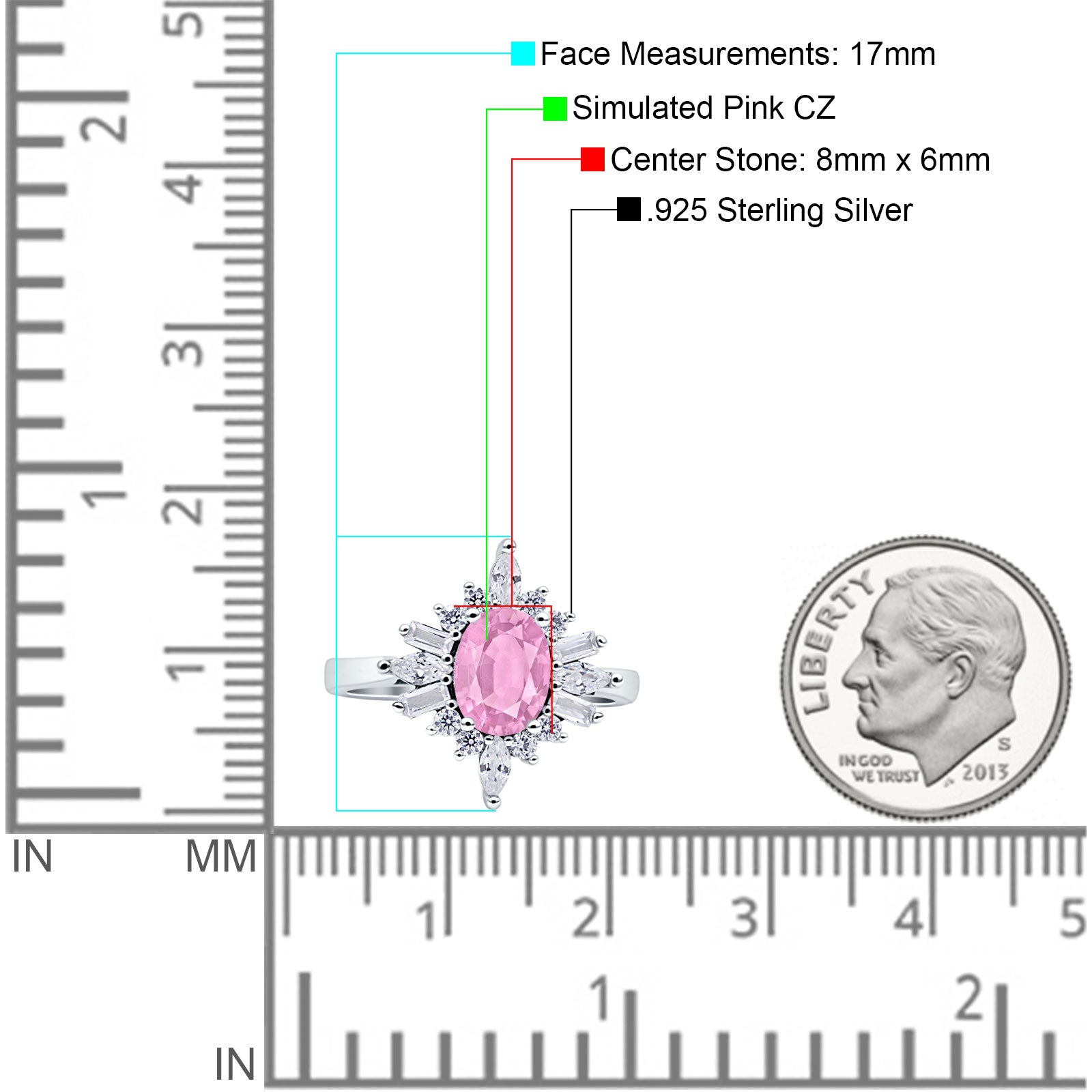 Vintage Style Oval Engagement Ring Simulated Cubic Zirconia 925 Sterling Silver