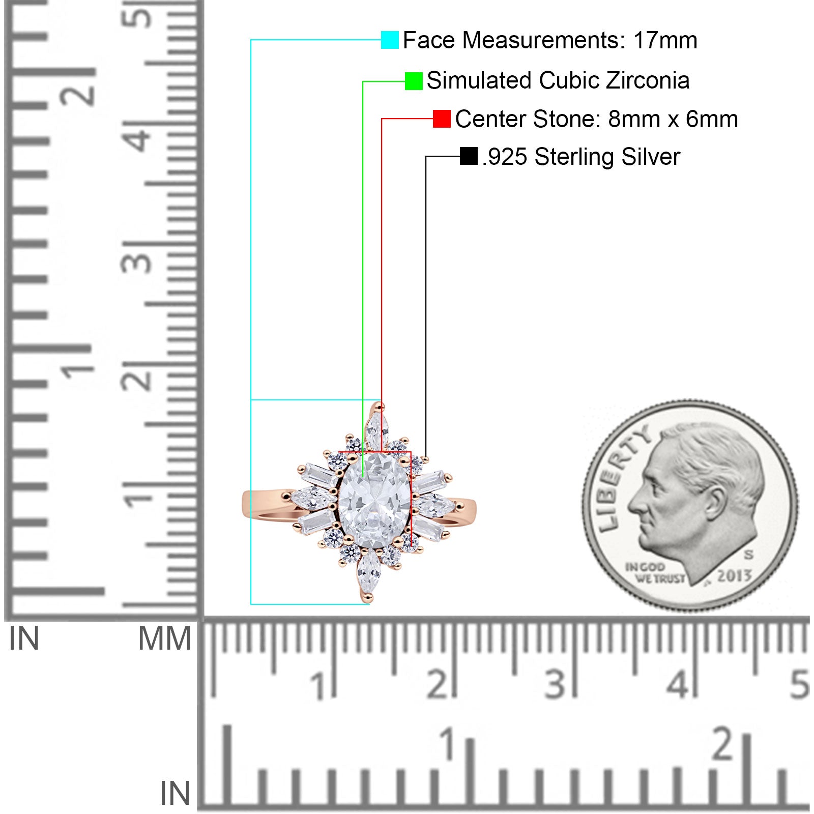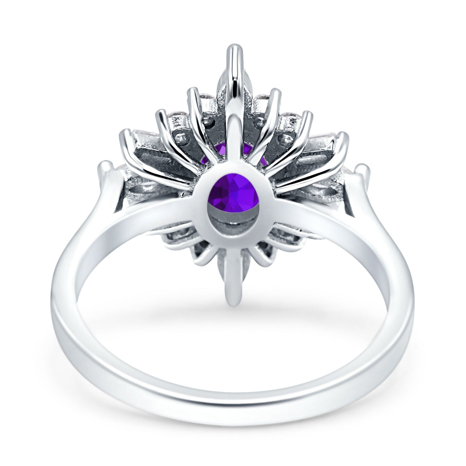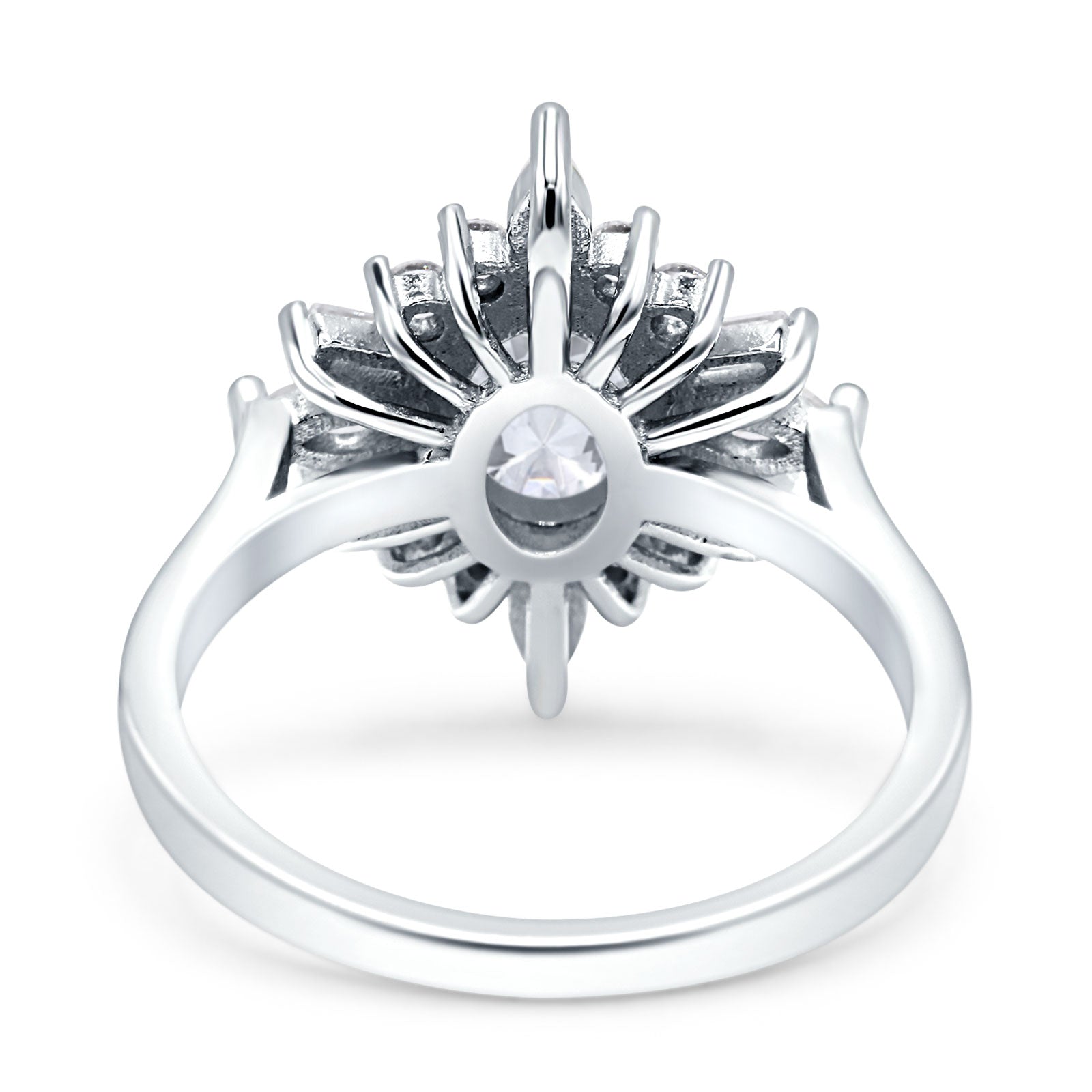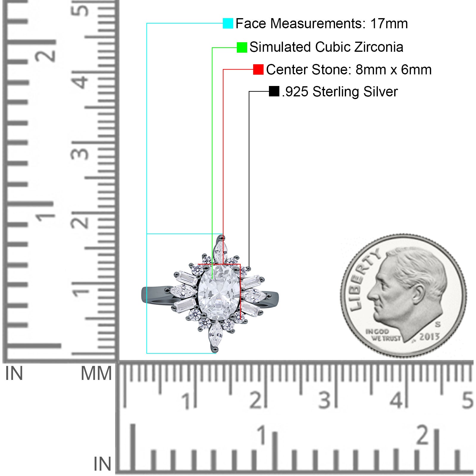 Vintage Style Oval Engagement Ring Simulated Cubic Zirconia 925 Sterling Silver