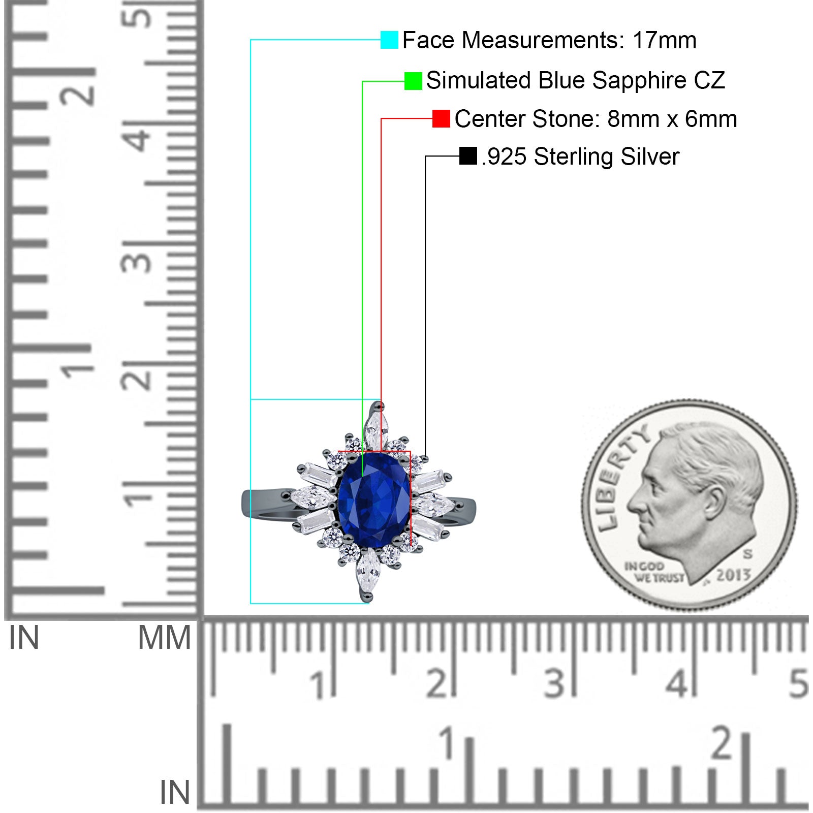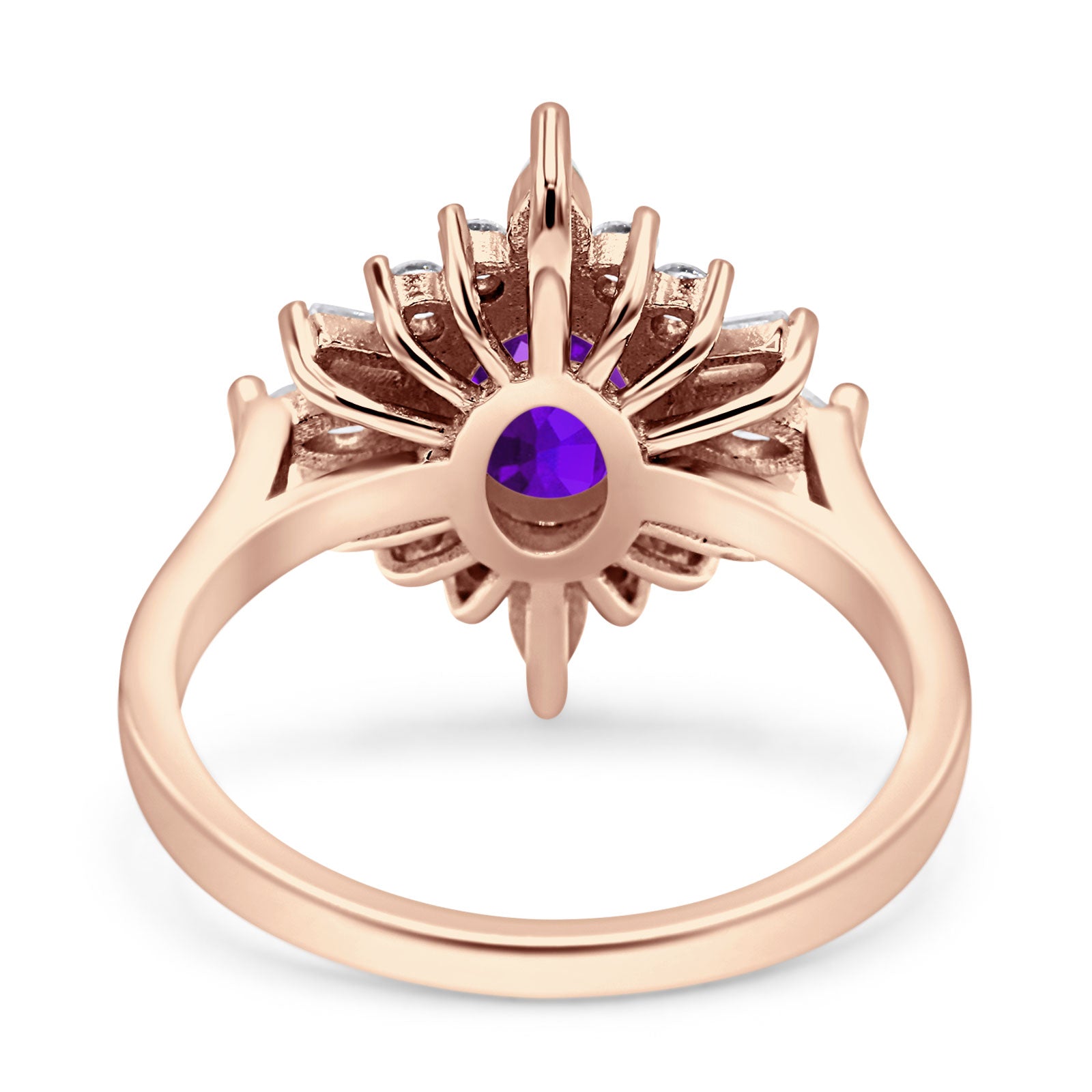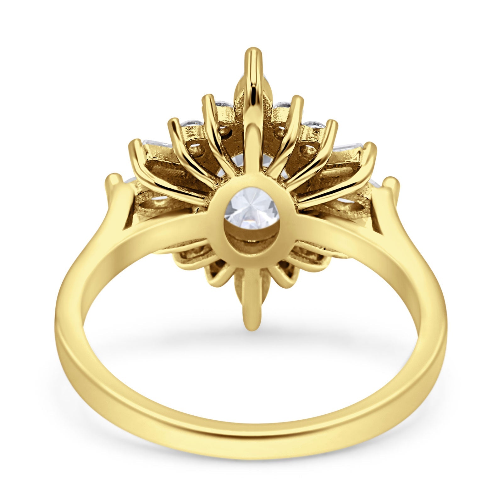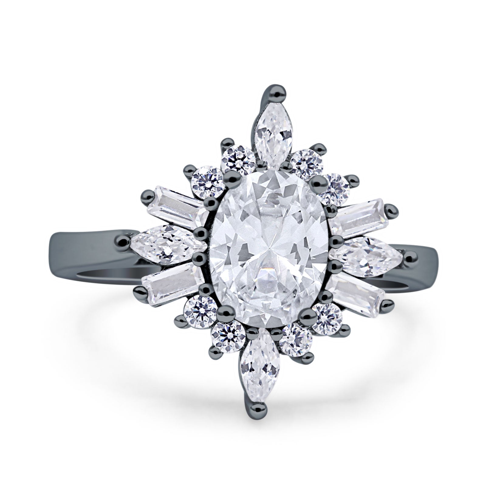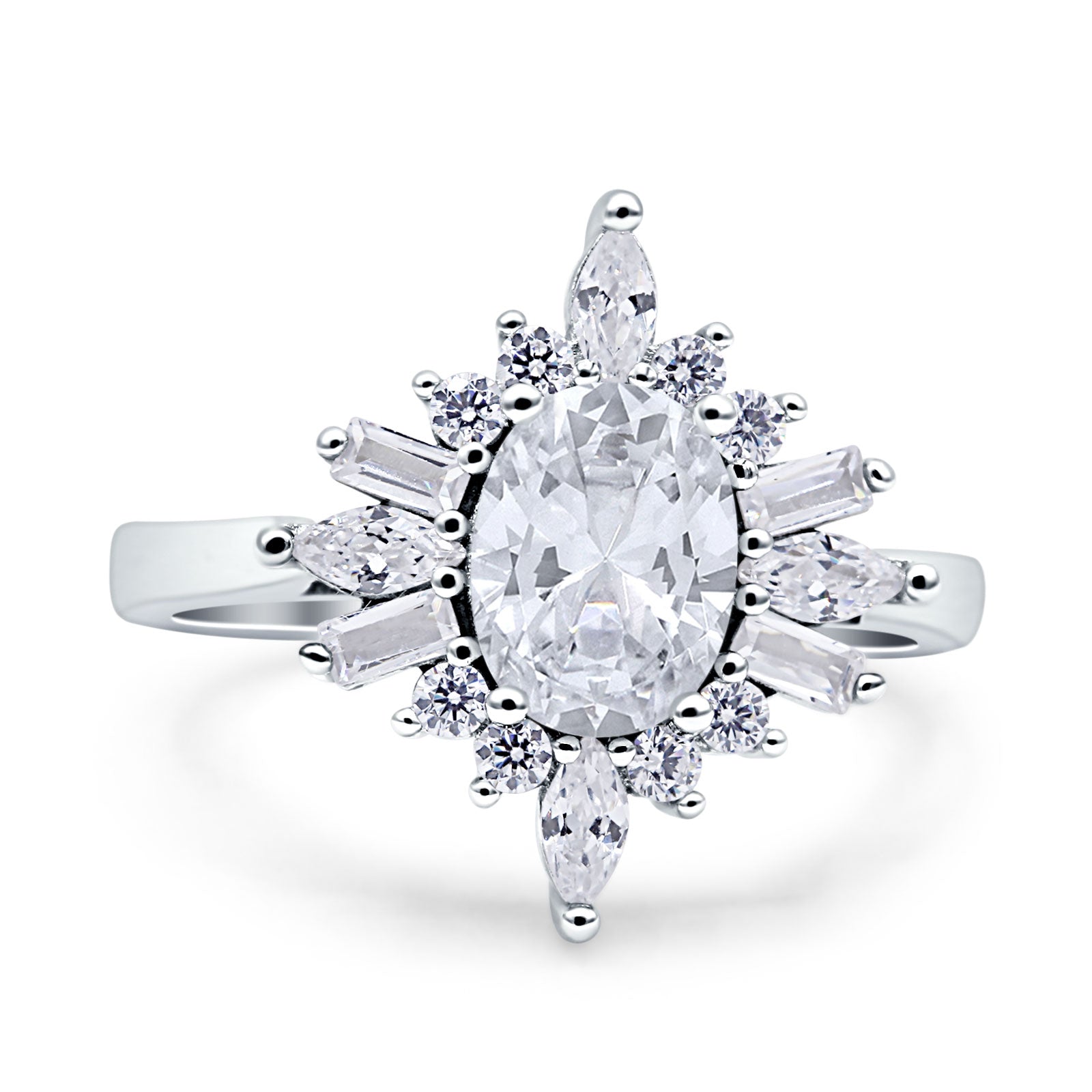 Vintage Style Oval Engagement Ring Simulated Cubic Zirconia 925 Sterling Silver