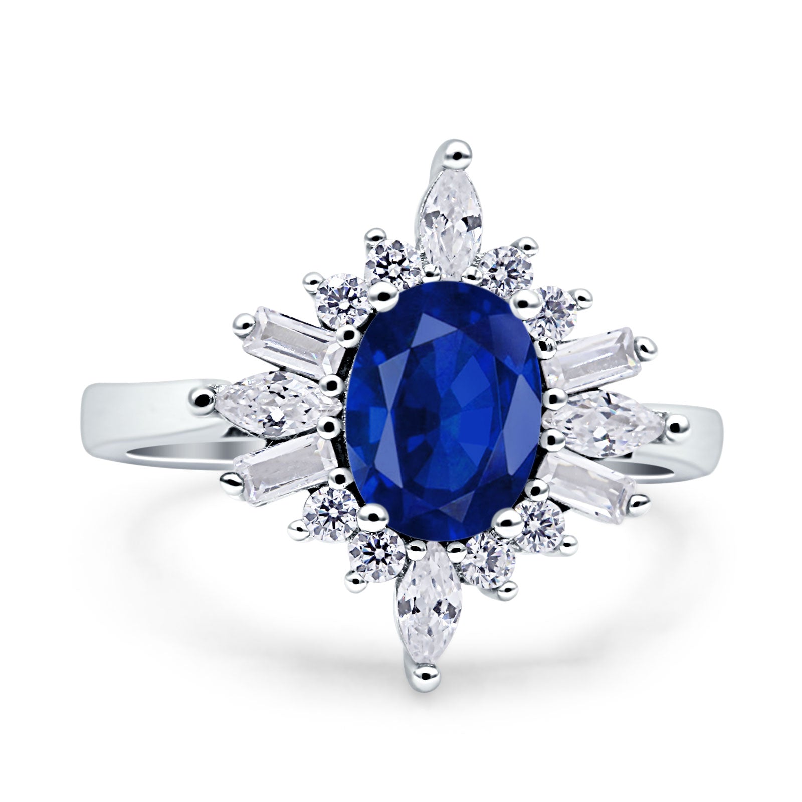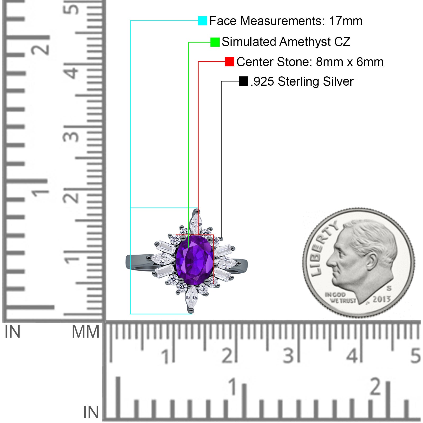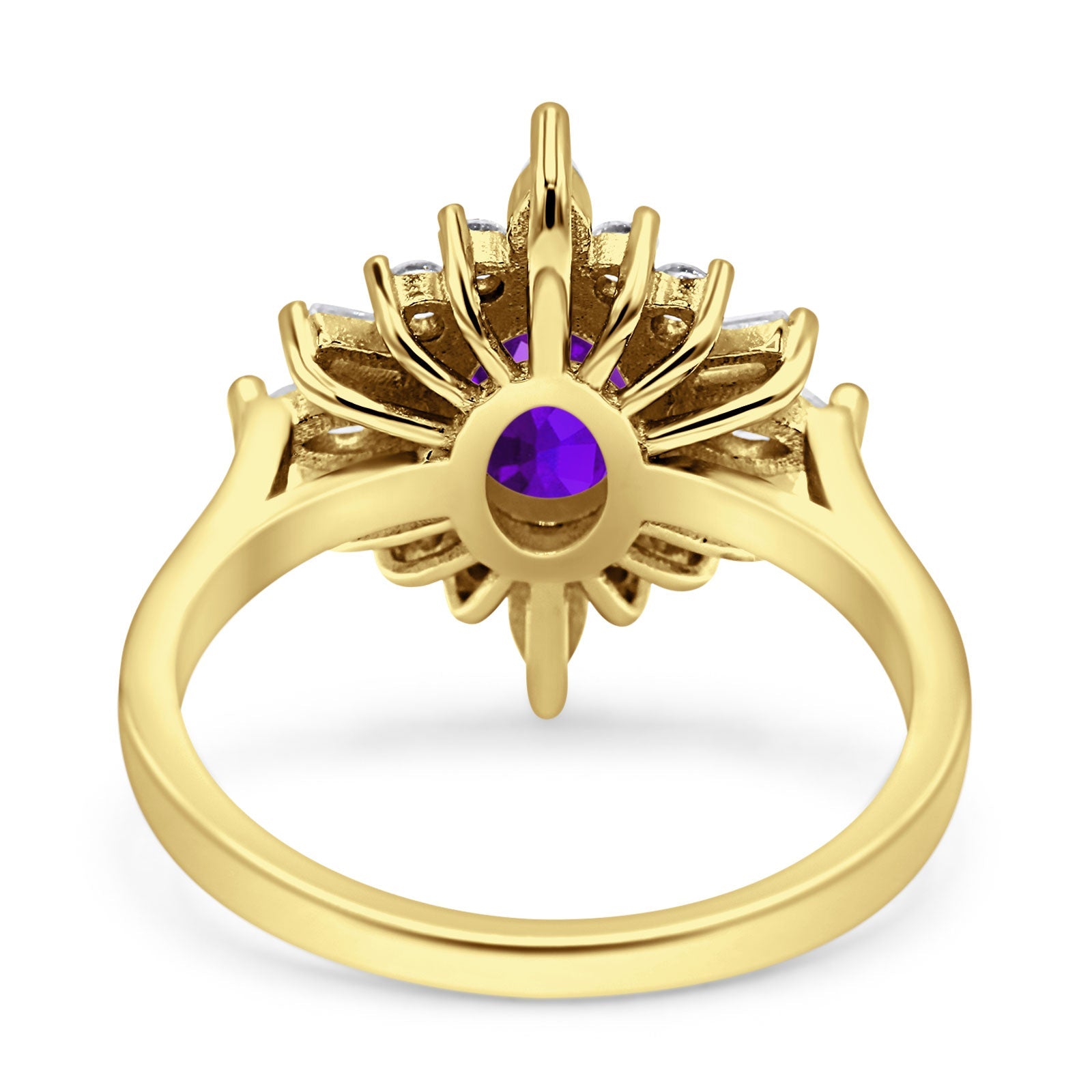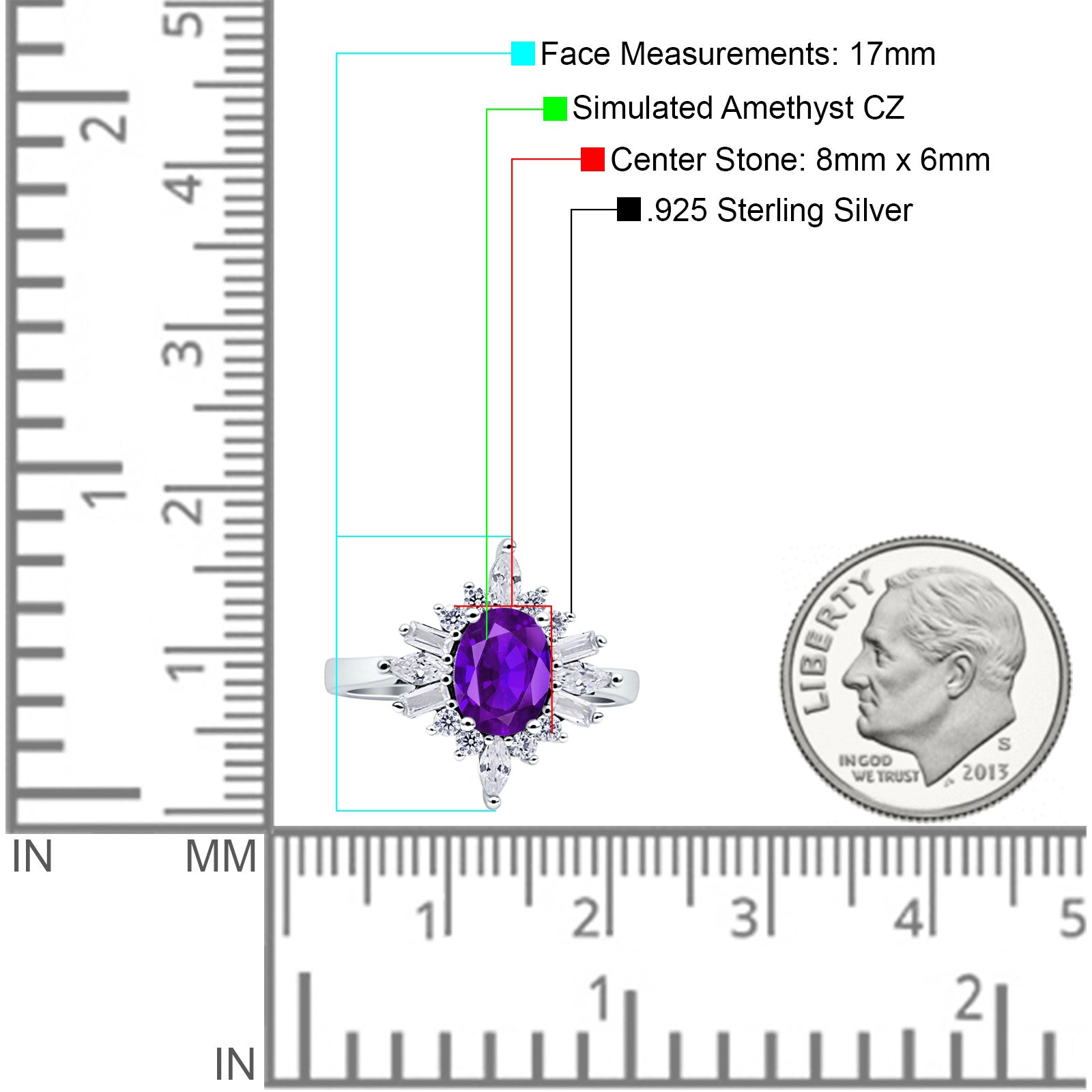 Vintage Style Oval Engagement Ring Simulated Cubic Zirconia 925 Sterling Silver