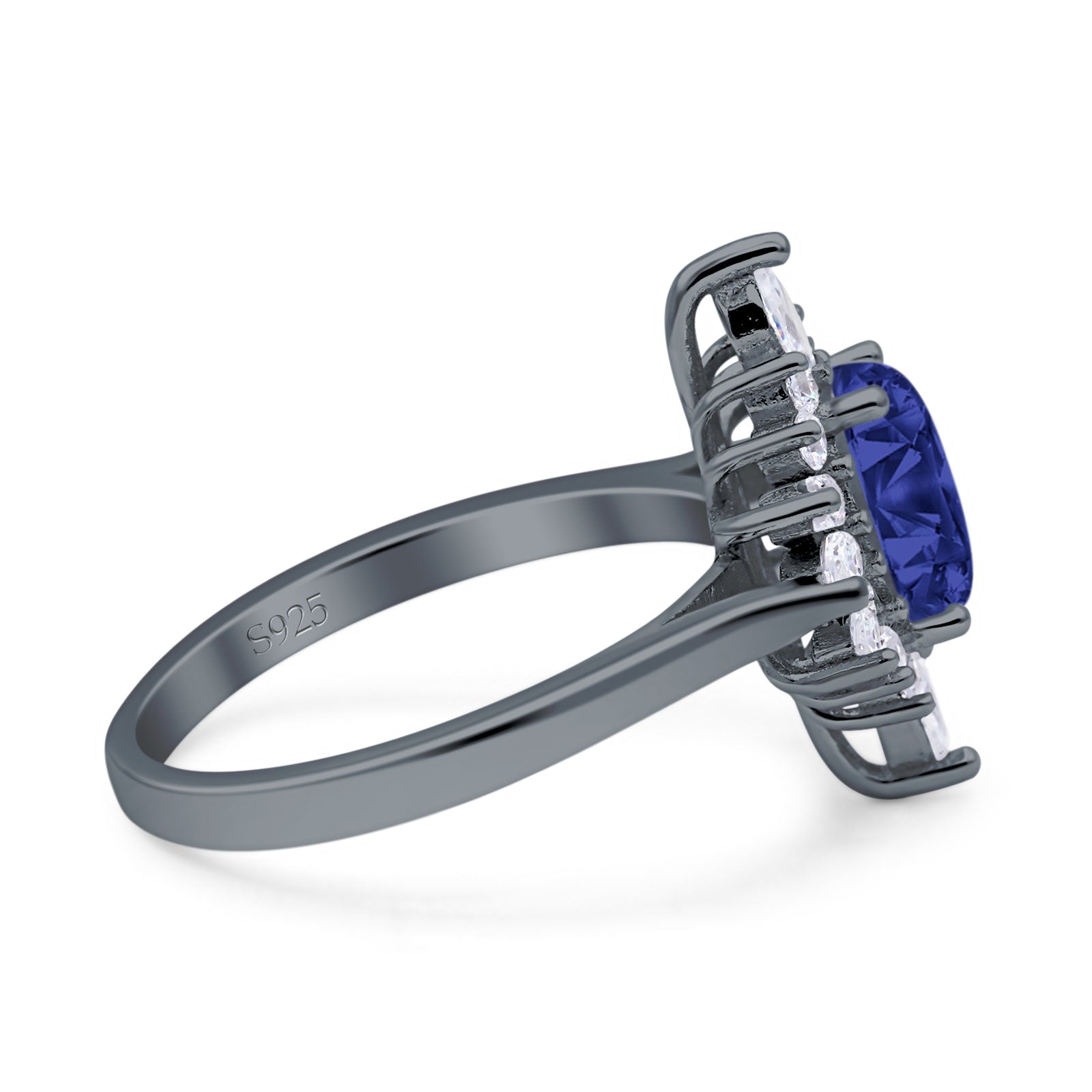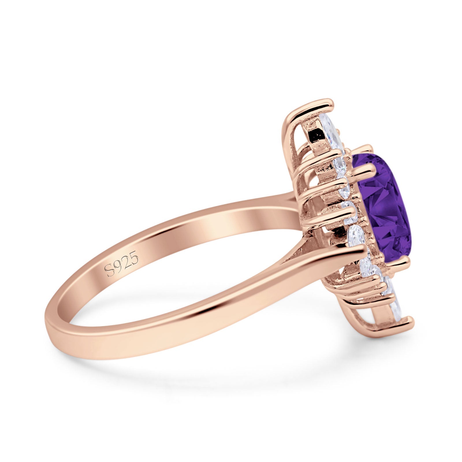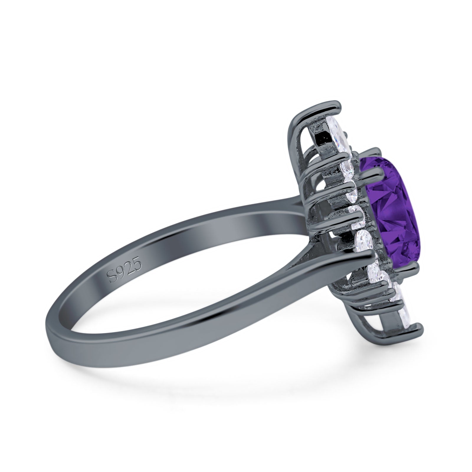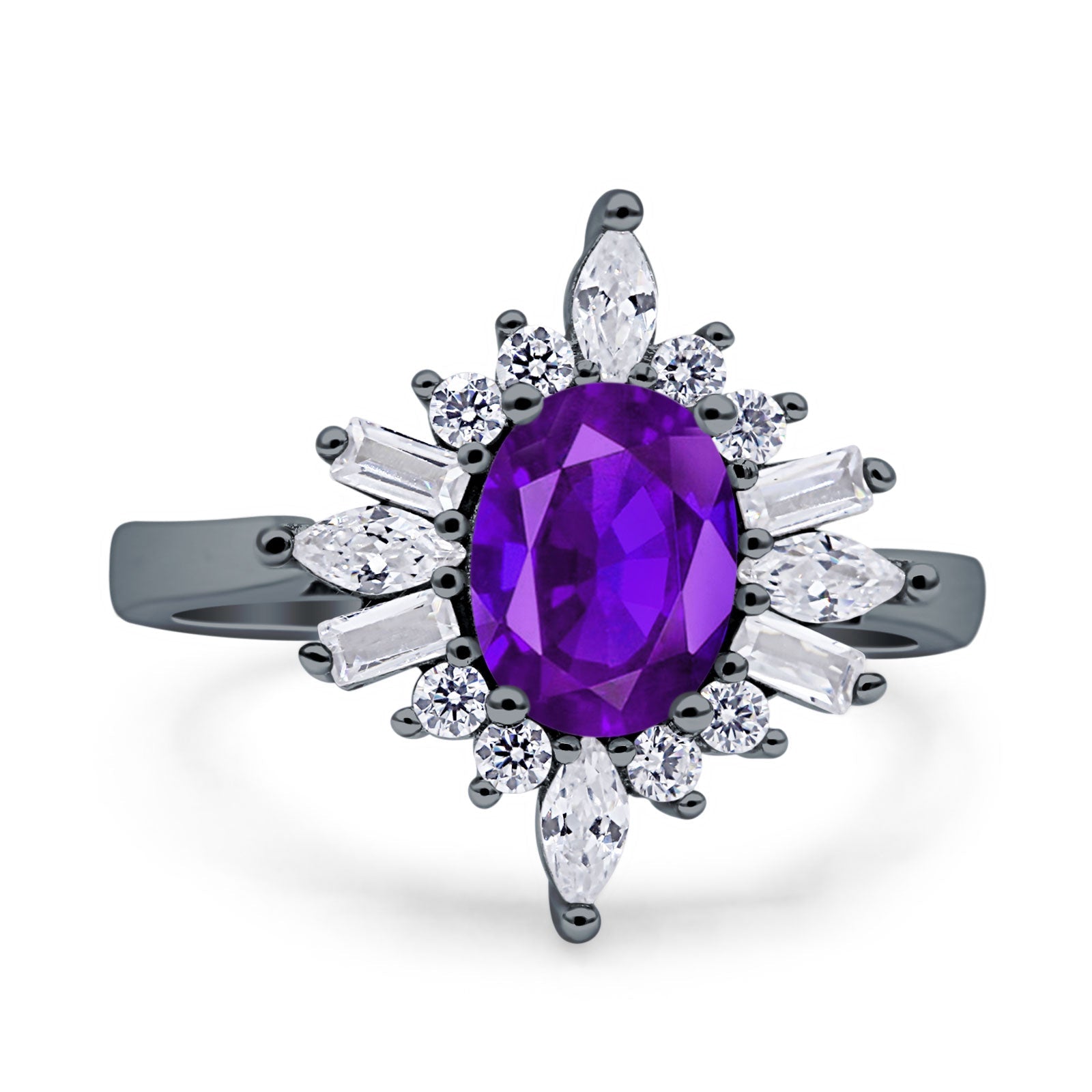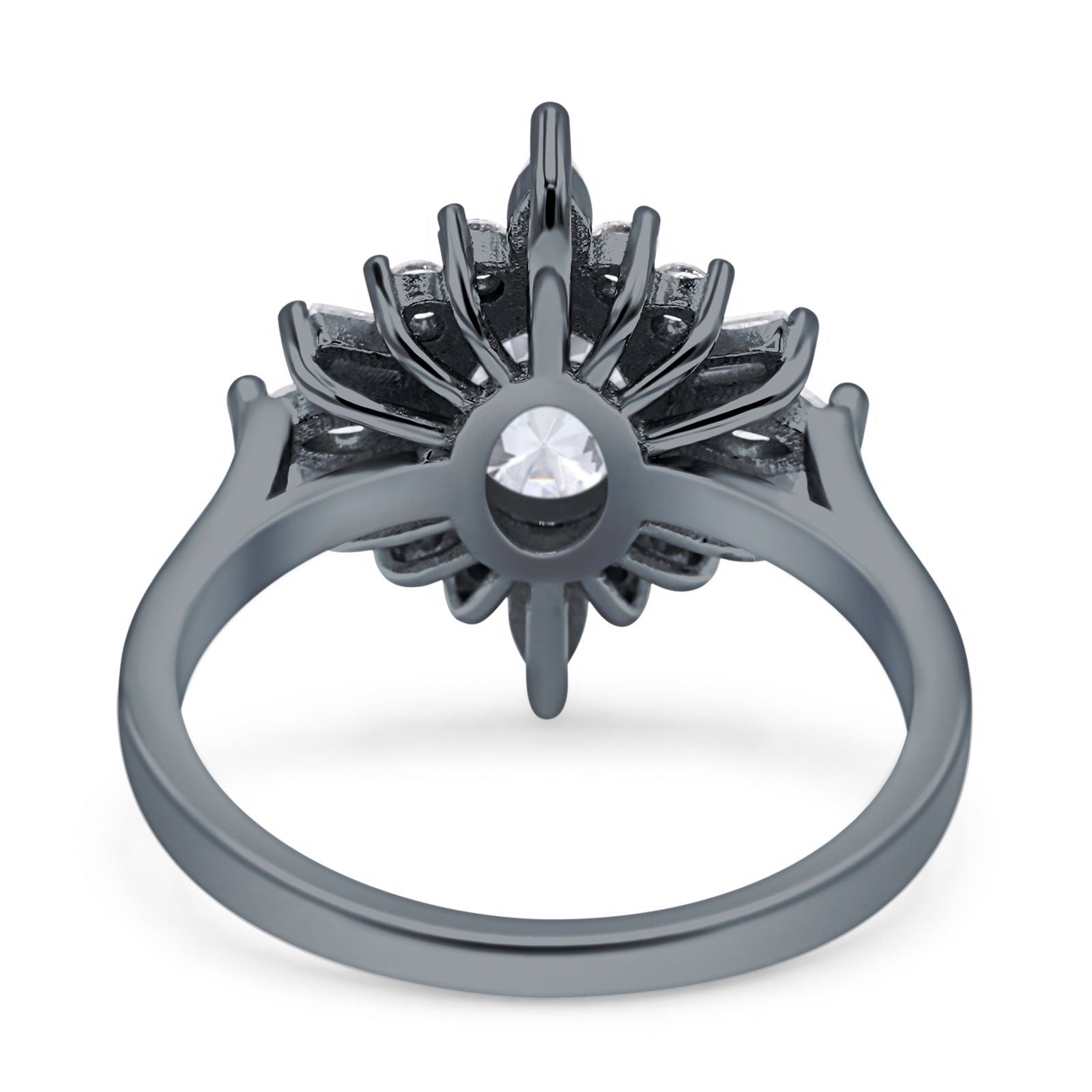 Vintage Style Oval Engagement Ring Simulated Cubic Zirconia 925 Sterling Silver