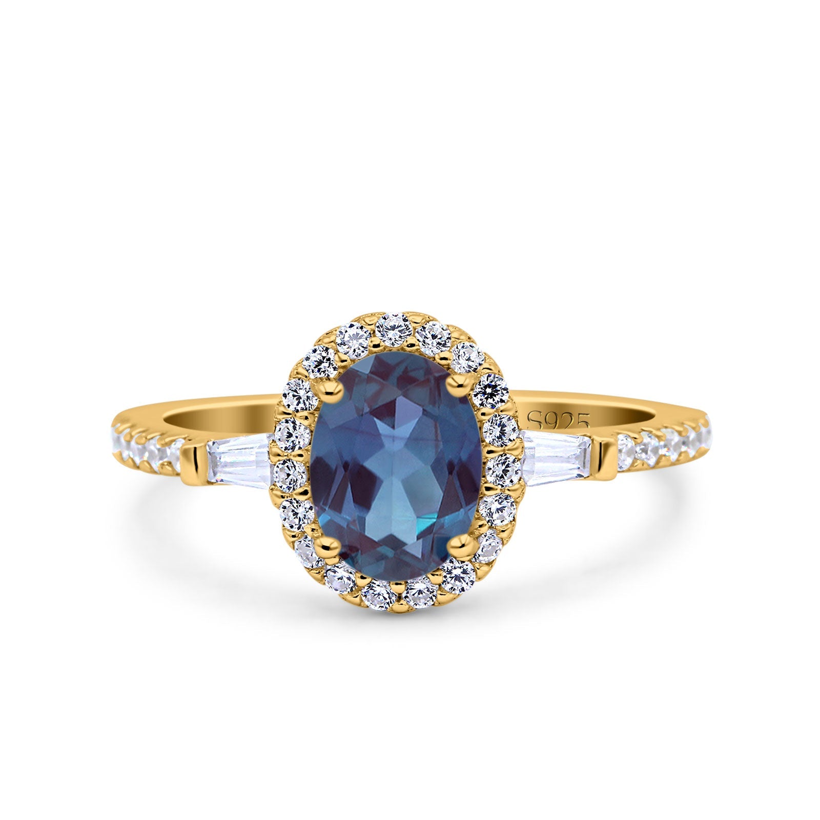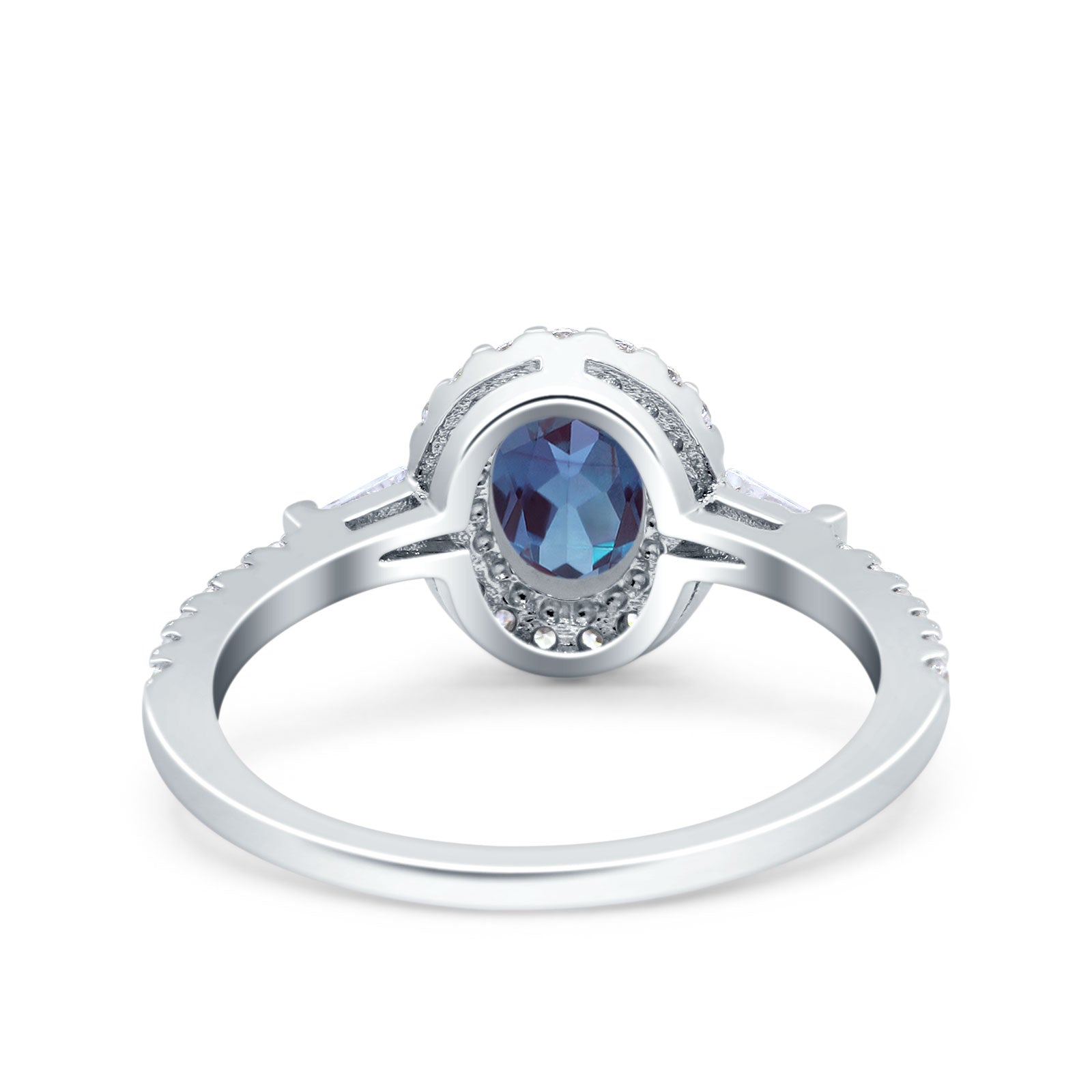 Vintage Style Oval Lab Alexandrite Art Deco Ring 925 Sterling Silver