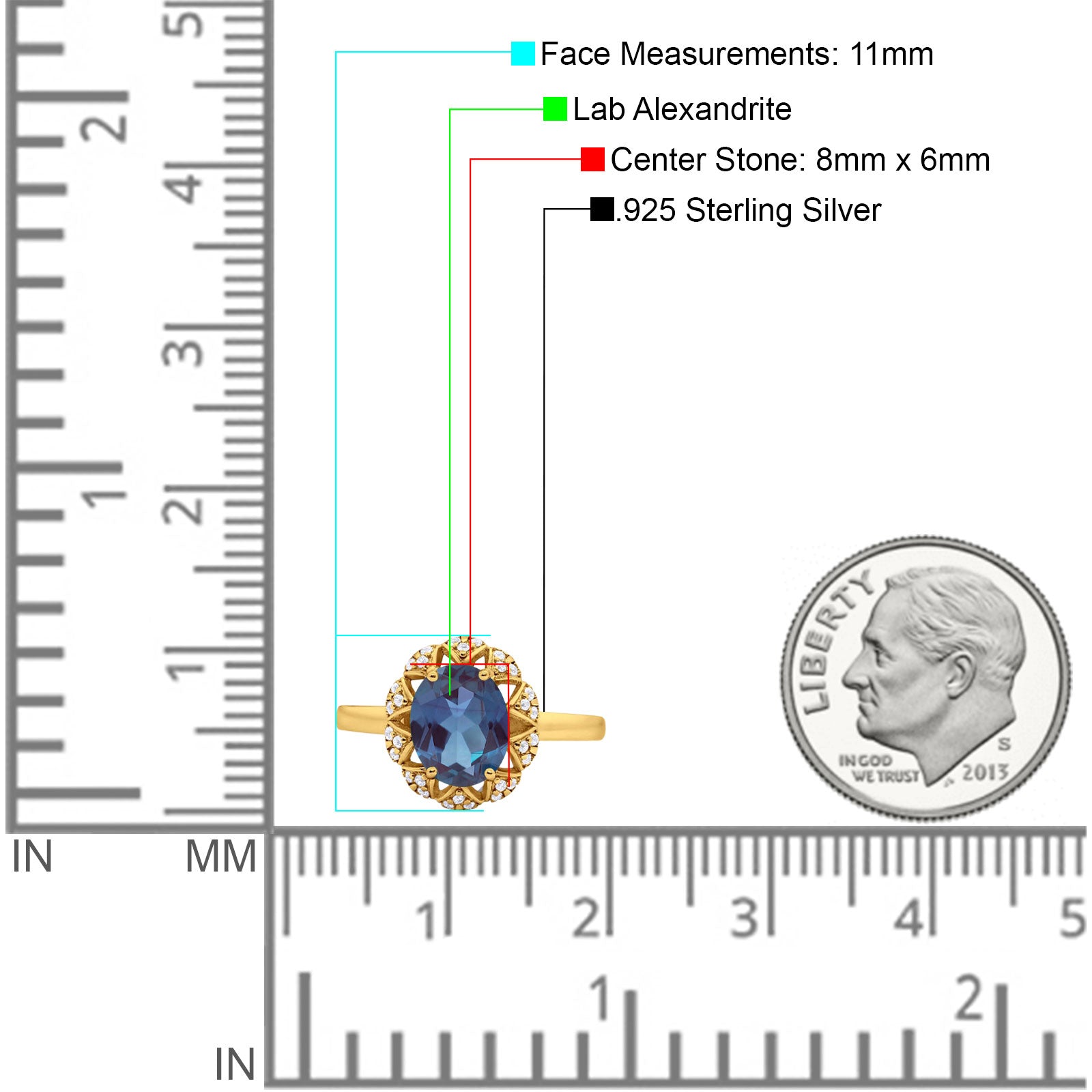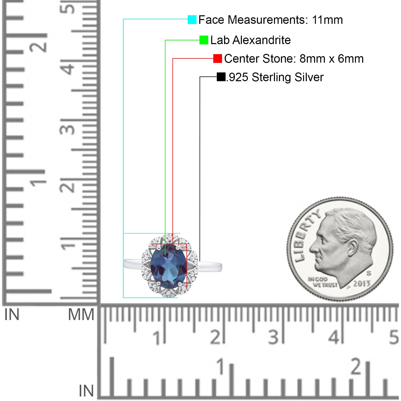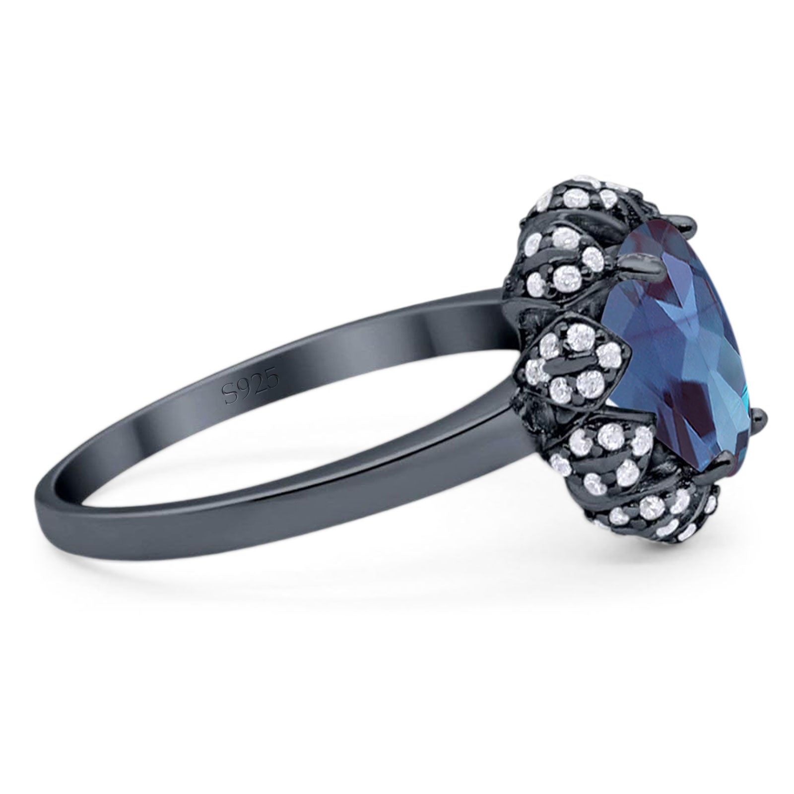 Vintage Style Oval Lab Alexandrite Floral Ring 925 Sterling Silver