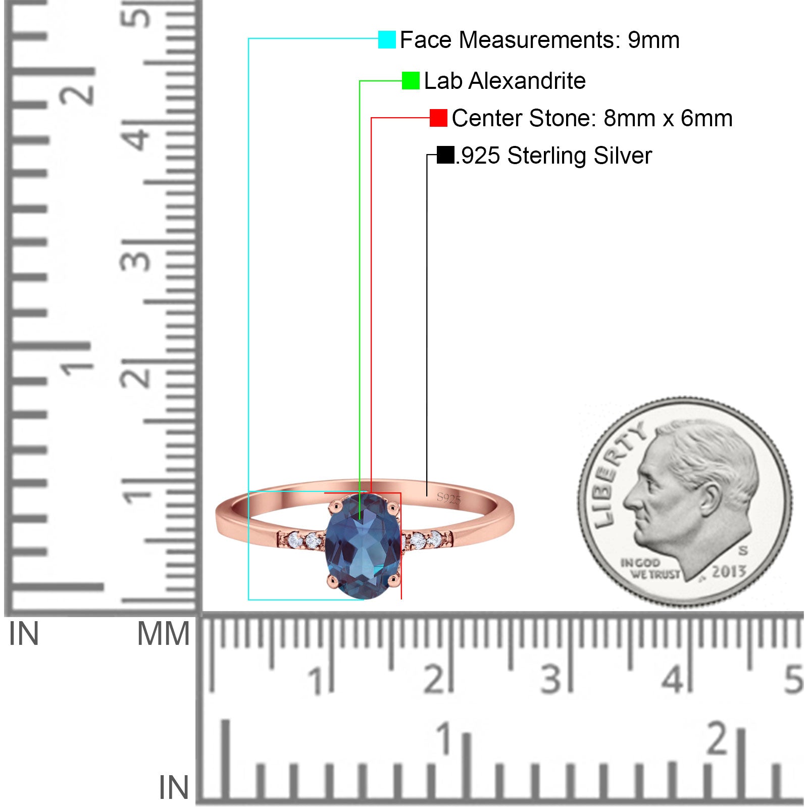 Lab Alexandrite Rose Tone Silver