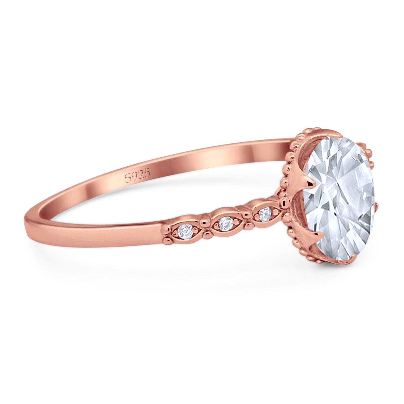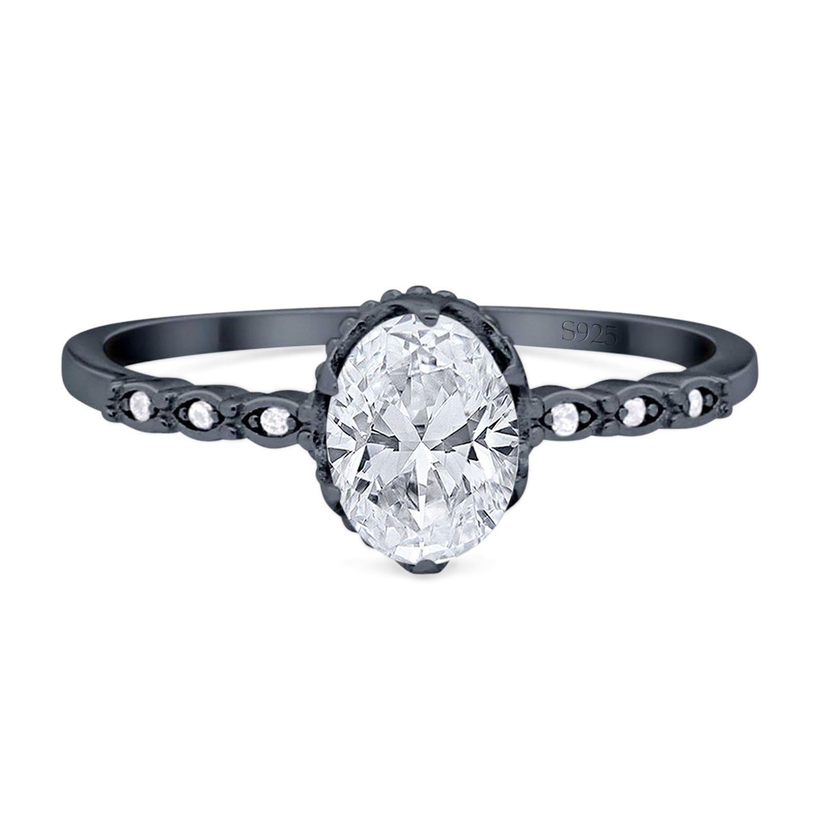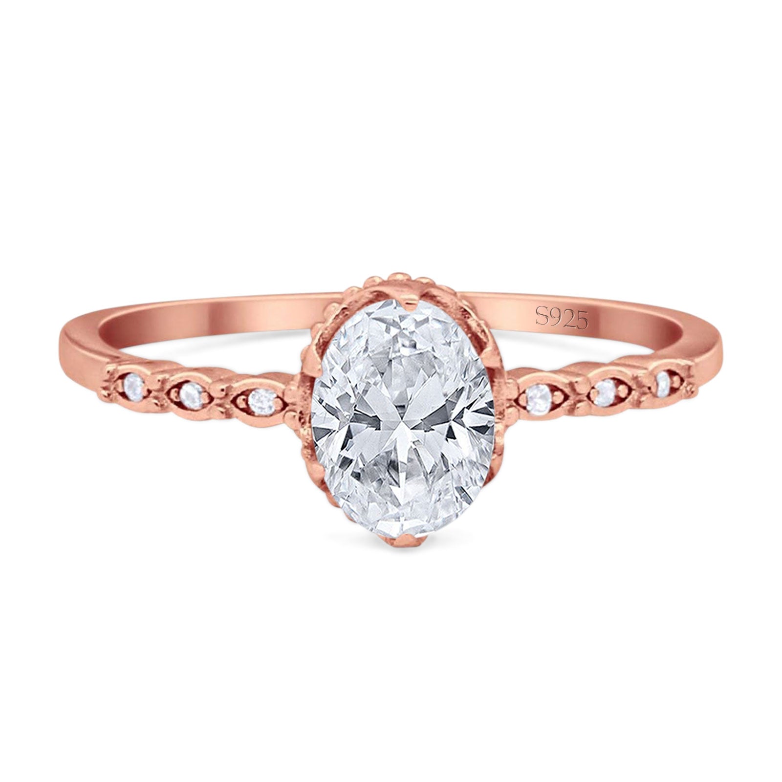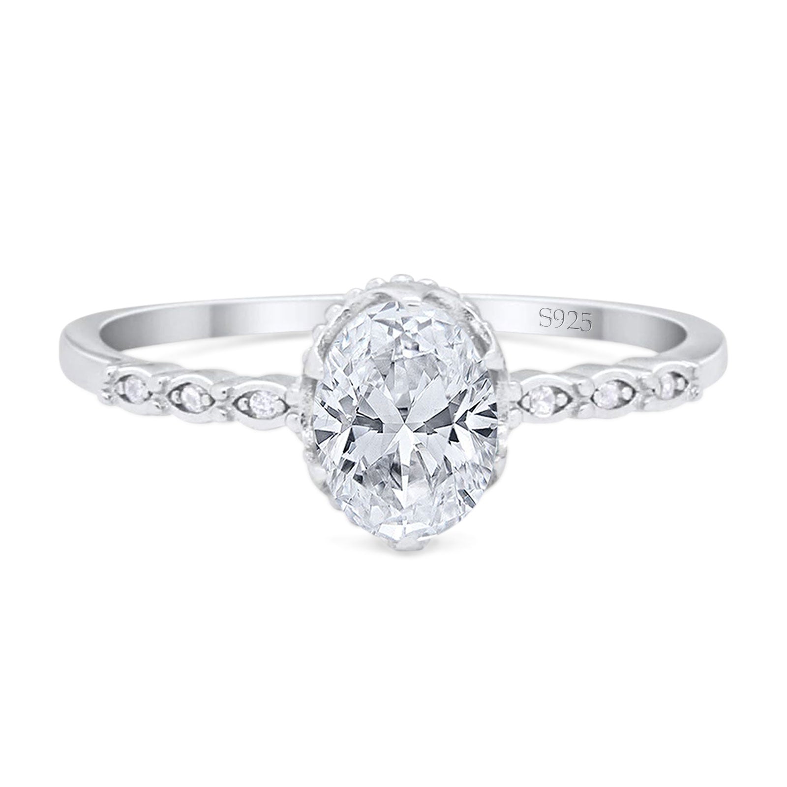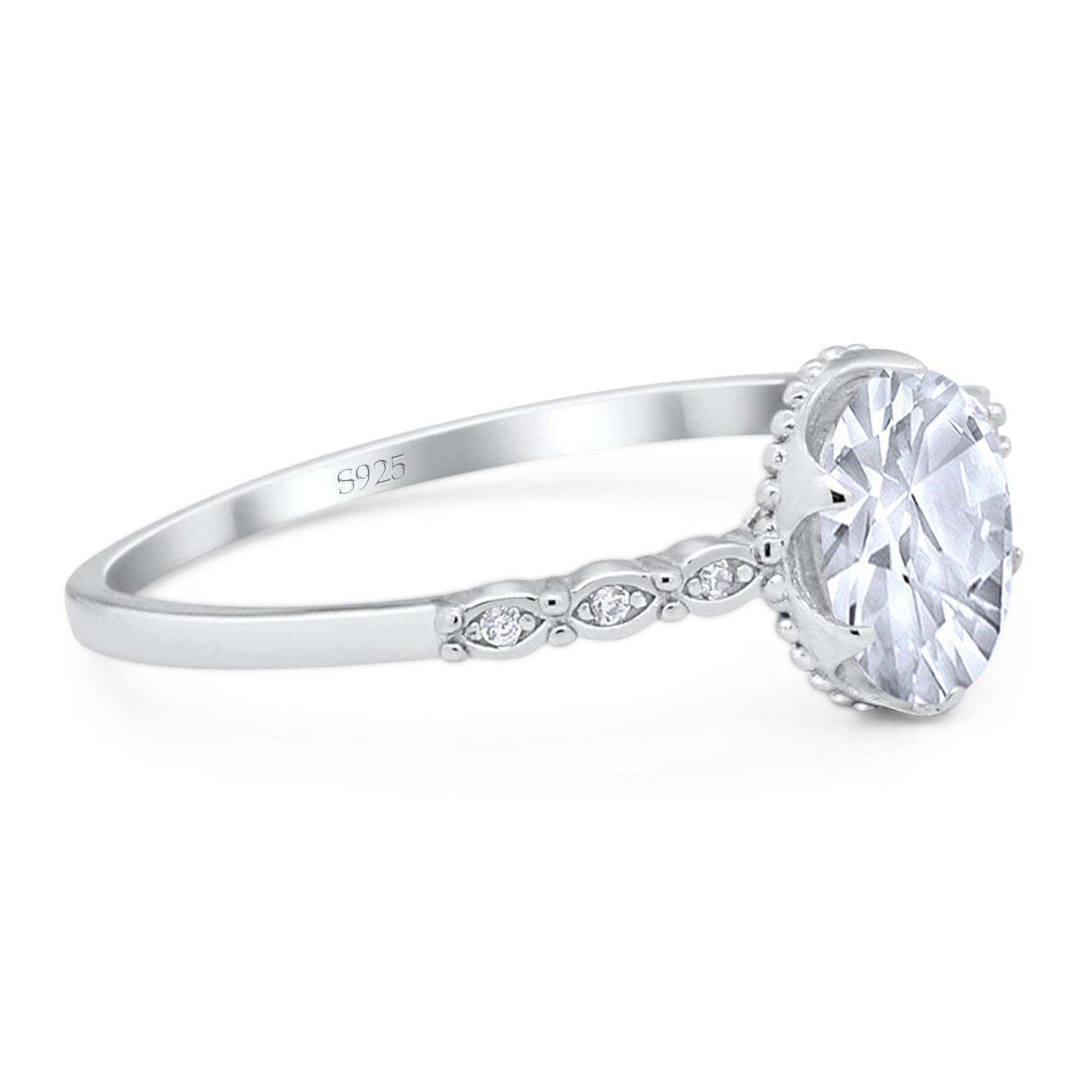 Vintage Style Oval Moissanite Beaded Ring 925 Sterling Silver