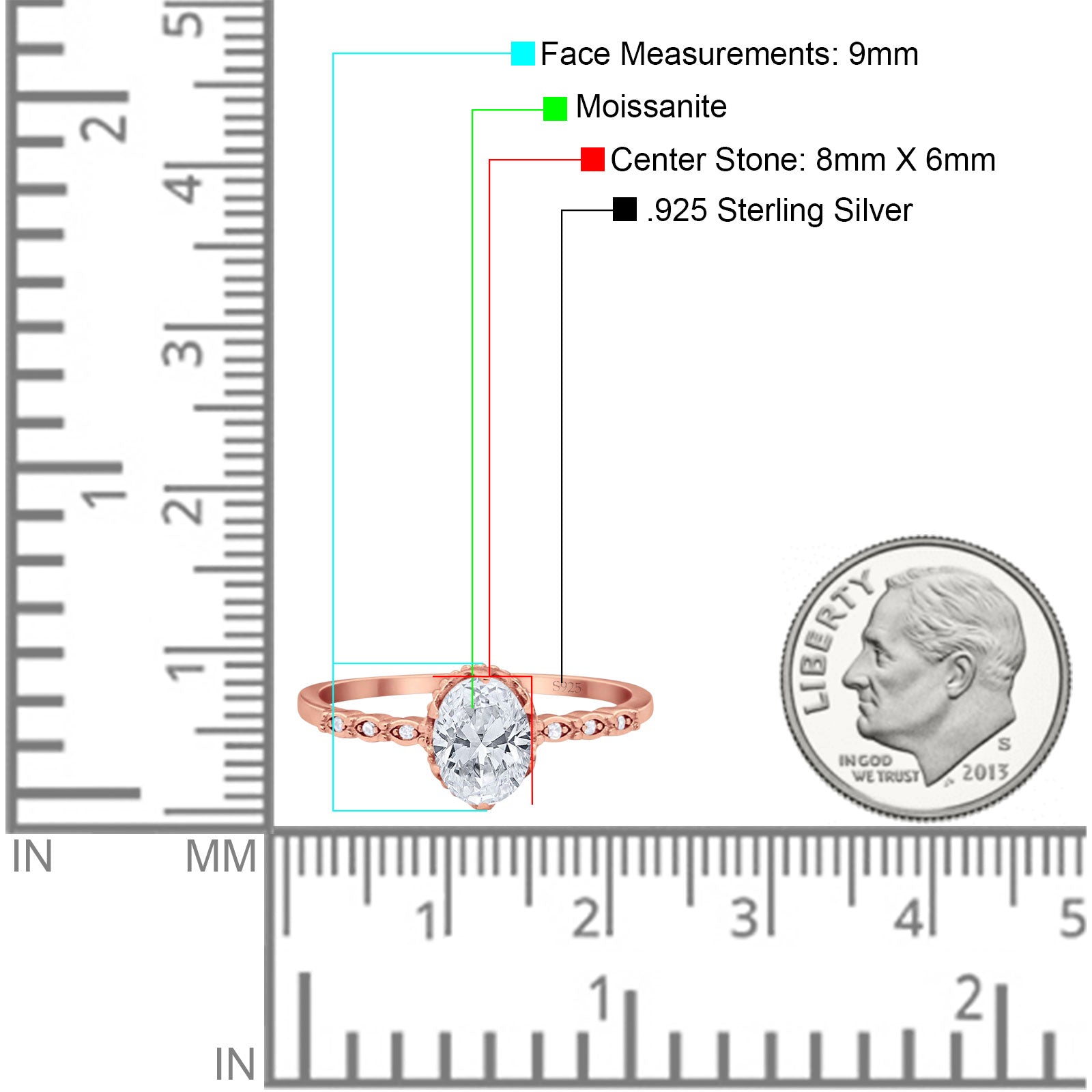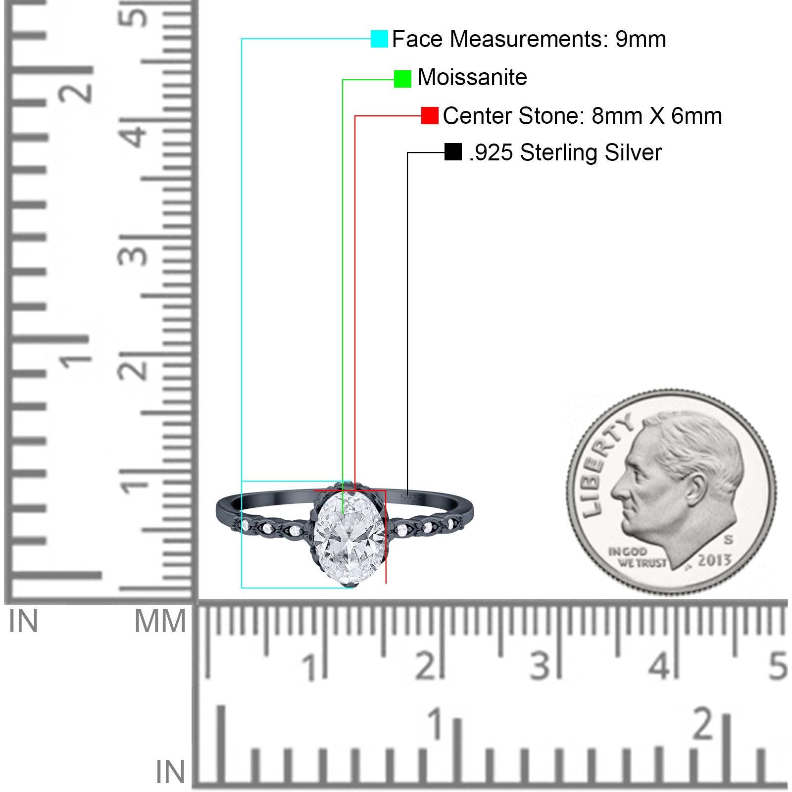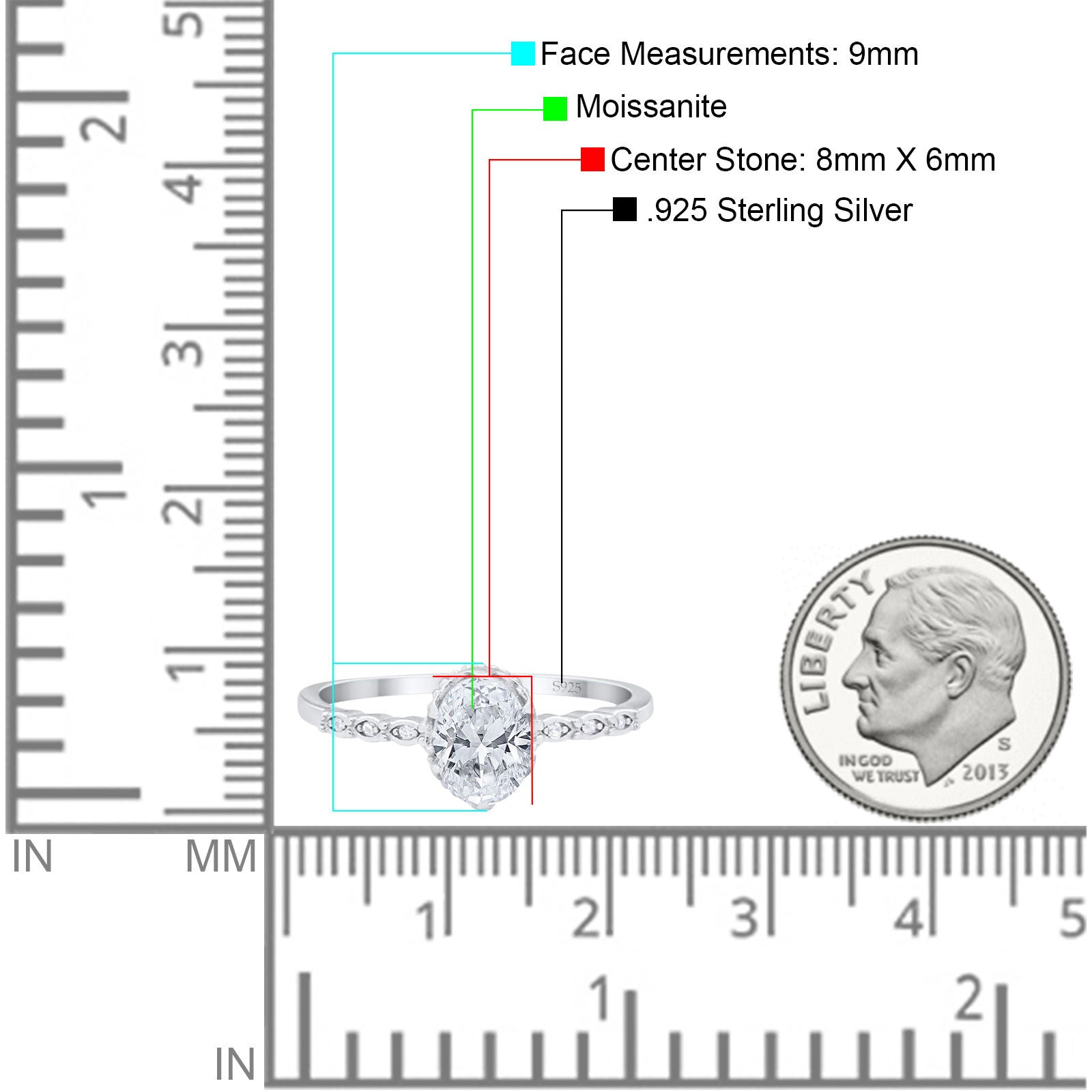 Center Stone Measurements: 8mmx6mm.