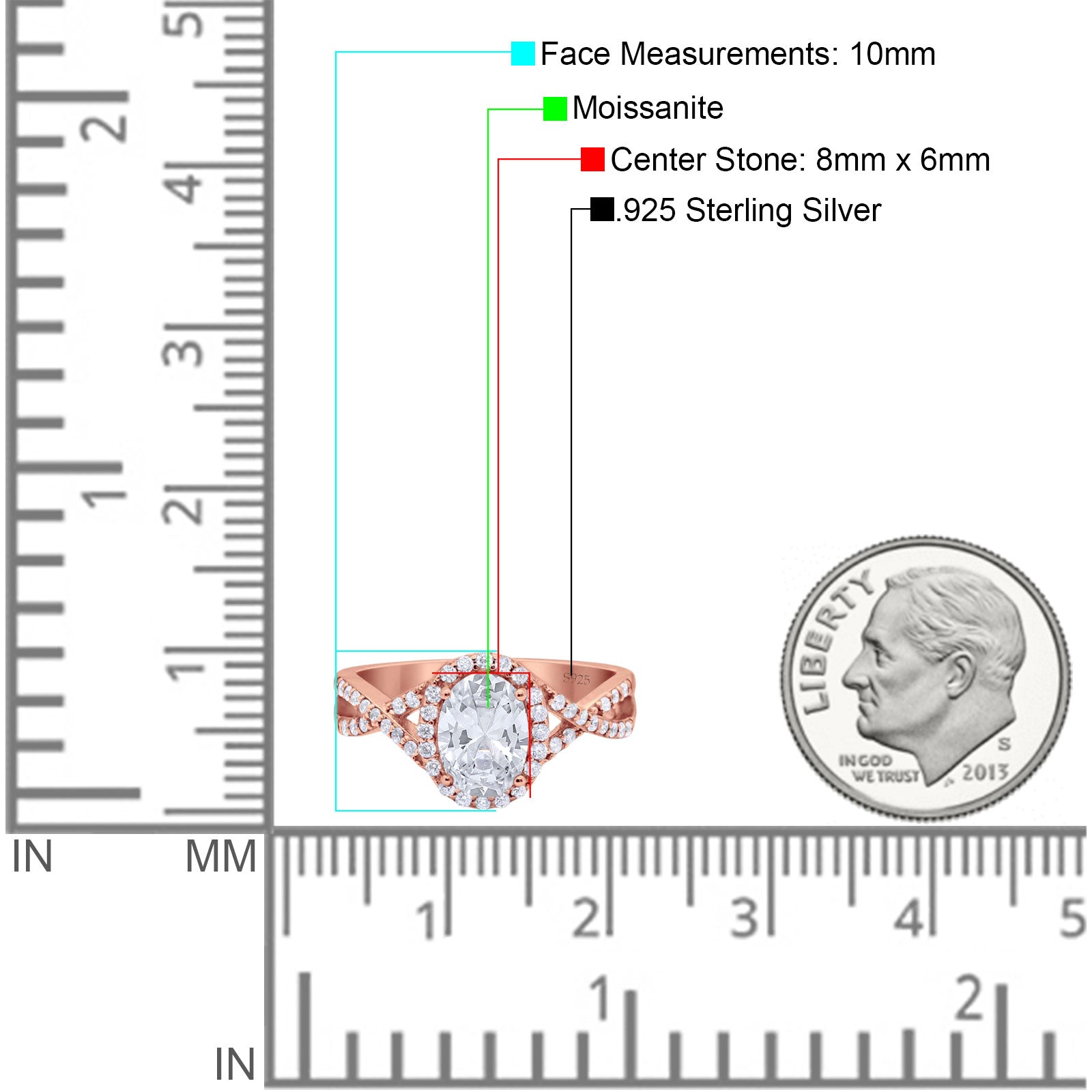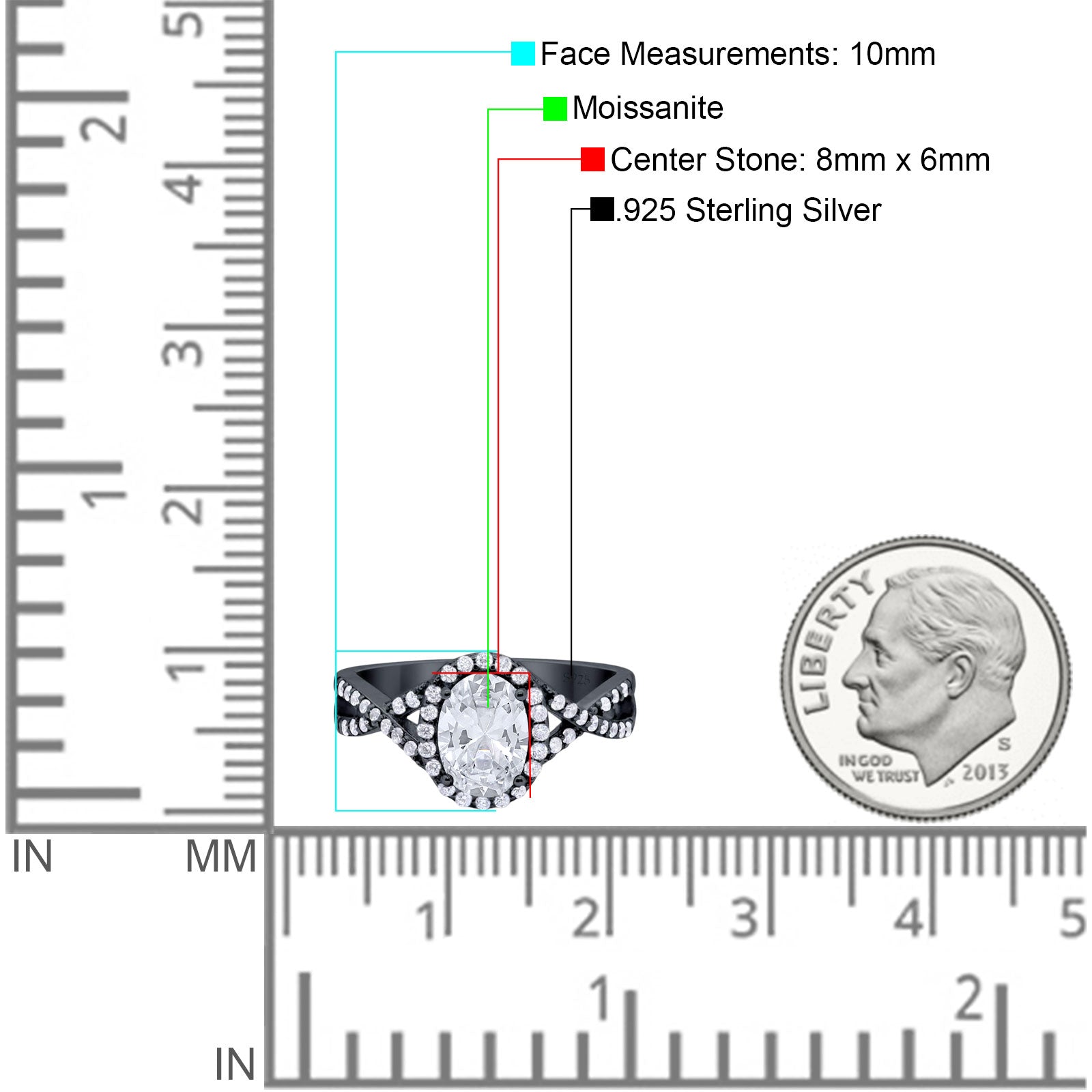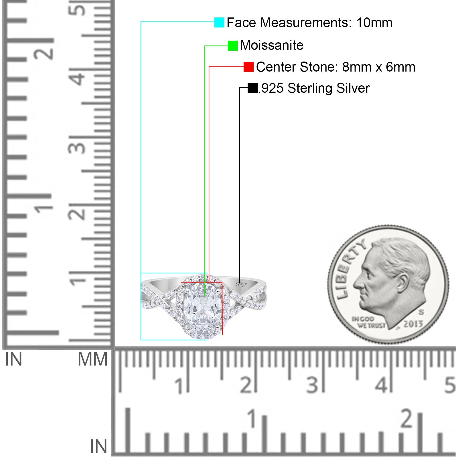 Center Stone Measurements:8mmX6mm.