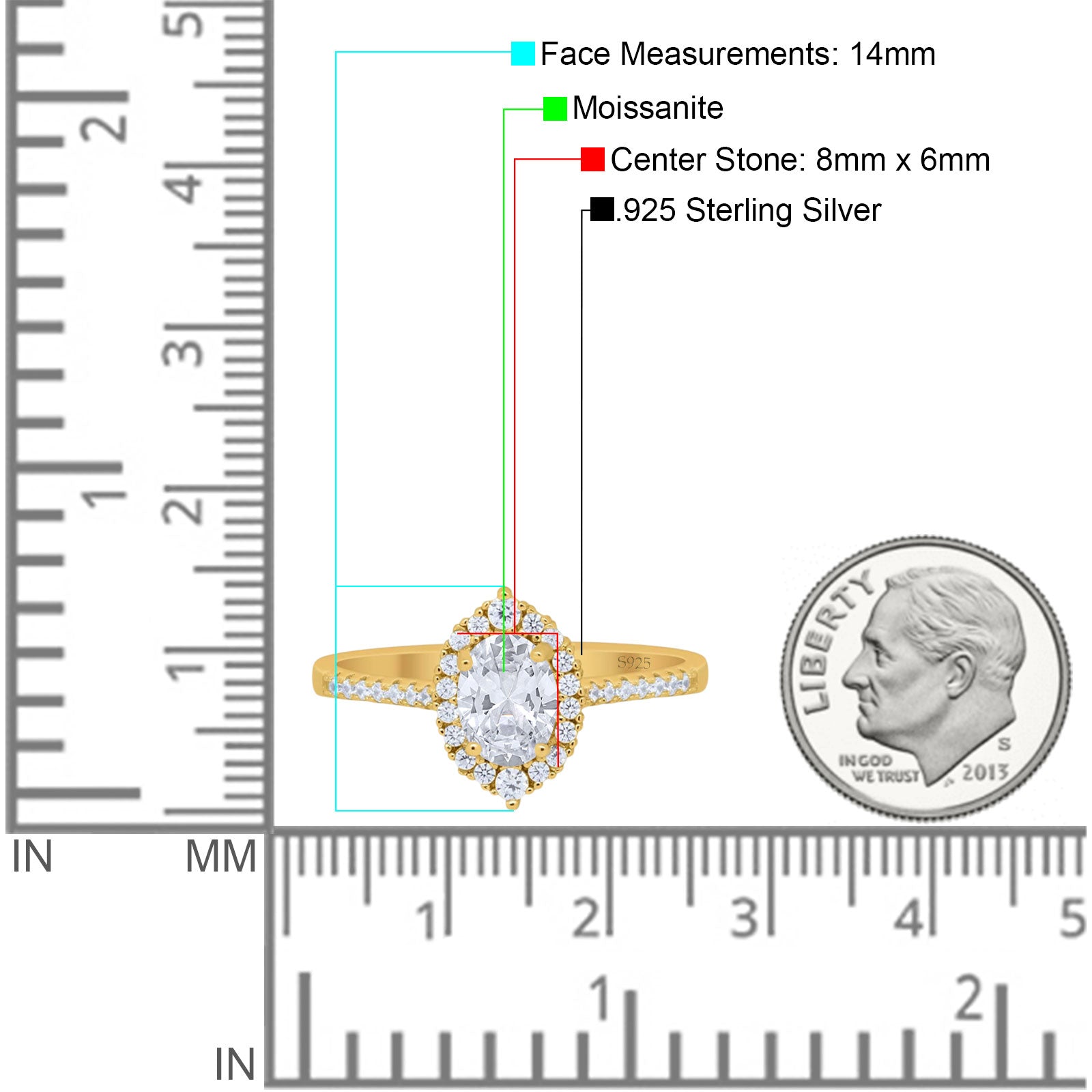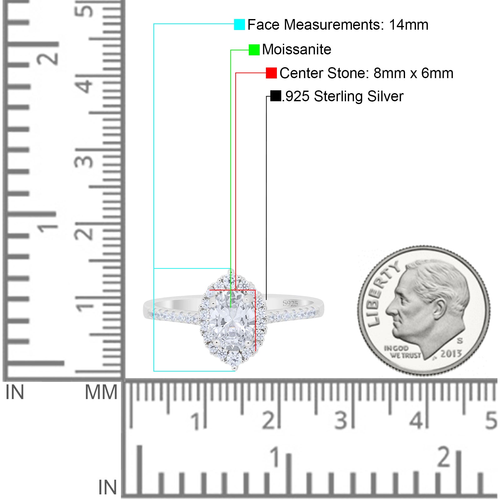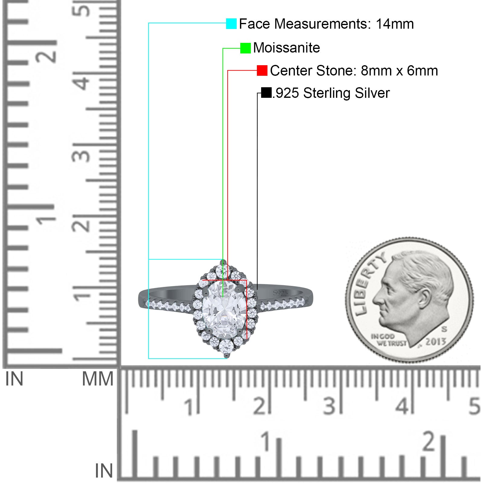 Center Stone Measurements:8mmx6mm.