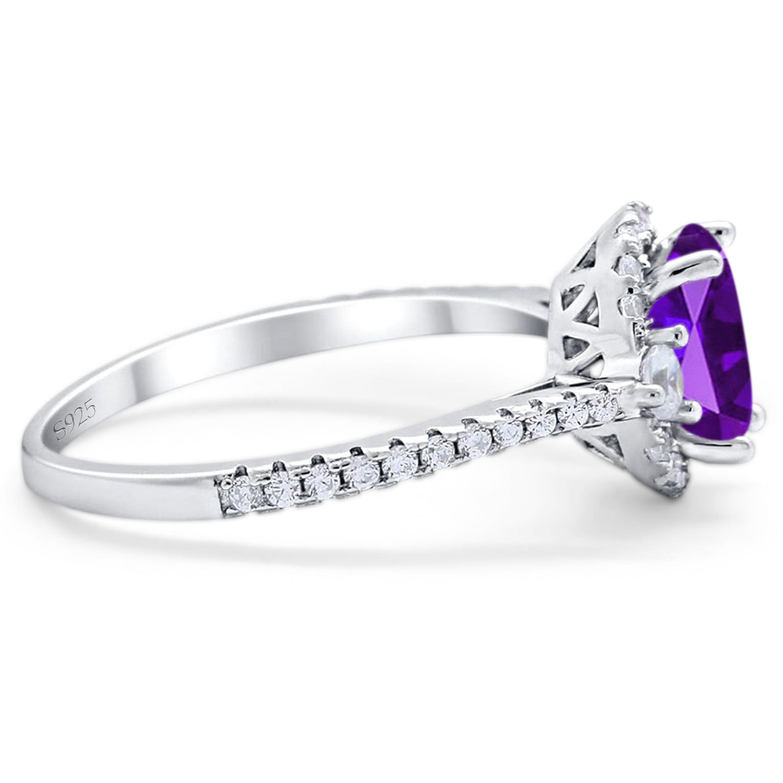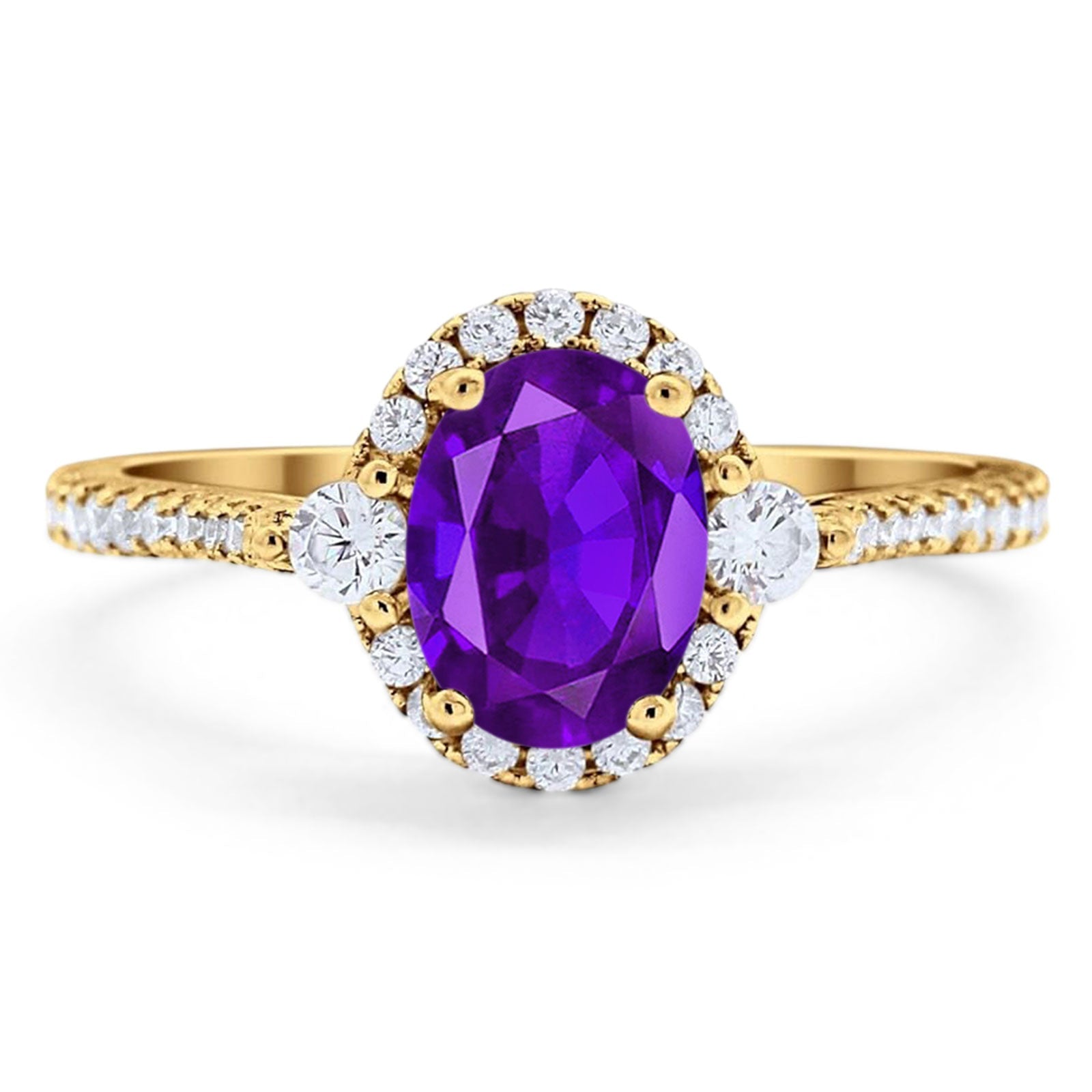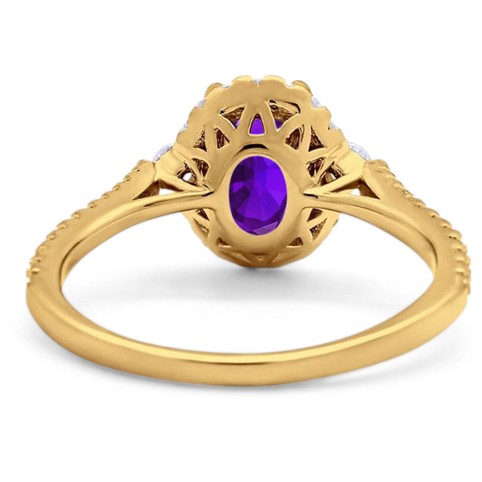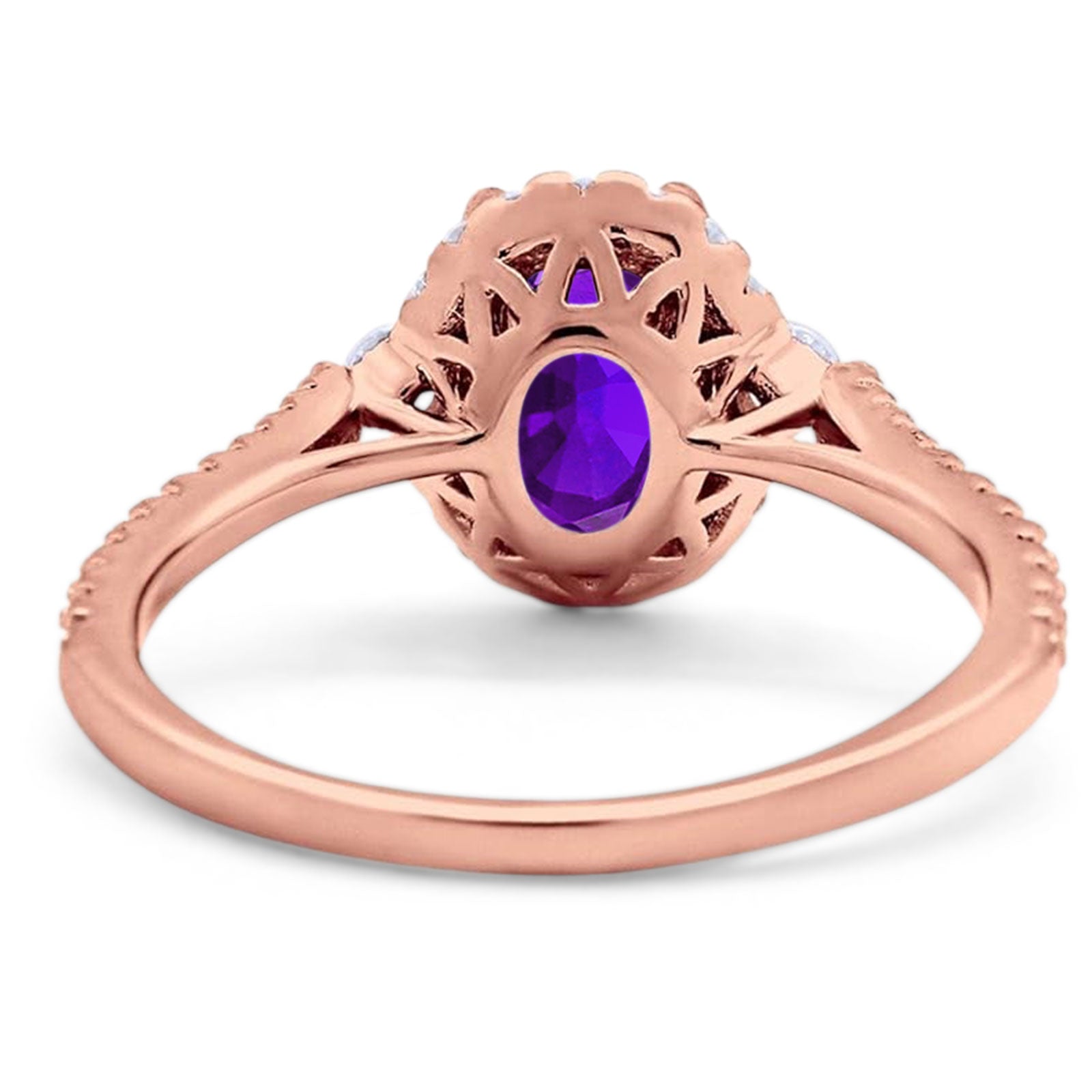 Vintage Style Oval Natural Amethyst Halo Wedding Ring 925 Sterling Silver