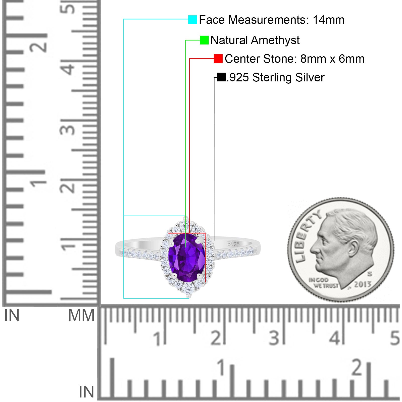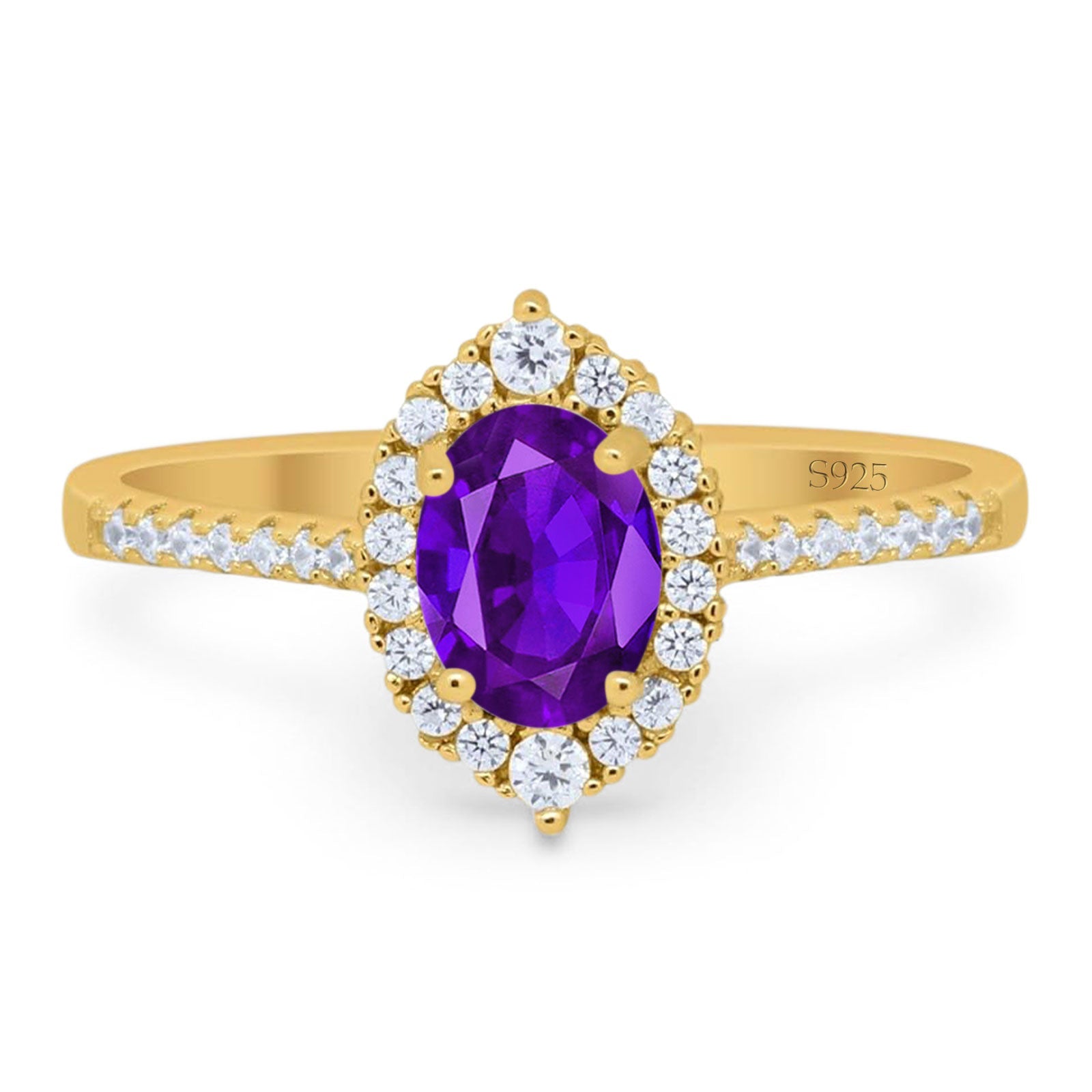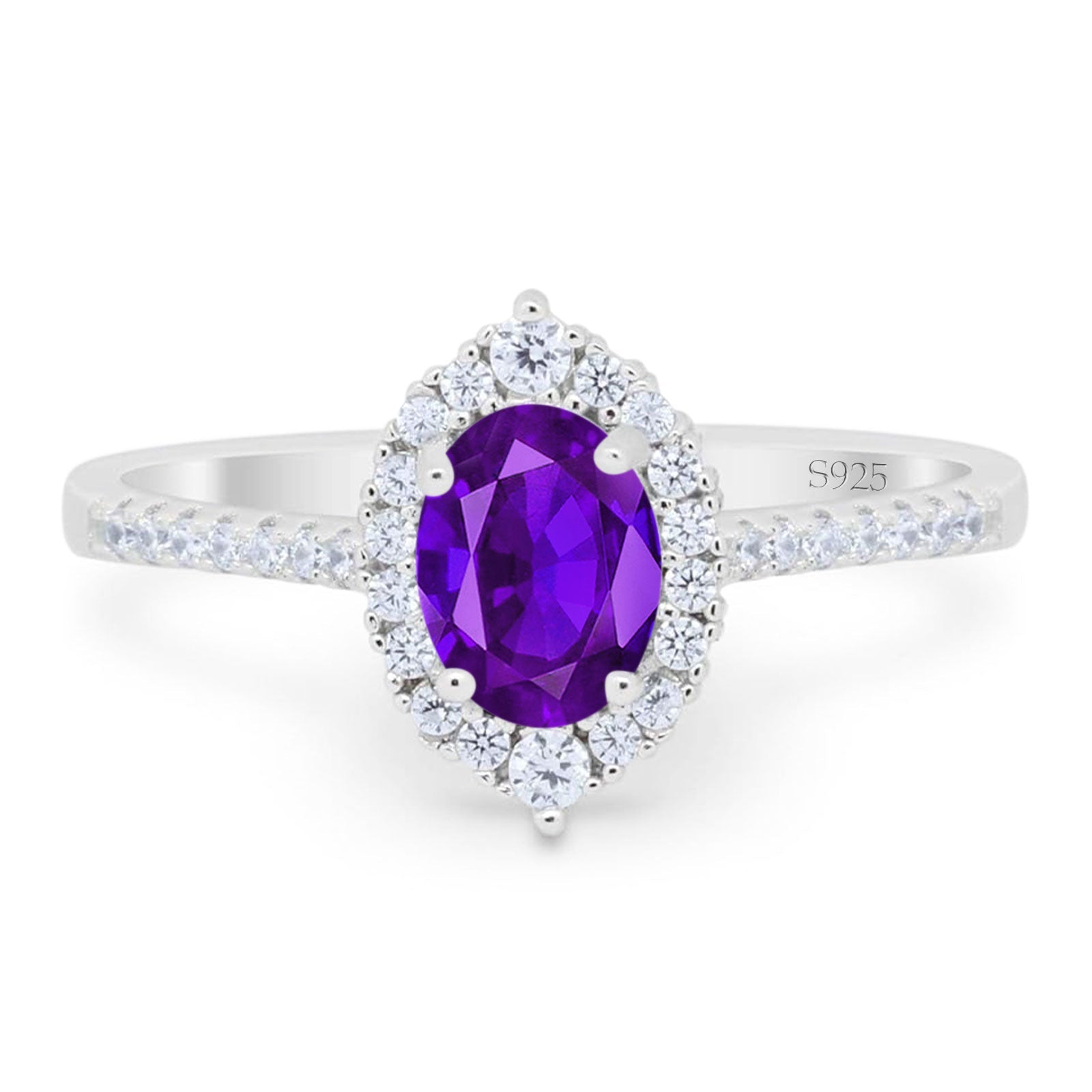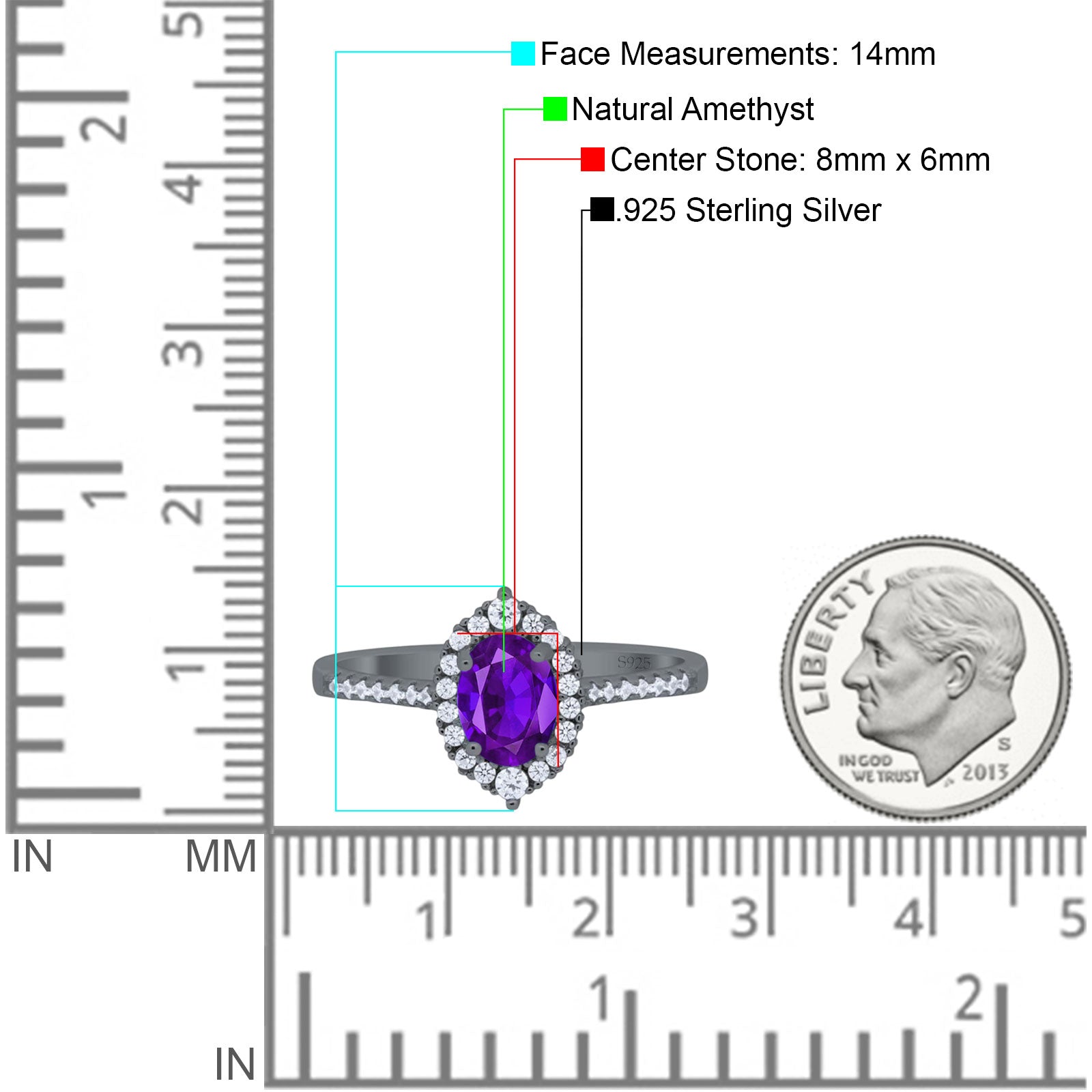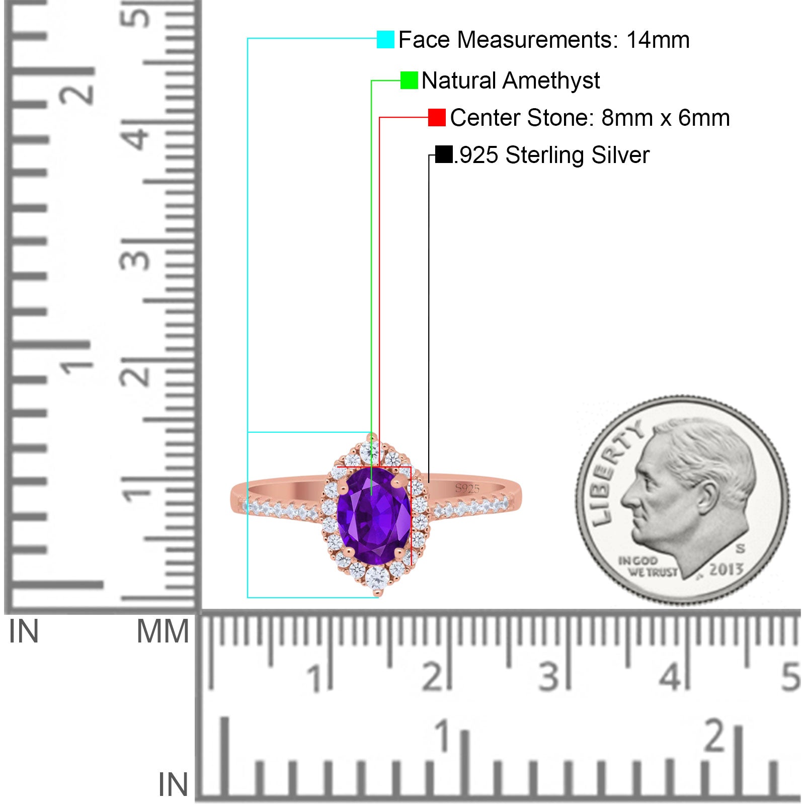 Vintage Style Oval Natural Amethyst Wedding Ring 925 Sterling Silver