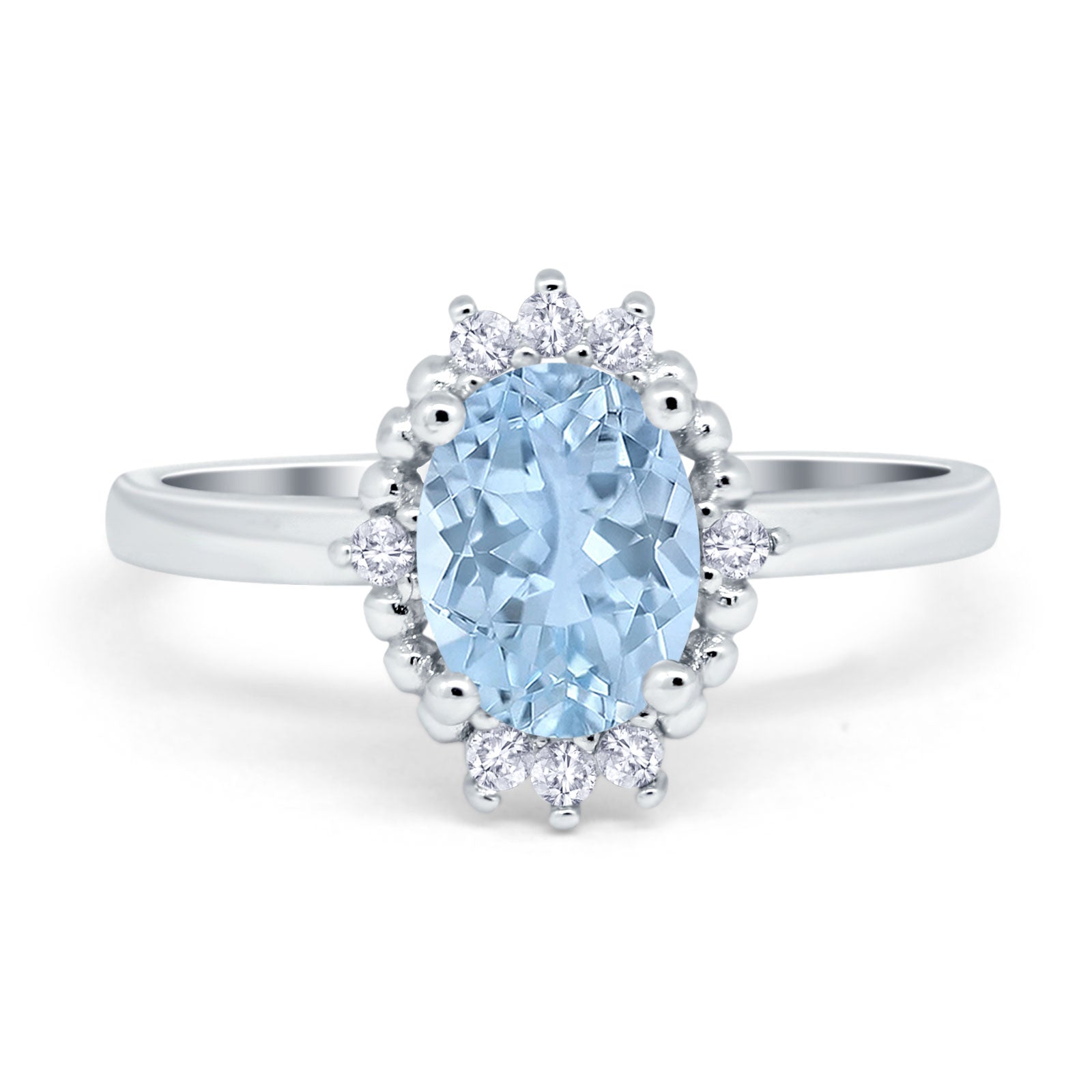Vintage Style Oval Natural Aquamarine Beaded Ring 925 Sterling Silver