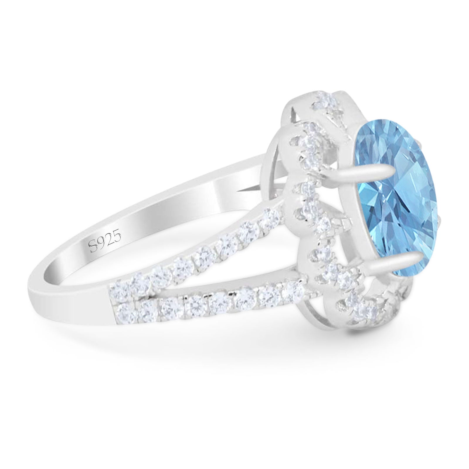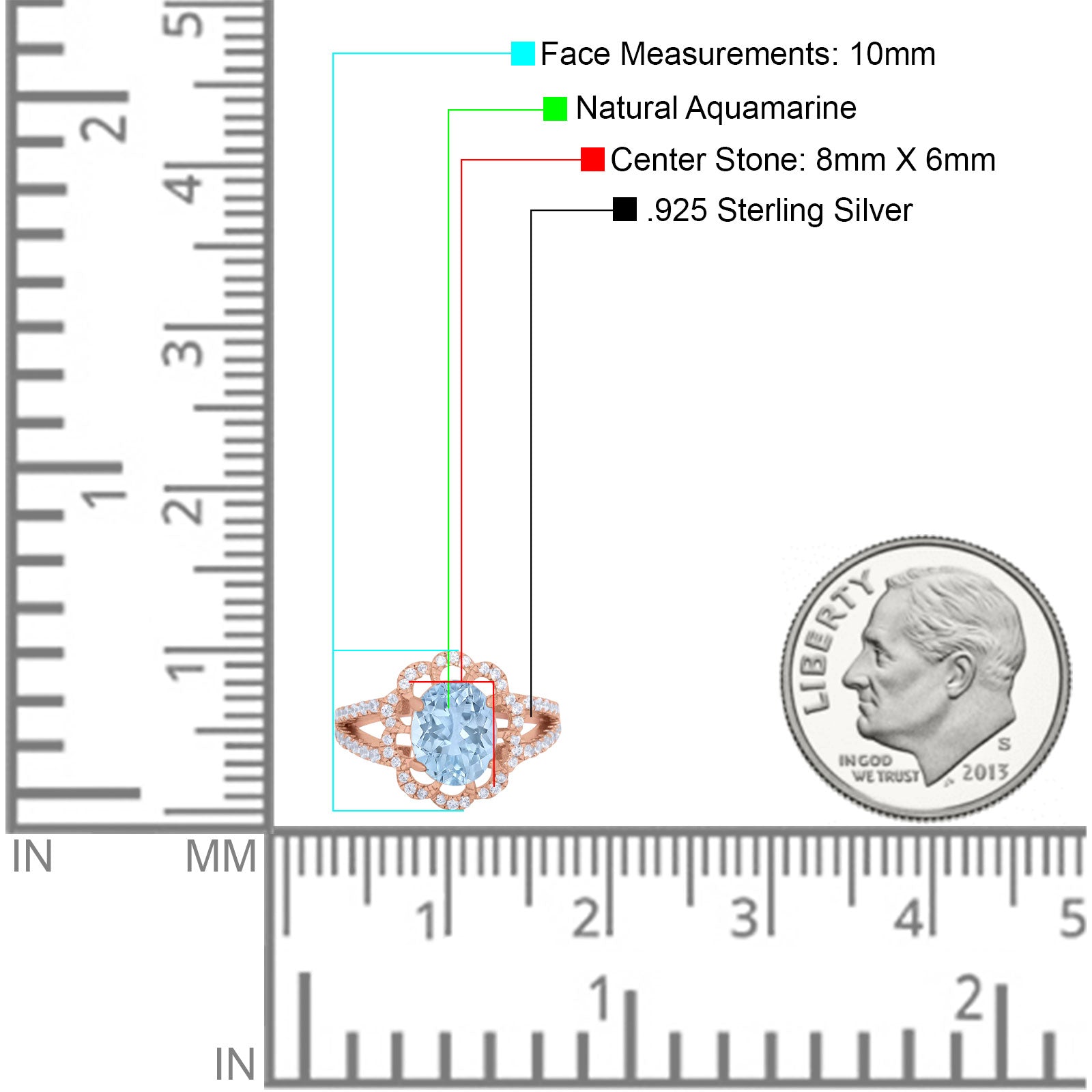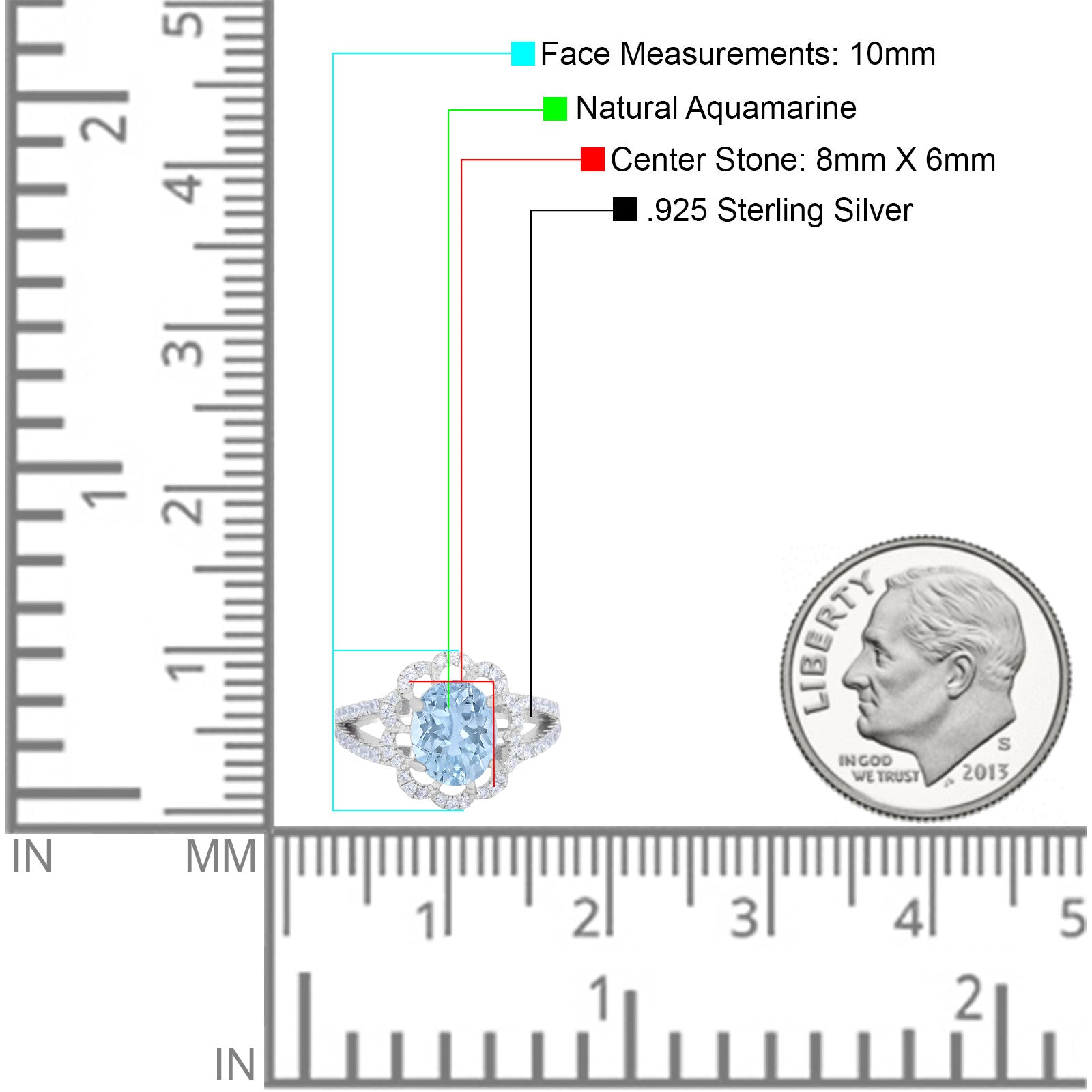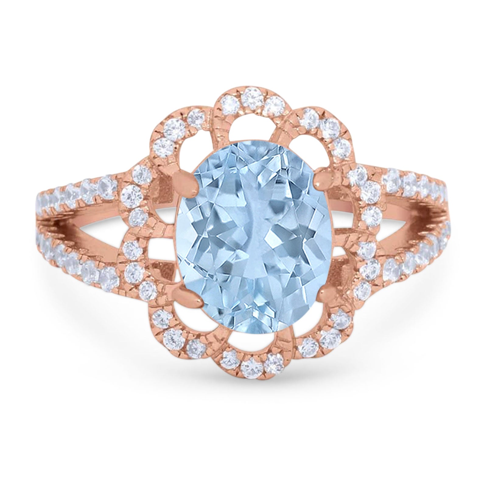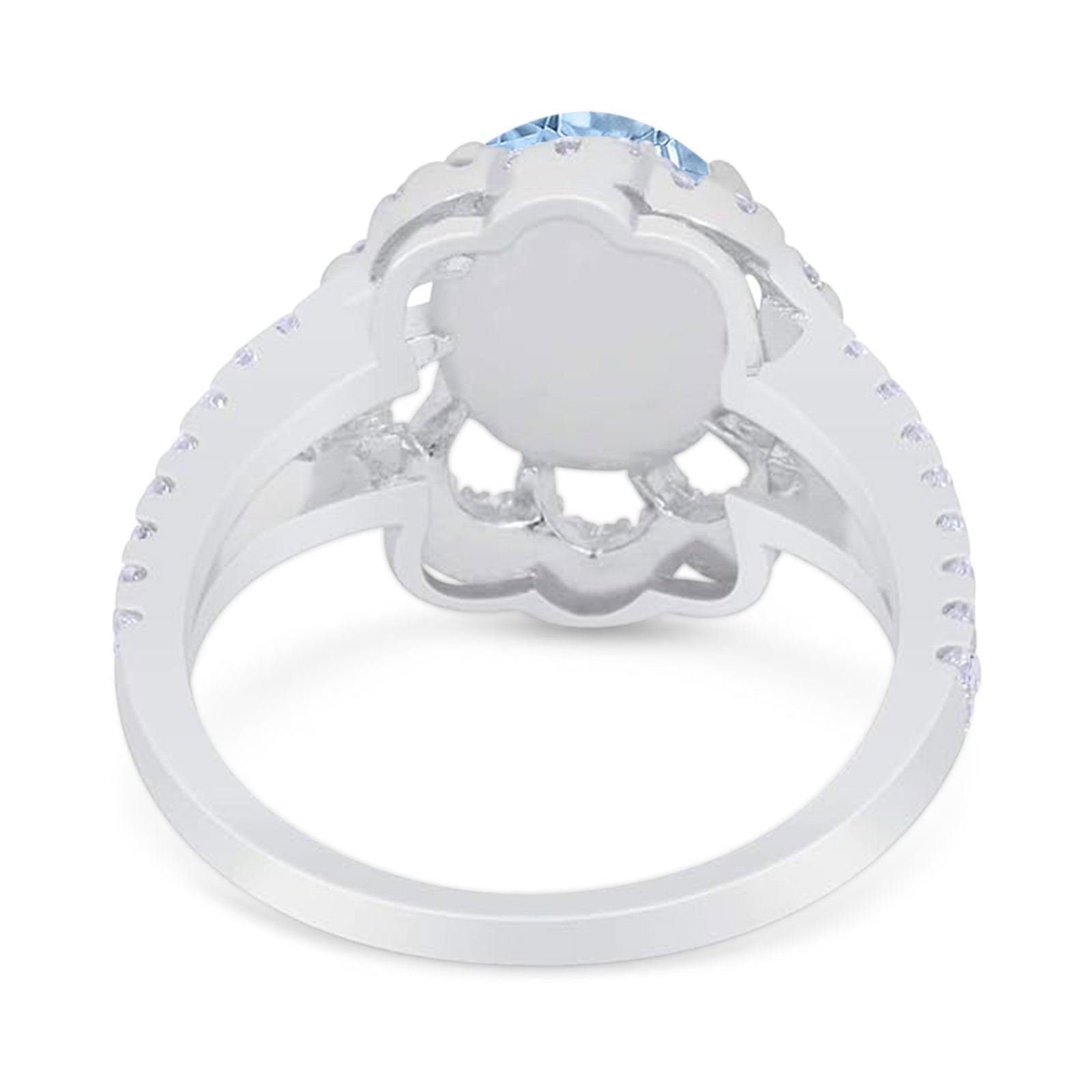 Vintage Style Oval Natural Aquamarine Flower Ring 925 Sterling Silver