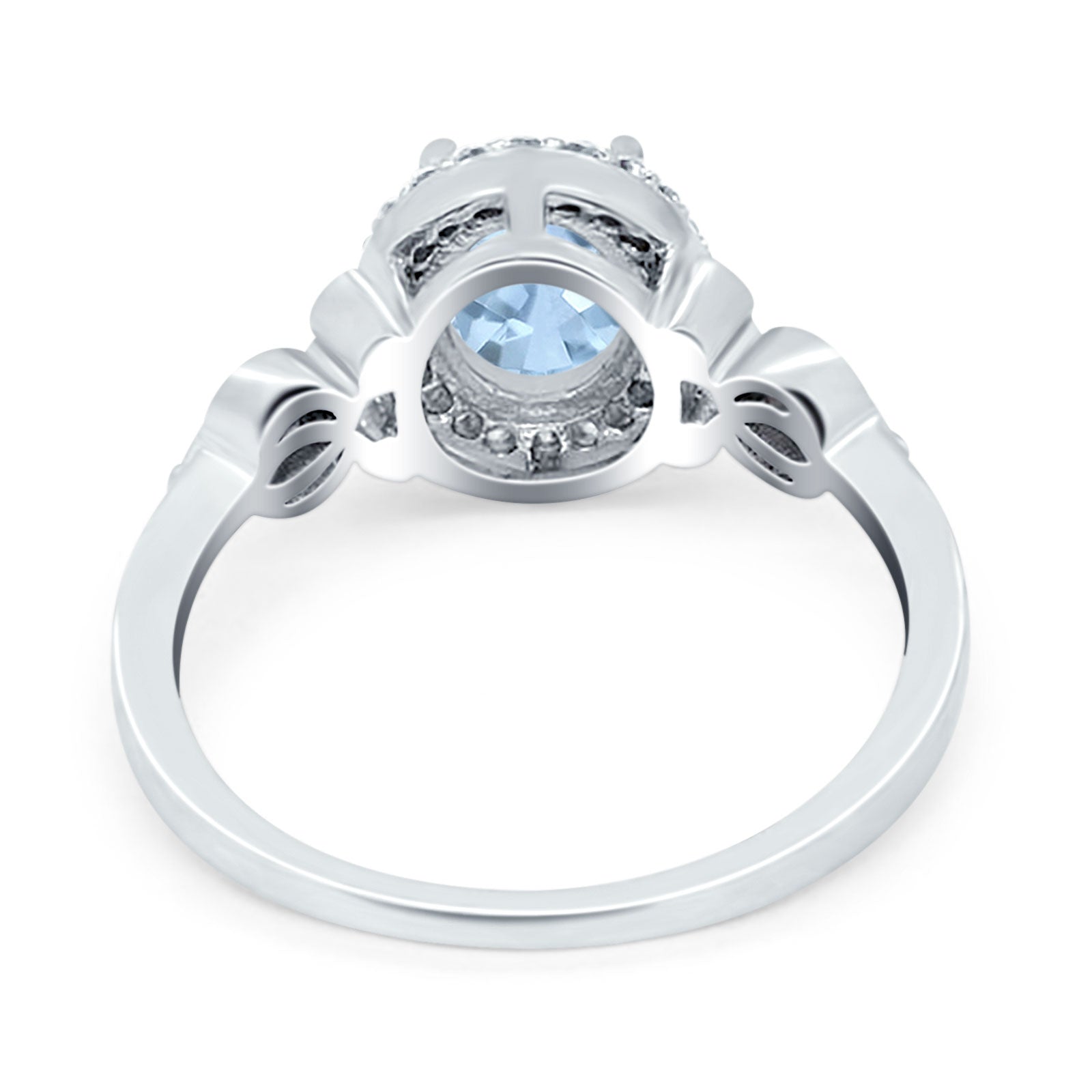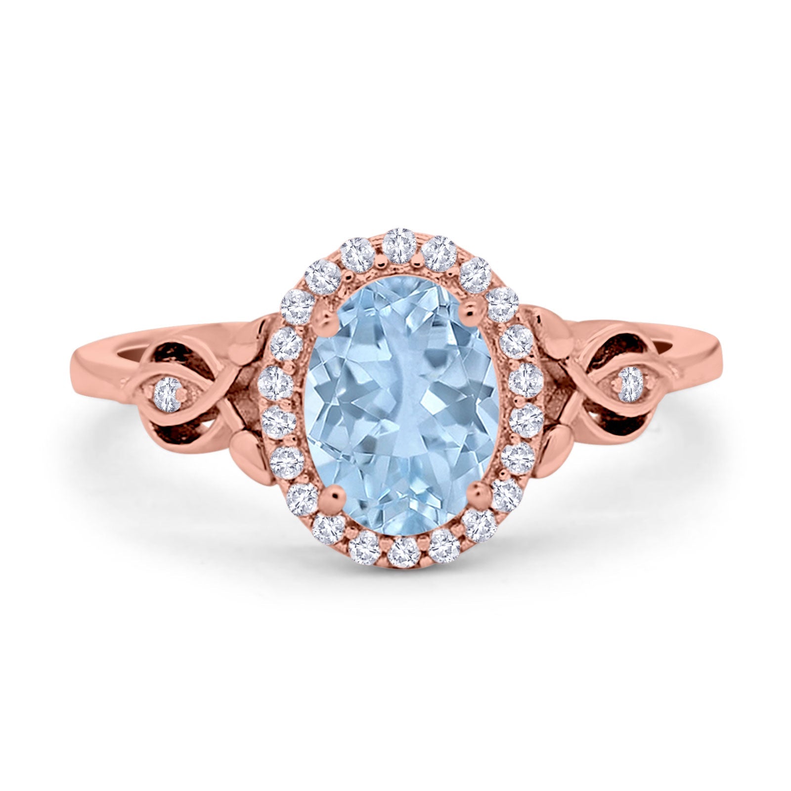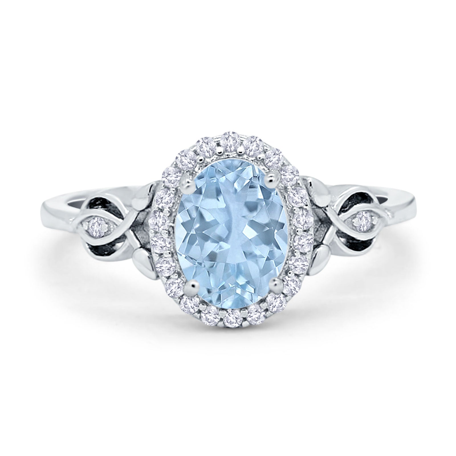 Vintage Style Oval Natural Aquamarine Halo CZ Split Shank Twisted 925 Sterling Silver