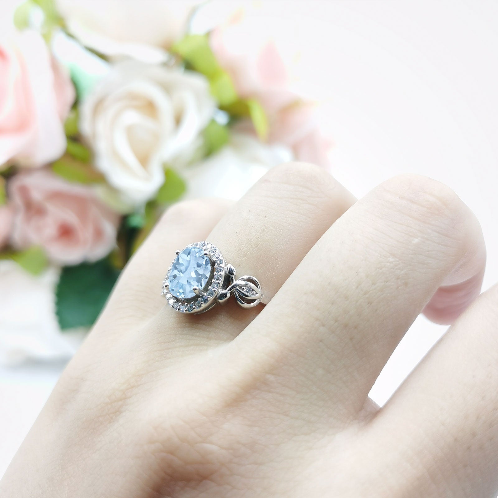 Natural Aquamarine Engagement Ring